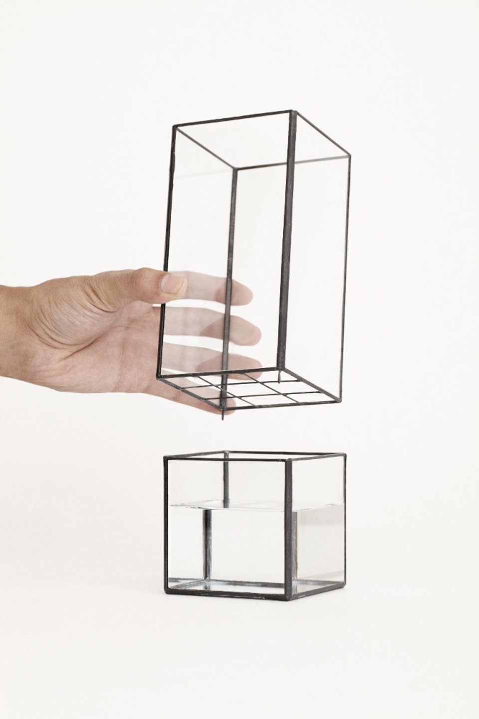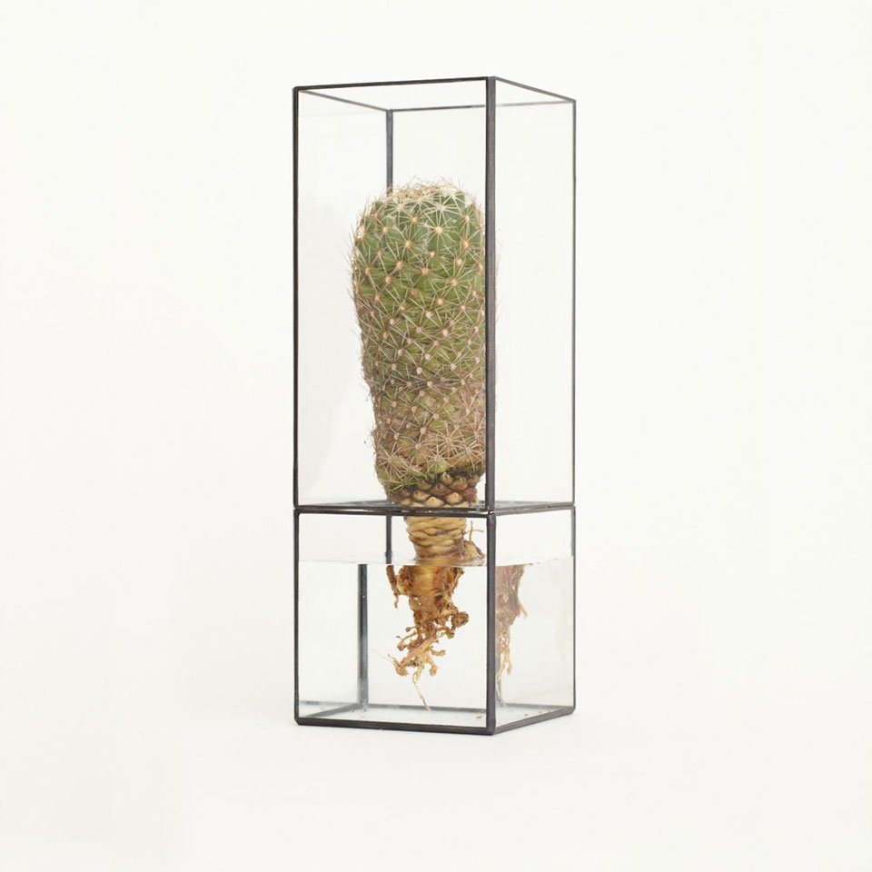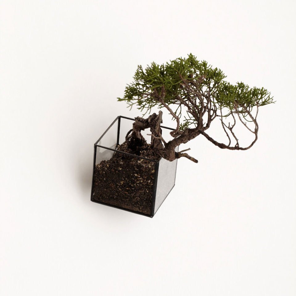 Bonsai, literally plantings (sai) in a tray (bon), are a familiar sighting among Japanese homes but designers Dasiuke Tsumanuma and Kenichi Yamada are moving from the more traditional planter to a new kind of terrarium. Their brand, [ 10¹² ] TERRA, makes use of the transparency of glass to feature both what lies above and below the surface. True to the brand name that alludes to the number of cells produced each day, the handcrafted containers highlight not just the leafy greens but also the meristem at the tip of the root, the source of new cells for plants. The glass construction of the pieces makes them ideal for hydroponics, and creates the illusion of the flower or plant floating in the air with roots exposed and pulsing with life. The prisms come in a variety of sizes and configurations – some orthogonal, others rotated on their edges – to accommodate a range of aesthetics that can be both table-top pieces as well as wall hangings.