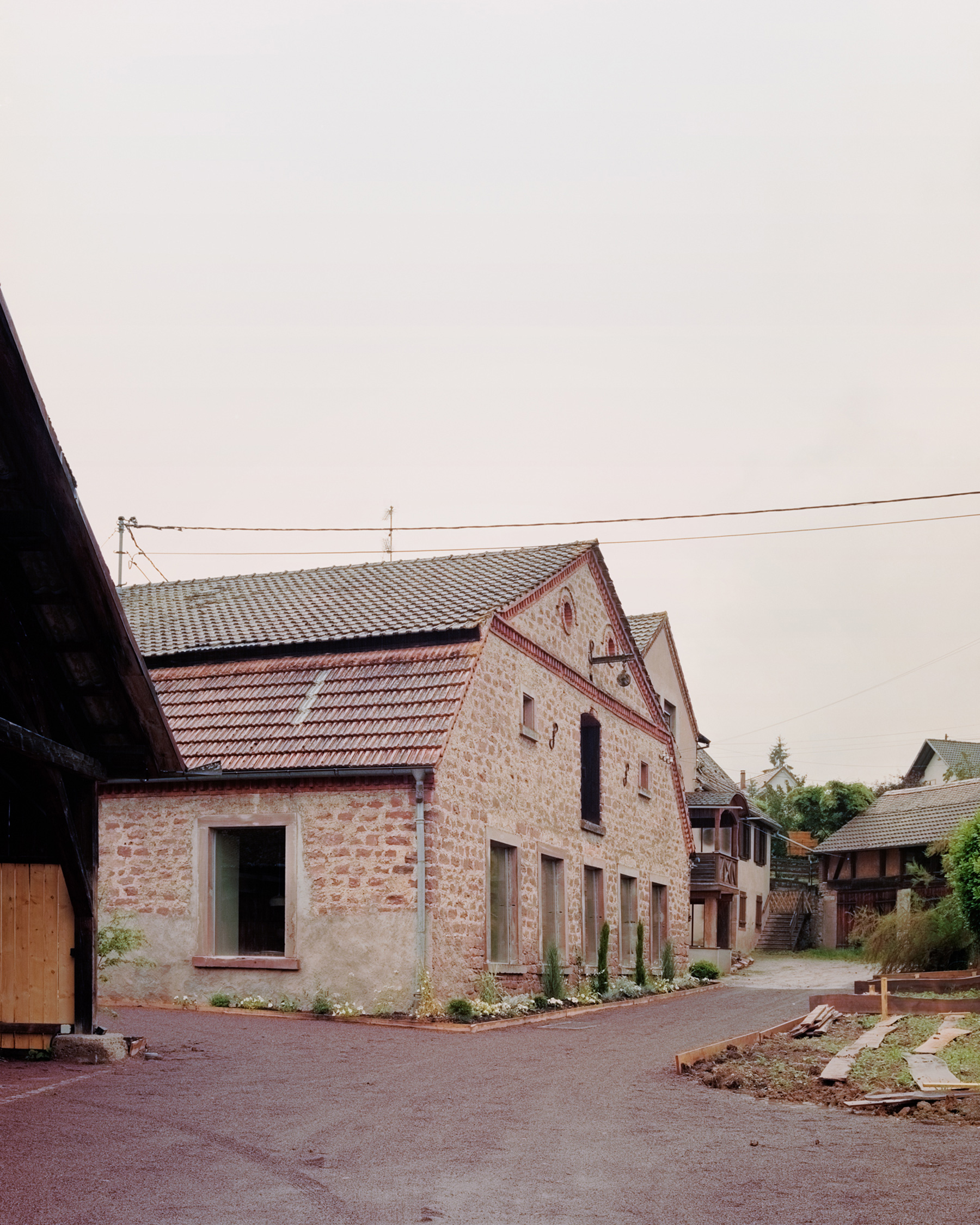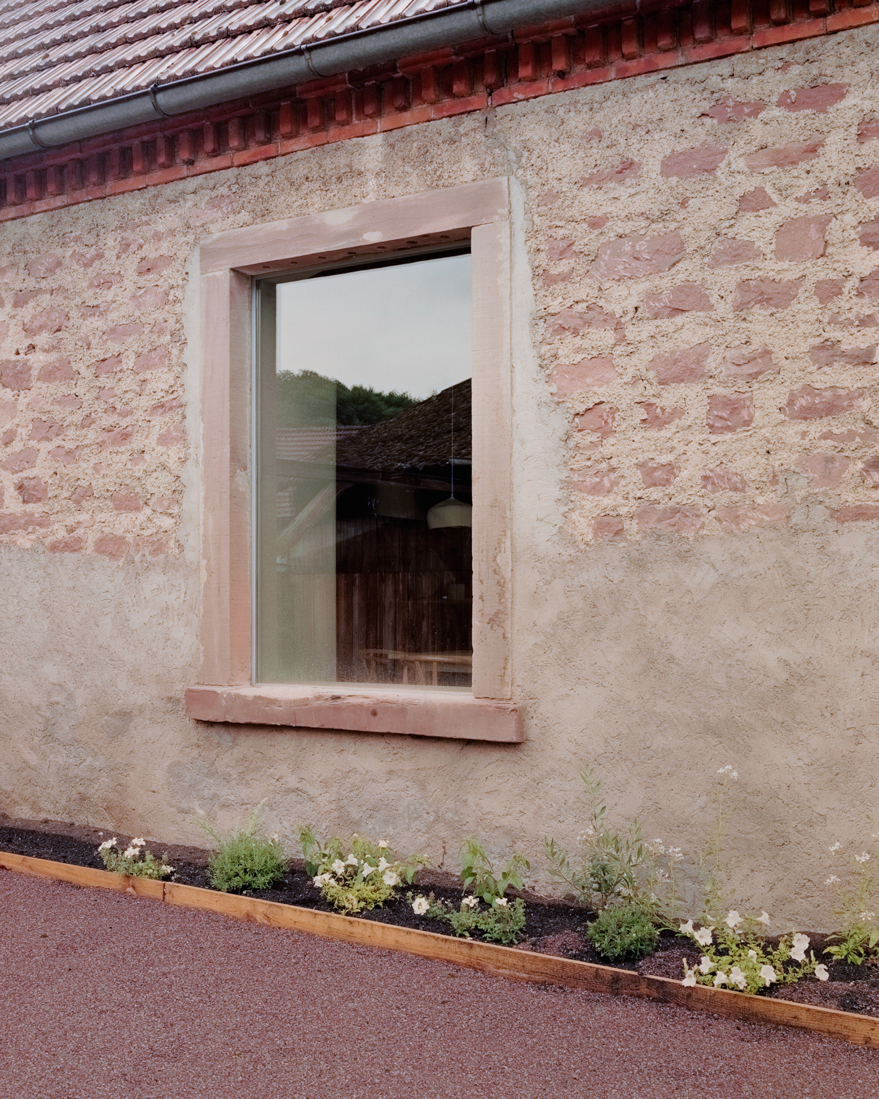 Located in the town of Barr, France, an old building that used to house a carpentry workshop was transformed into a small restaurant. Strasbourg-based architecture studio nara completed this adaptive-reuse project with great respect for the building’s character and history. The old brick walls remained, along with the traditional tile roof and the wooden beams in the interior. Imposing and spacious, the structure celebrates vernacular architecture while complementing the old rustic charm with contemporary design cues. An open-plan kitchen occupies the center of the restaurant, thus becoming the heart of the space. This airy zone contrasts an opaque area that contains the bathroom.