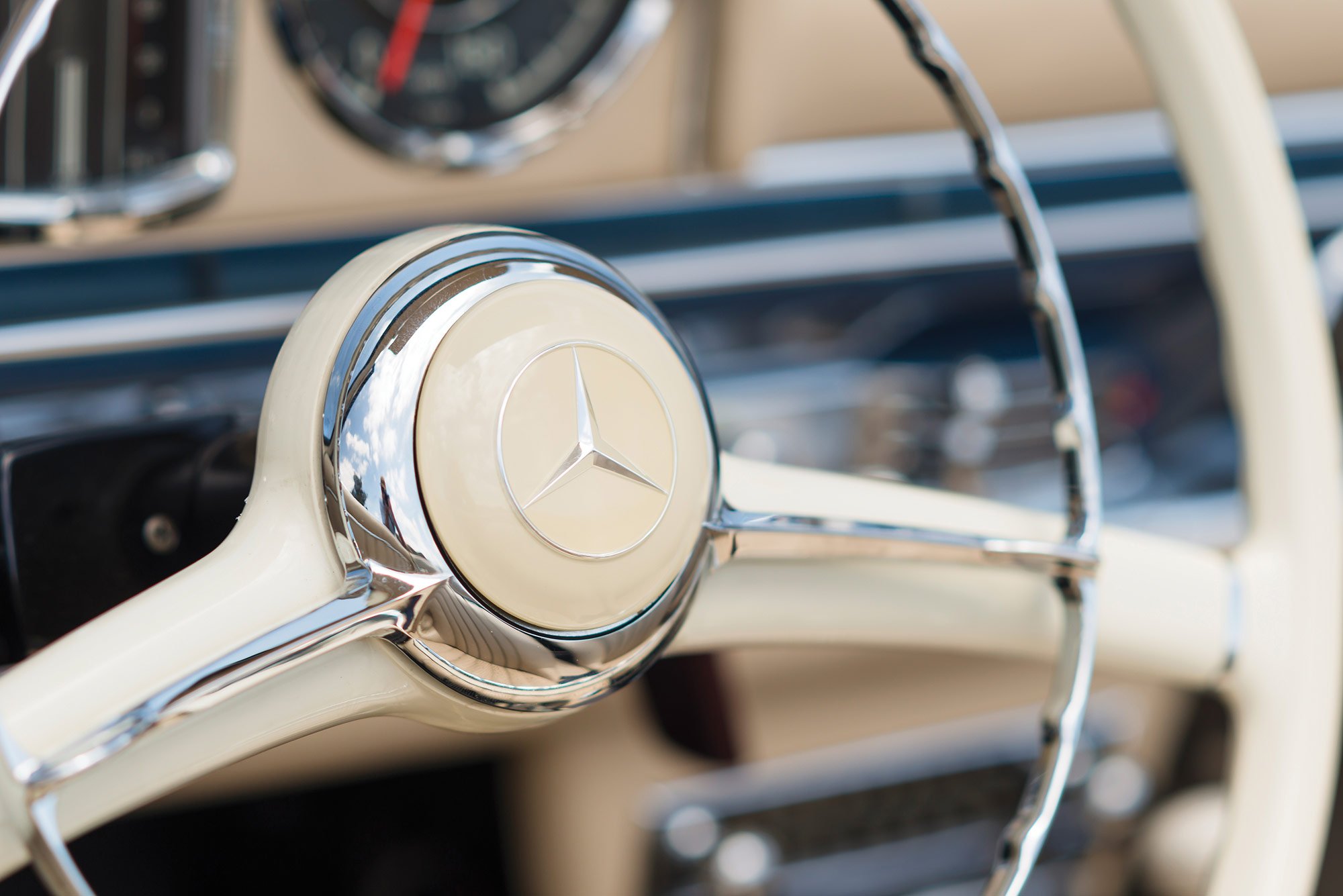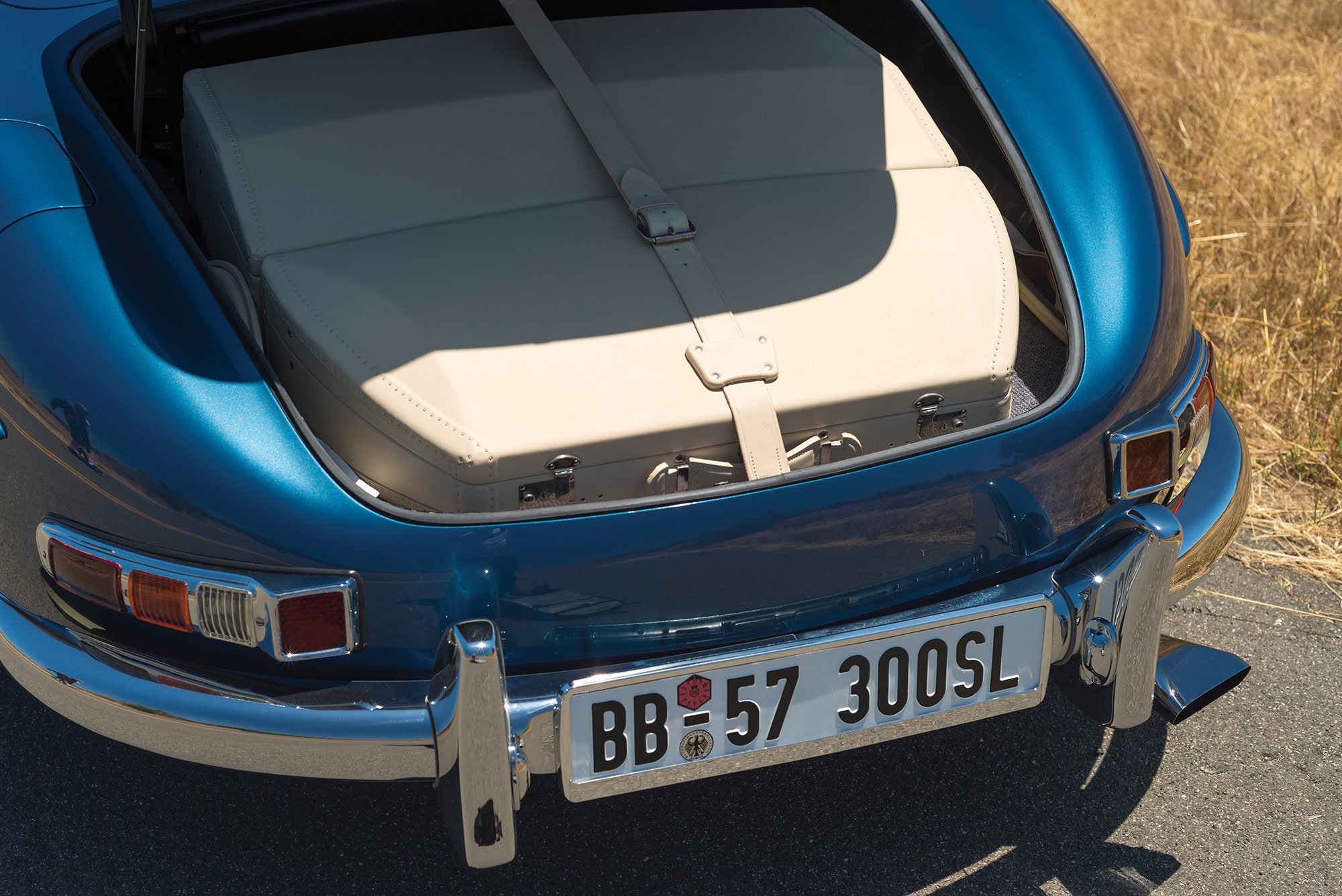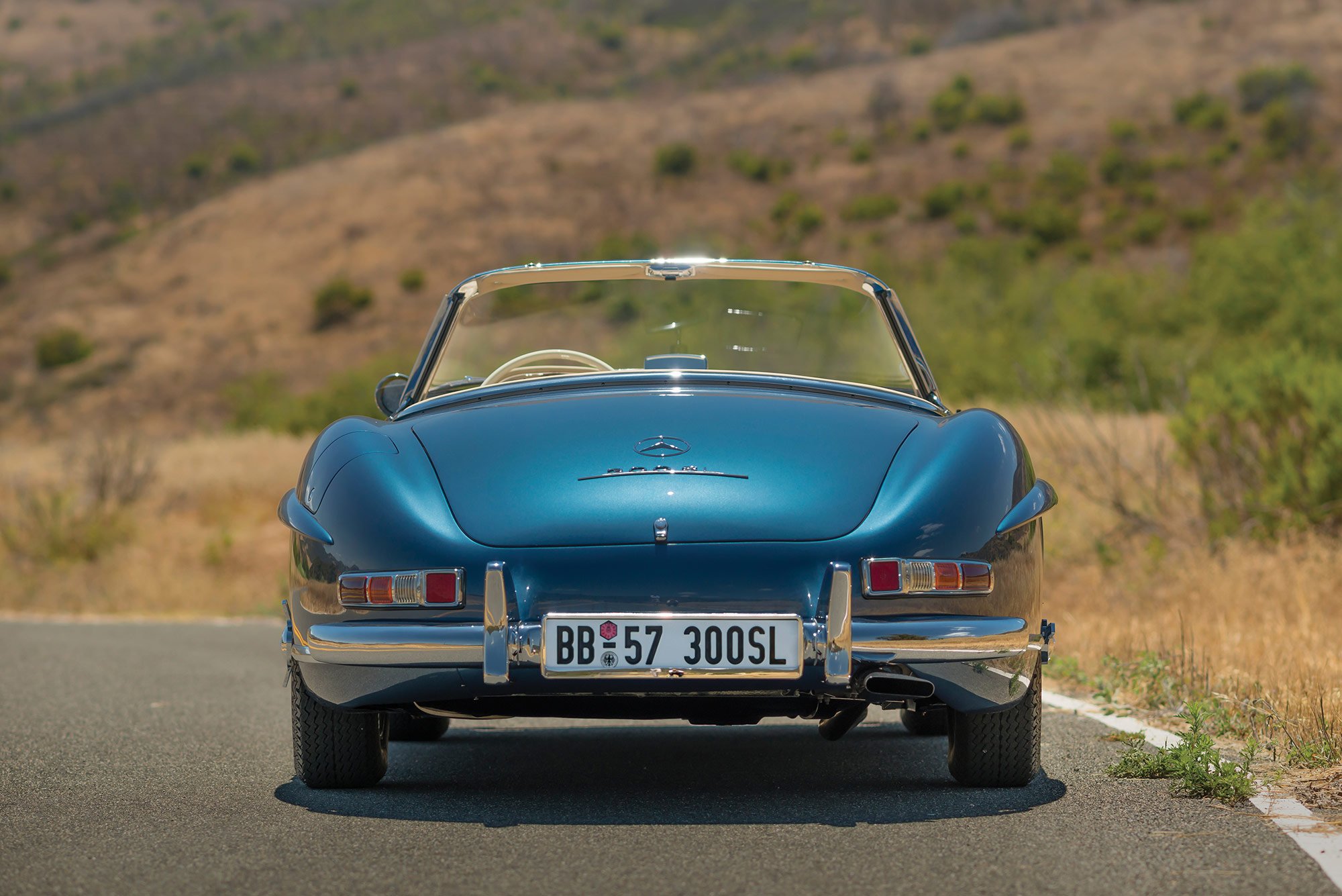 The roadster was refurbished extensively by Classic European Restorations in Escondido, California, with the engine and transmission rebuilt, various parts sourced from HK Engineering in Germany, the interior reupholstered in Parchment leather which complemented the new blue paint, period-accurate wheel replacements, a period ivory Bakelite steering wheel, and reconditioned electrical systems and gauges. Completed in 2005, the restoration project won several awards, including Best of Show at the Gullwing National Convention in San Diego. But this Roadster’s journey was not over yet. In 2013, the car went through its final restoration stage, completed by a seasoned specialist in 300 SL cars, Mark Allin of Rare Drive in Kensington, New Hampshire. The stunning attention to detail guaranteed a class award at the inaugural 2013 Pinehurst Concours d’Elegance show. Now this rare and valuable 1957 Mercedes-Benz 300 SL Roadster is listed on RM Sotheby’s, with an auction date set at 19-20 August 2016. The car comes with the original matching-numbers engine, detailed documentation that includes the heritage certificate issued by Mercedes-Benz Classic in Stuttgart in 2004 and a detailed factory data card. As it has a 1957 build date, the car is also one of the few models eligible for the Mille Miglia Storico or the California Mille. Images courtesy of RM Sotheby’s.