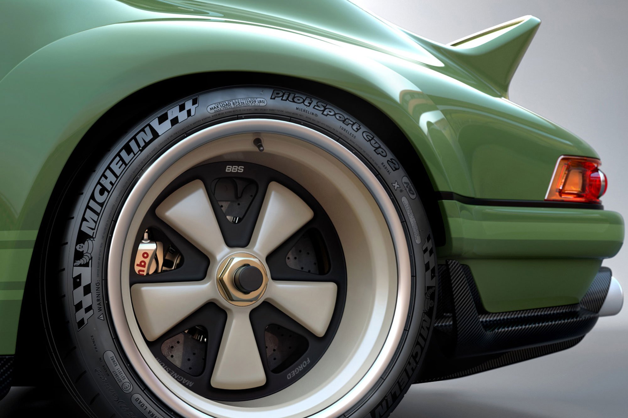 The modified 1990 Porsche 964 features a four-valve, air-cooled flat-six engine that produces 500-hp, an improved suspension with enhanced geometry, as well as a combination of carbon fiber, magnesium, and titanium materials to get the weight of the vehicle to an impressive 2180 lbs. Other details include bespoke Michelin tires, a 6-speed magnesium transmission from Hewland, and custom EXE-TC damping. The car also boasts a new look. The exterior features a unique absinthe green color complemented by orange accents, while the cabin oozes style with blood orange leather upholstery. Starting from November 14th 2017, the companies plan to produce up to 75 custom Porsche 964 cars in the UK, for 75 automotive enthusiasts, collectors, and Porsche lovers. Or ‘the lucky ones’, as we call them. Photographs© Singer Vehicle Design.