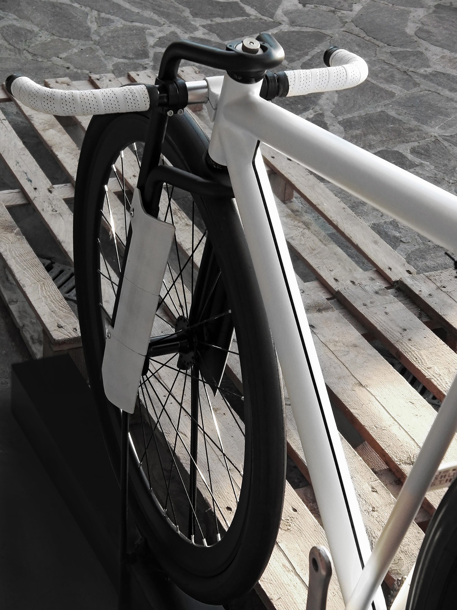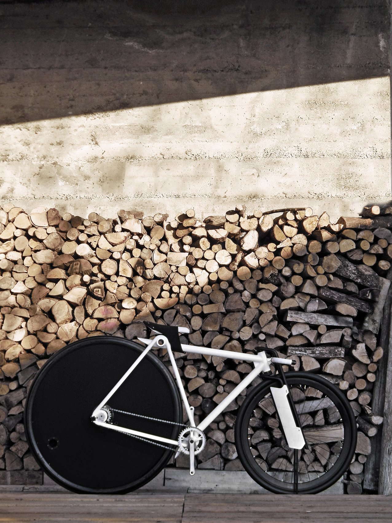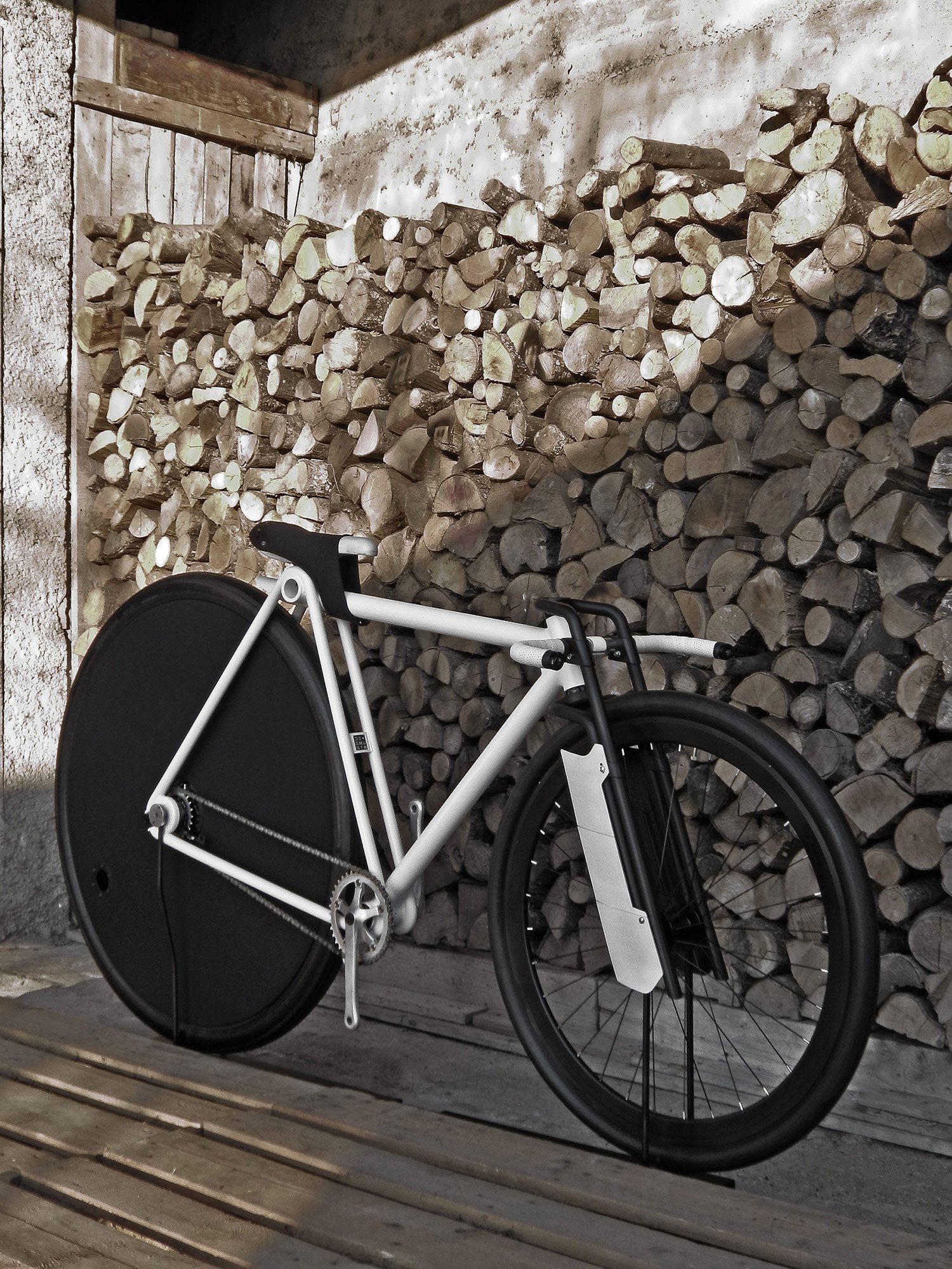 Though at first it may seem like these buses (and this bike) could never take corners at such a speed, their ability to do so in reality proves you can’t judge a book by its cover. And though some may find the concept too extreme, in reality the bike’s design still respects the fundamental qualities of a traditional bicycle, but has just translated them into a more invigorating framework. The Postale maintains the ergonomics of a traditional design, as the distance and angles between the pedals, seat post and handlebars are kept to the basic ratio, and despite its unusual geometry it is actually extremely rideable, with the slant giving one an intense amount of momentum akin to an hour record bike (whose special frames also took advantage of what’s called “pursuit sloping”). The black and white palette of the work helps the wheels to really stand out against the frame, with the back wheel wrapped in a black matte Noeprene film to solidify the cleanliness of the overall design. One of the most exciting aspects of the concept is its integration of new 3d printing technology into the design, showing that these parts can still look elegant alongside more traditional materials. The bike features a plastic ABS 3d printed frame and 3d printed titanium junctions in its construction, while the rest of the parts can be found easily on the market. This means that the manufacture of the bike would be relatively simple as all customized pieces are printable (meaning no extra machining is required). Though only a concept right now, the 36/28 Postale takes big strides through a crowded field, and lays groundwork for an ever-richer search for the ultimate in riding design.