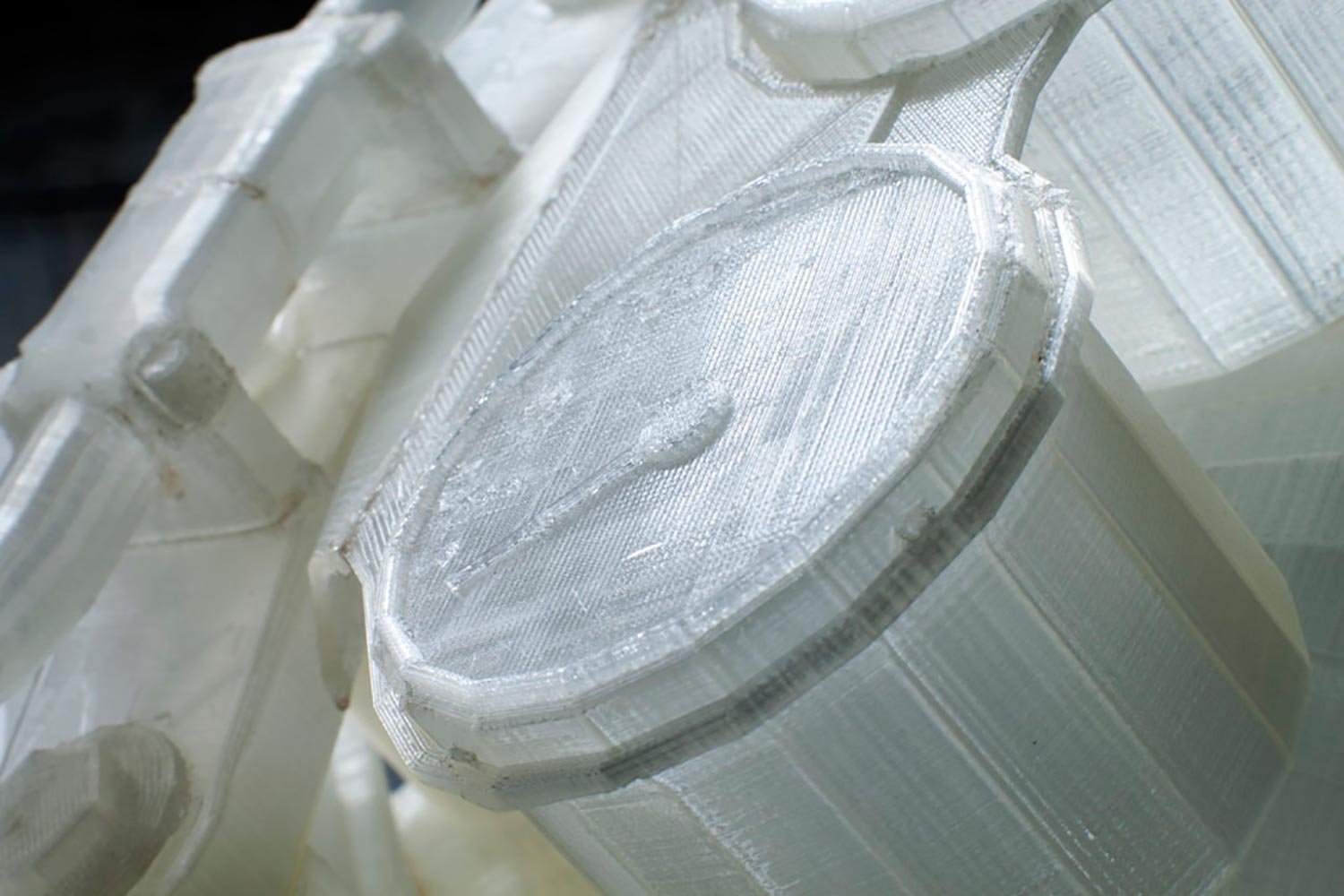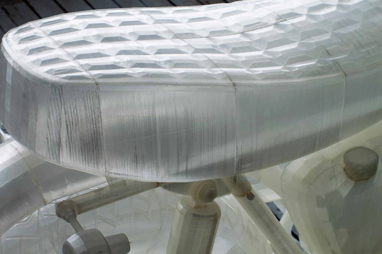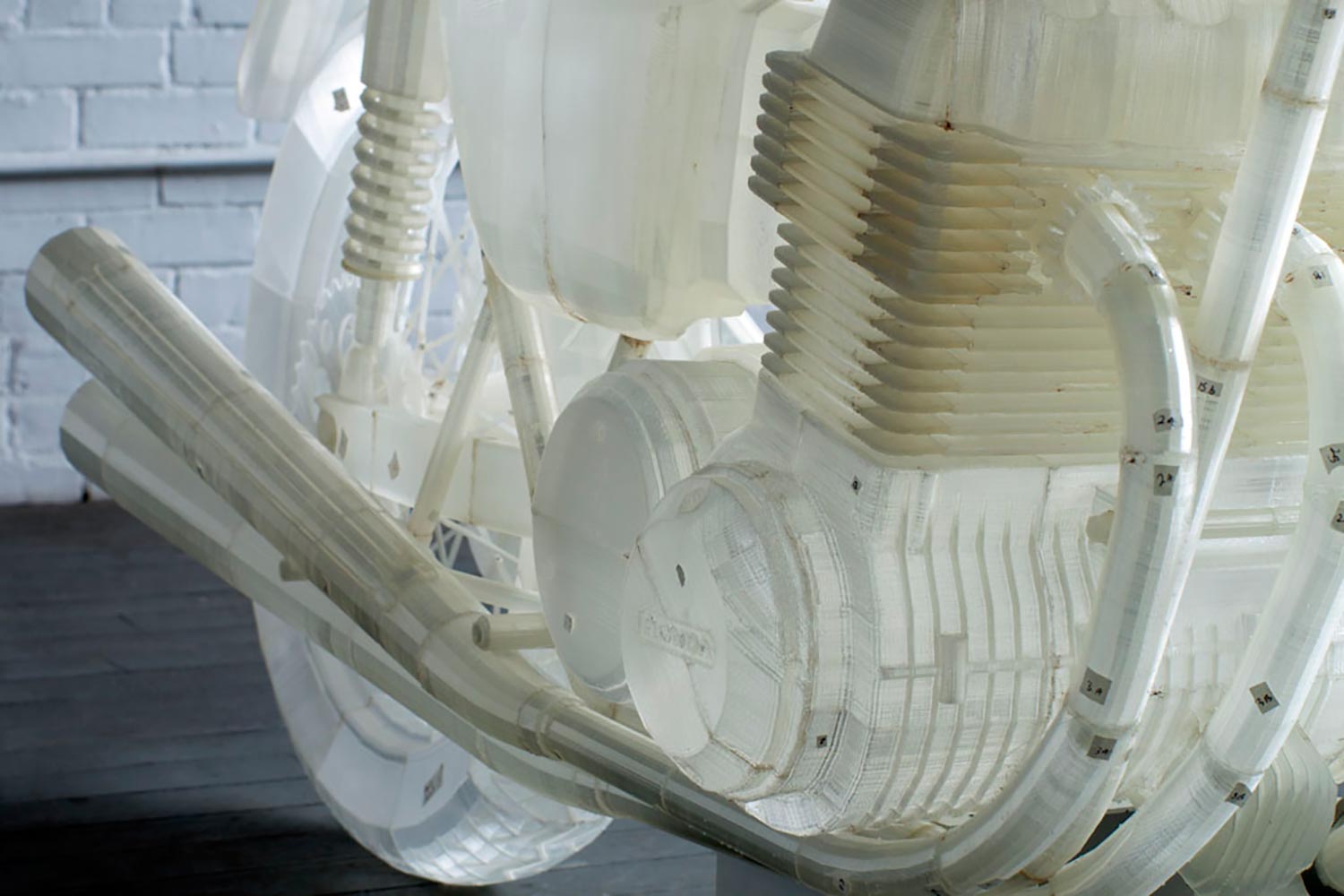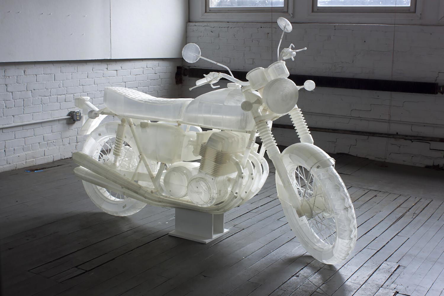 This CB500 Honda sculpture is a full-size, 3D-printed replica by Canadian artist Jonathan Brand. Possibly the first 3D-printed motorcycle, the sculpture is made of 18 rolls of biodegradable corn plastic. Weighing less than 40 pounds, this is a light, delicate model meant for admiration alone. It is nonetheless a collector’s dream. The transparent plastic design was created part-by-part and assembled by Brand in his studio in New Haven, Connecticut. To shape the pieces, Brand used two Ultimaker 3D printers. The noncommercial printers were within budget and, given their open source design, both flexible and well-developed enough for Brand’s creative project. Learn more about Brand’s inspiration and process on Youtube.