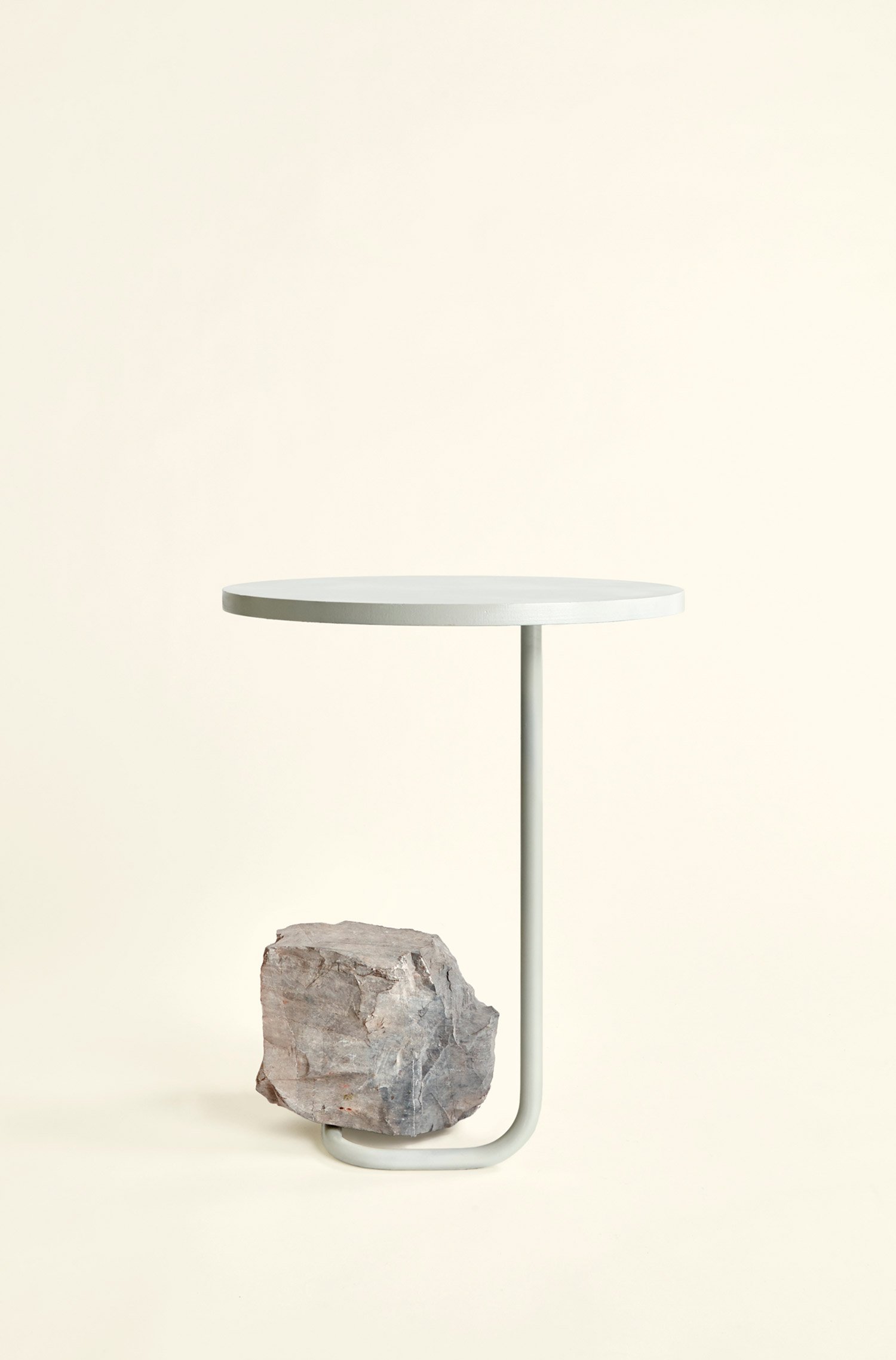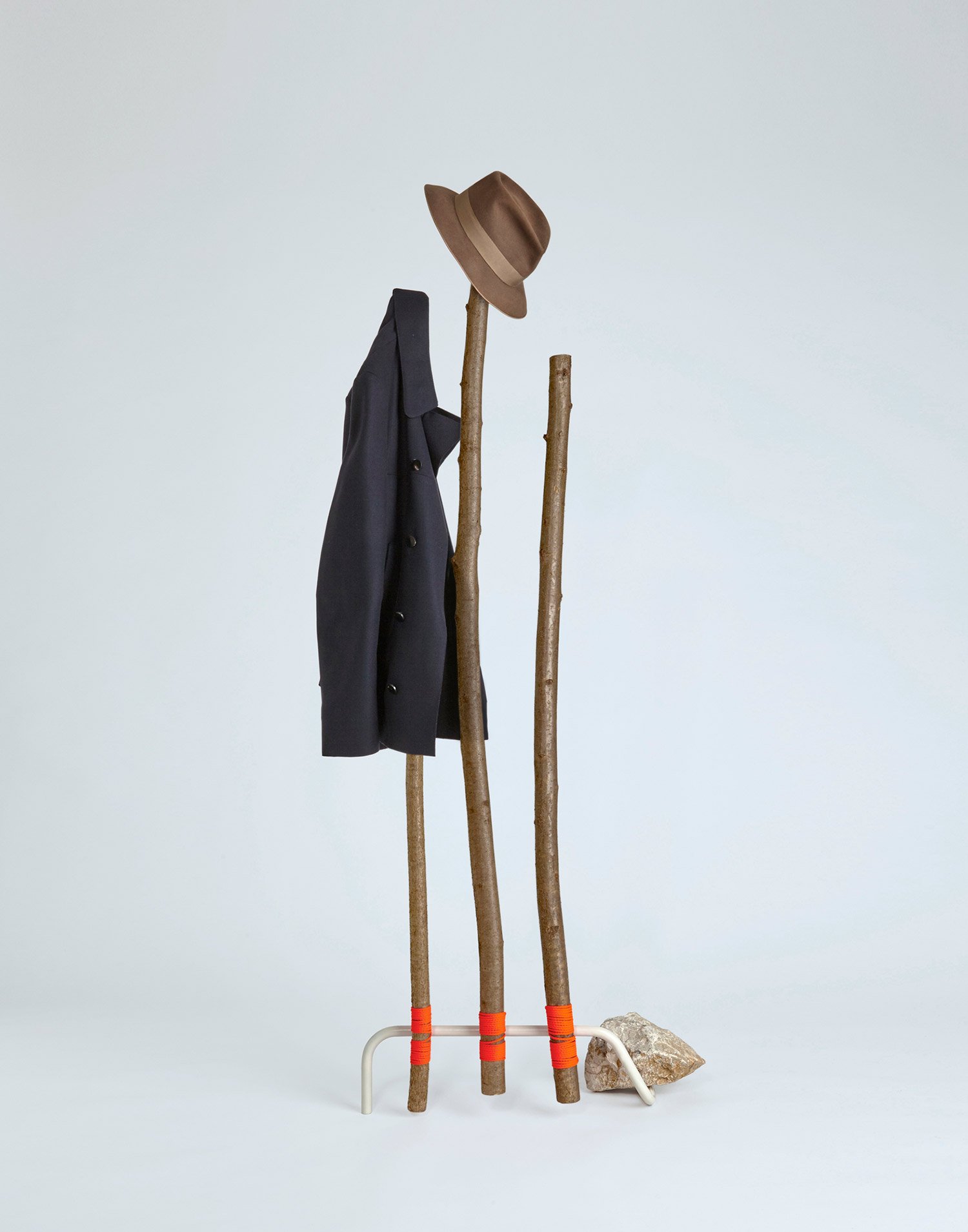 The two designers describe their creative process as a path where experimentation, research, and industrial production are completed by their “delicate poetic and dreamlike vision.” This surreal finishing touch is evident in the FurNature project which blends minimalism, natural elements, and customization in a fresh take on product design. The goal of the collection is to offer objects which are not anonymous or indistinct, but items that become truly unique thanks to the input of the user. The five objects are incomplete – the owner is the one who adds the last piece of the puzzle, in this case a piece of nature. The coffee table requires a rock to stand upright, the towel rack a single branch, while the hour glass features three segments which are ready to be filled with sand. The poetically named “domestic landscape” needs a flower or a plant to achieve its purpose and the clothes stand only becomes usable with the help of a rock and a couple of branches. Depending on the geography of their final location and on the personal preferences of the user, the objects become one-of-a-kind as well as intimate. Global product manufacturing processes and specific geography combine with striking effects. The innovative FurNature collection requires adding custom touches that are part of the local natural environment, offering a special experience for the user who then becomes actively involved in the design process.