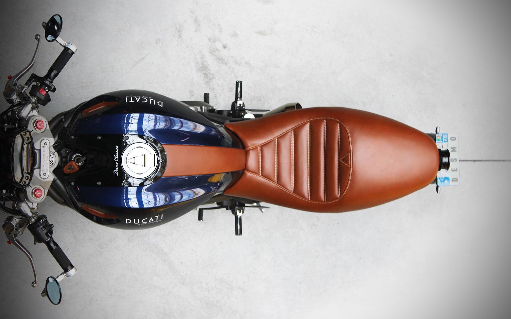 When a custom motorcycle workshop that has become well-known for its high quality and stylish designs creates a collection that pays homage to not one, but two Italian icons, the results can be nothing short of gorgeous. Inspired by the Ferrari 250 series of the 50s and 60s and the Ducati Monster, Etik Motorcycles has launched a beautiful range of ultra-limited bikes. Located in Rouen, an hour and a half drive away from Paris, the workshop has put its mark on the world of custom builds in a short time thanks to an impressive attention to detail and a passion for vintage designs. The Desmo Classico collection takes things to another level, as it pays homage to Ferrari, Italian racing history, and Ducati. Using the Ducati Monster 1100 as a base, Etik Motorcycles has created 20 models that feature the elegant lines of the iconic vintage cars and bear the names of 20 personalities linked to Ferrari’s heritage. This bike, number 18, is named after Italian racing driver Giuseppe Farina, the first official World Champion and cousin of legendary car designer Sergio Pininfarina, whose name has been given to bike number 1. Number 18 features full LED lighting, a brown leather seat made in Italy, Pirelli Phantom tires, aluminum mirrors and handlebars, a heat treated chassis, a polished stainless steel exhaust silencer, and a striking color contrasts of blue, brown, and black tones. It has a price of 14,500 Euros, which converts to just under 16,300 dollars; you can place an order, read more about the technical specs, or take a look at the other models on the official website. Images courtesy of Etik Motorcycles.