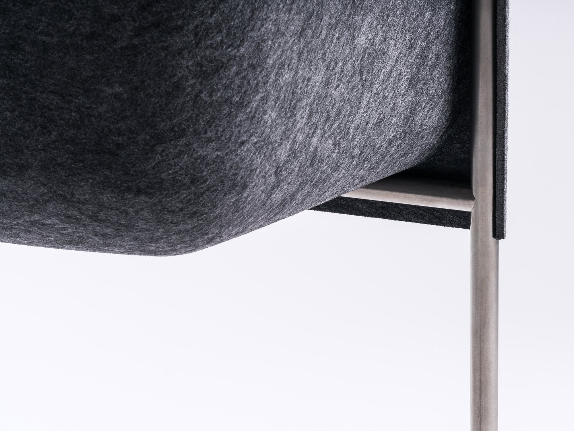 Manufactured by furniture brand Nautilus after two years of research and testing, the chair features a recyclable shell with a thermoformed fabric and a stainless steel frame. The design allows the user to stack the chairs and minimize storage space and also make transportation easier. Thanks to an ingenious integrated connecting system, the chairs can form different compositions or curved layouts for amphitheaters. Available soon for living spaces and offices, the ADAGIO chair will feature a felt fabric. Textured but soft to the touch, this tactile material enhances the minimalist chair design further. Photographs© Nuno Sousa Dias and Pedro Lobo.