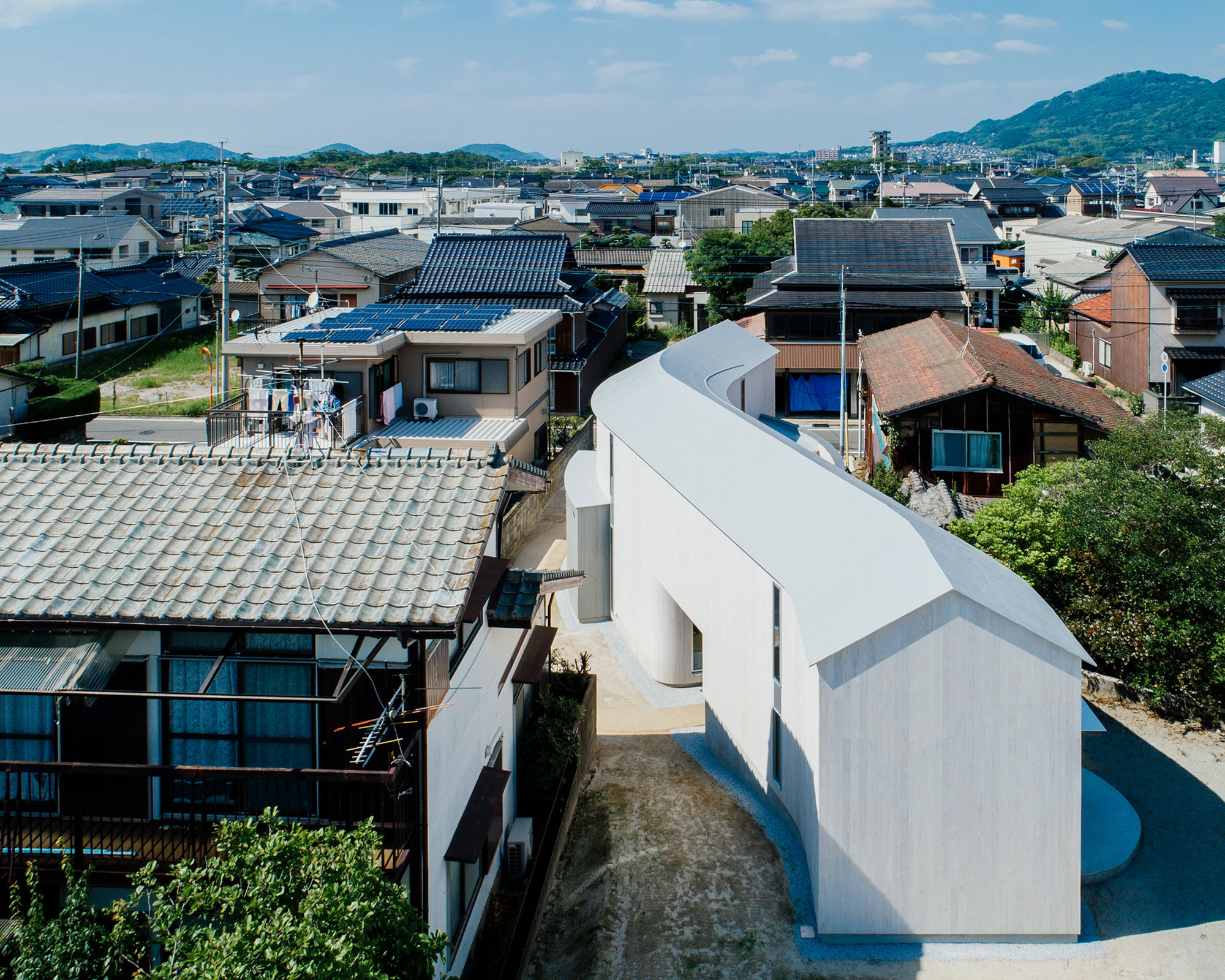 When it comes to dense urban areas and compact sites, architects often have to think outside of the box to create houses that don’t sacrifice space or comfort. Affordance House is such an example, but shines with its brilliant creativity even among other similar projects. Completed by architecture firm Class Archi, the residence has an unusual shape that twists and turns to make the most of a narrow, compact and irregular building site. Nestled among more traditional dwellings in the city of Fukutsu, Fukuoka Prefecture, Japan, the house has an unconventional design with a serpentine form that reminds of a wave crashing on the shore in a spray of white foam.
