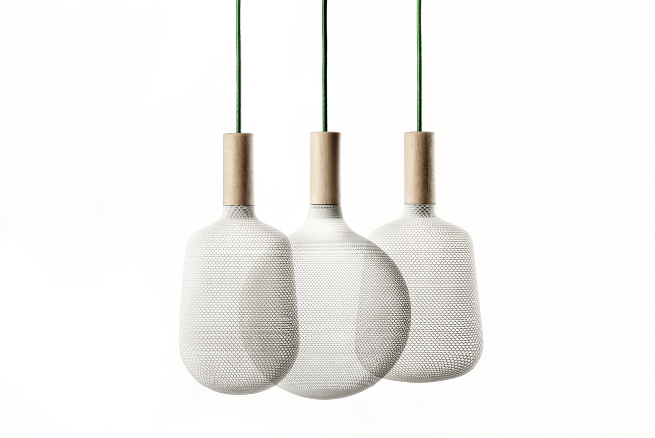 Designer Alessandro Zambelli’s Afilia Lighting series draws from botany, tradition, and innovation. The name “afilia,” translating to “leafless,” suggests that the lamps can be read as naturalist, “leafless but not lifeless” objects. Like earthen bulbs, the lamps have green cords and wooden bases, which are handcrafted from pine. Even the light diffusers, seemingly extraterrestrial in 3D-printed nylon, reference nature via the honeycomb shape of the lattice. Blending traditional and recent technology, all within a biophilic lens, Zambelli’s Afilia Lighting illuminates inspiring new paths in design.