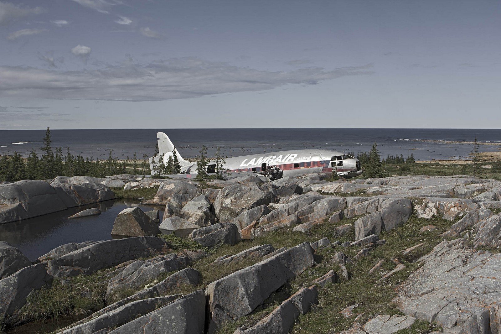 For the majority of planes that go through a “forced landing,” a junkyard is their next home. But, sometimes, the machine is left to become a weather-worn artifact. That’s the fate of Eckell’s planes, strewn across land and sea in places as far-ranging as Iceland and Papua New Guinea. The above-ground planes, in particular, are marked by a paradoxical intermingling of power and powerlessness. They seem somewhat like beached whales in how they at once remind of and go beyond their past grandeur.