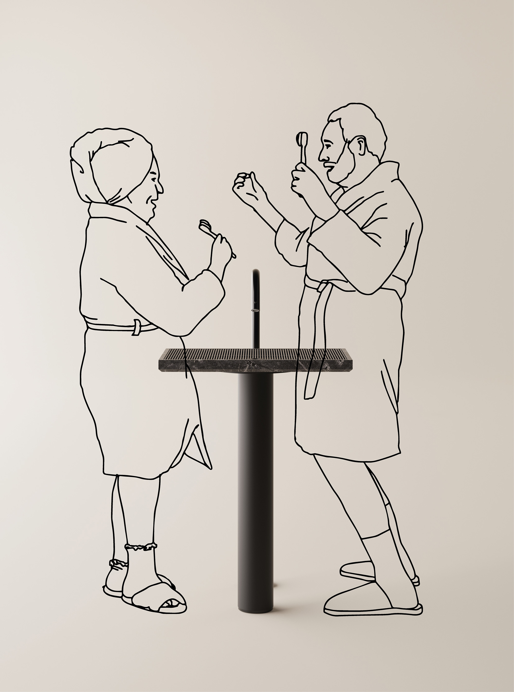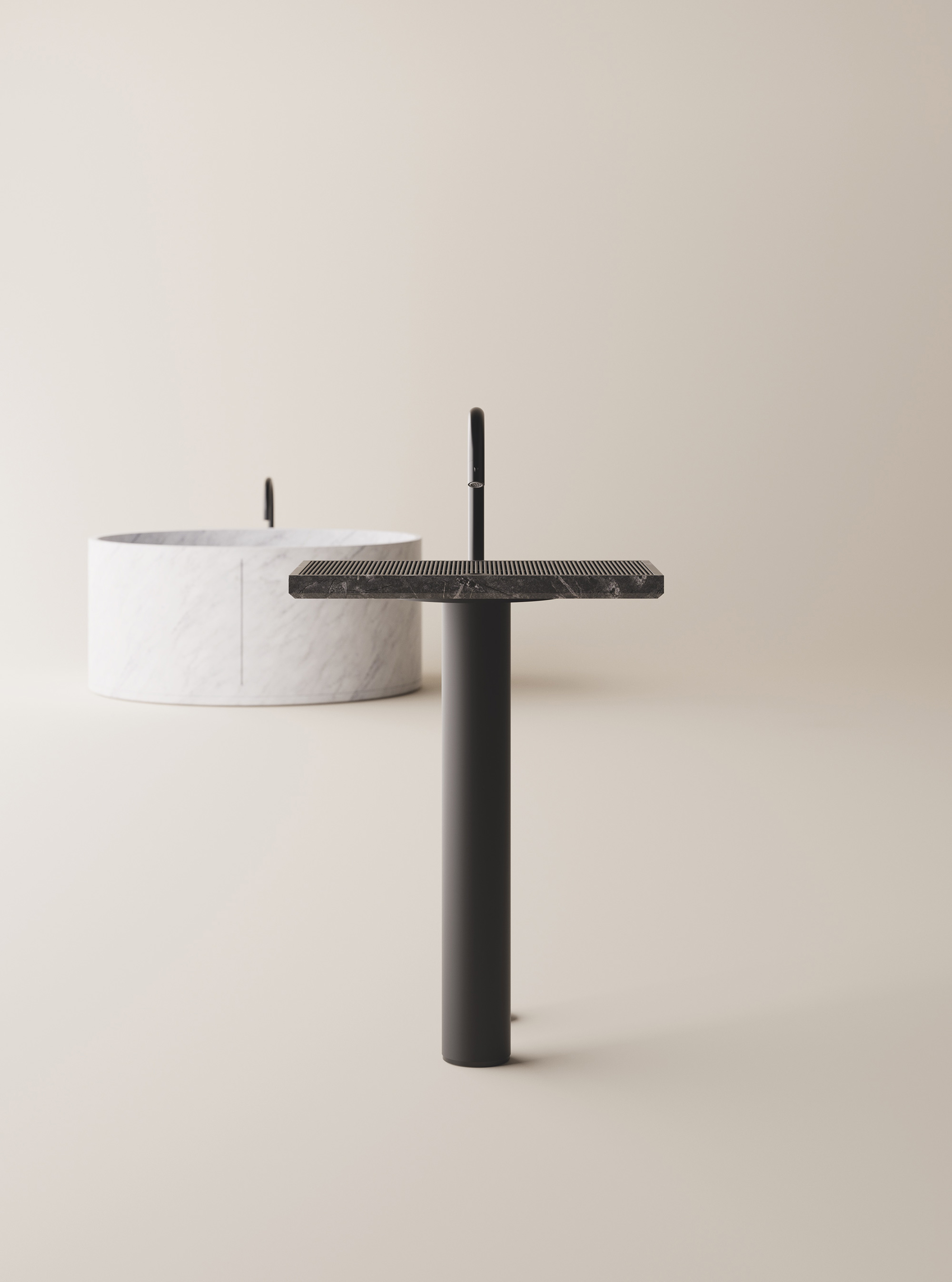 Created by Italian design studio Benedini Associati for Agape, Ell revolutionized the traditional sink with an ingenious design made with an integrated grille. The studio has recently created another version of the sink, a freestanding washbasin that features the same elegance of the original. Inspired by the writings of Italian artist and designer Bruno Munari, Ell explores the concept of simplification to find the essence of an object by removing every element that doesn’t directly contribute to its functionality. More architectural than the sink version, the washbasin features two minimalist geometric elements. A cylinder that resembles a column or pedestal provides support to a flat slab. While slender and stylish, this horizontal plane contains the basin.