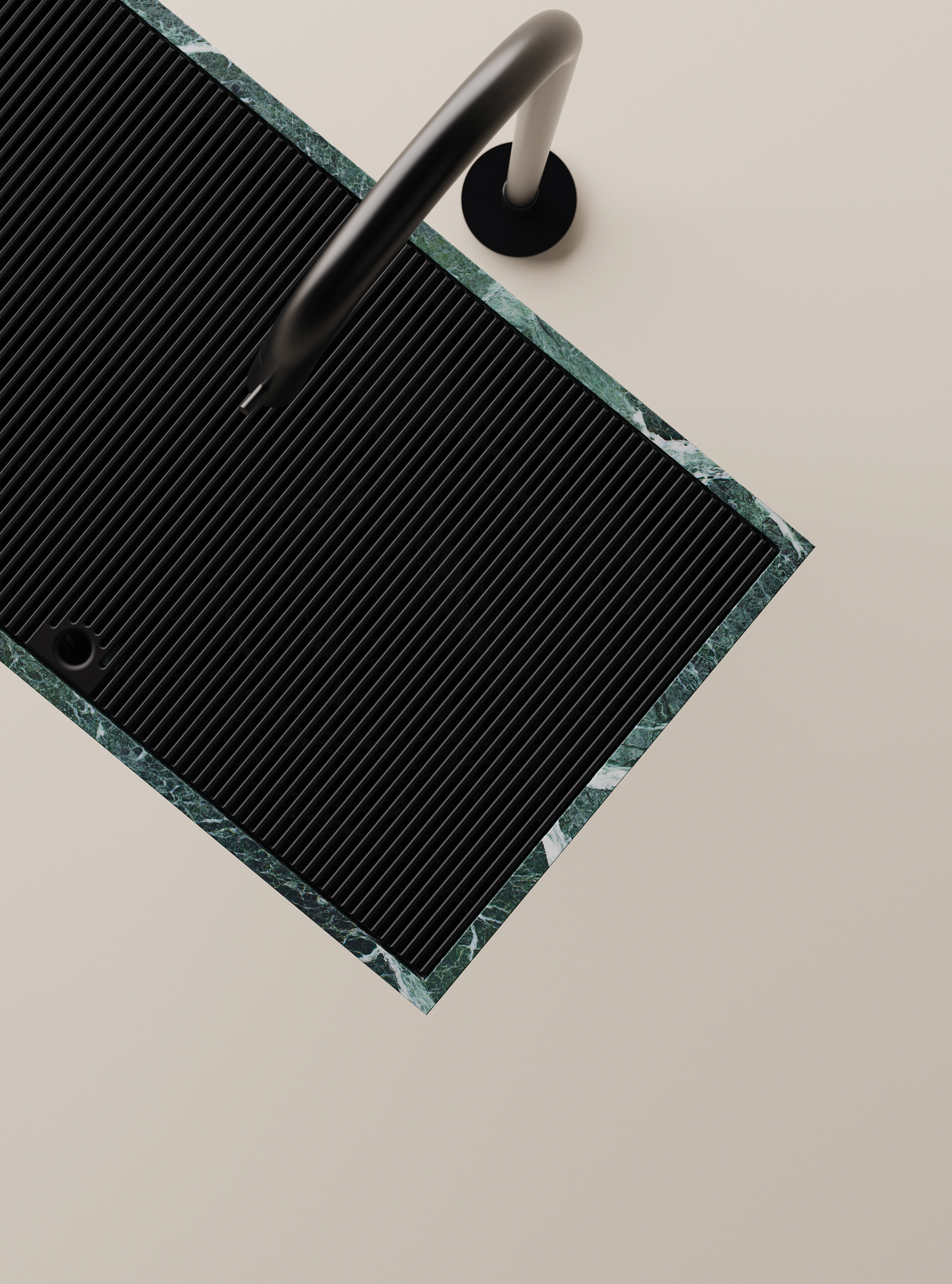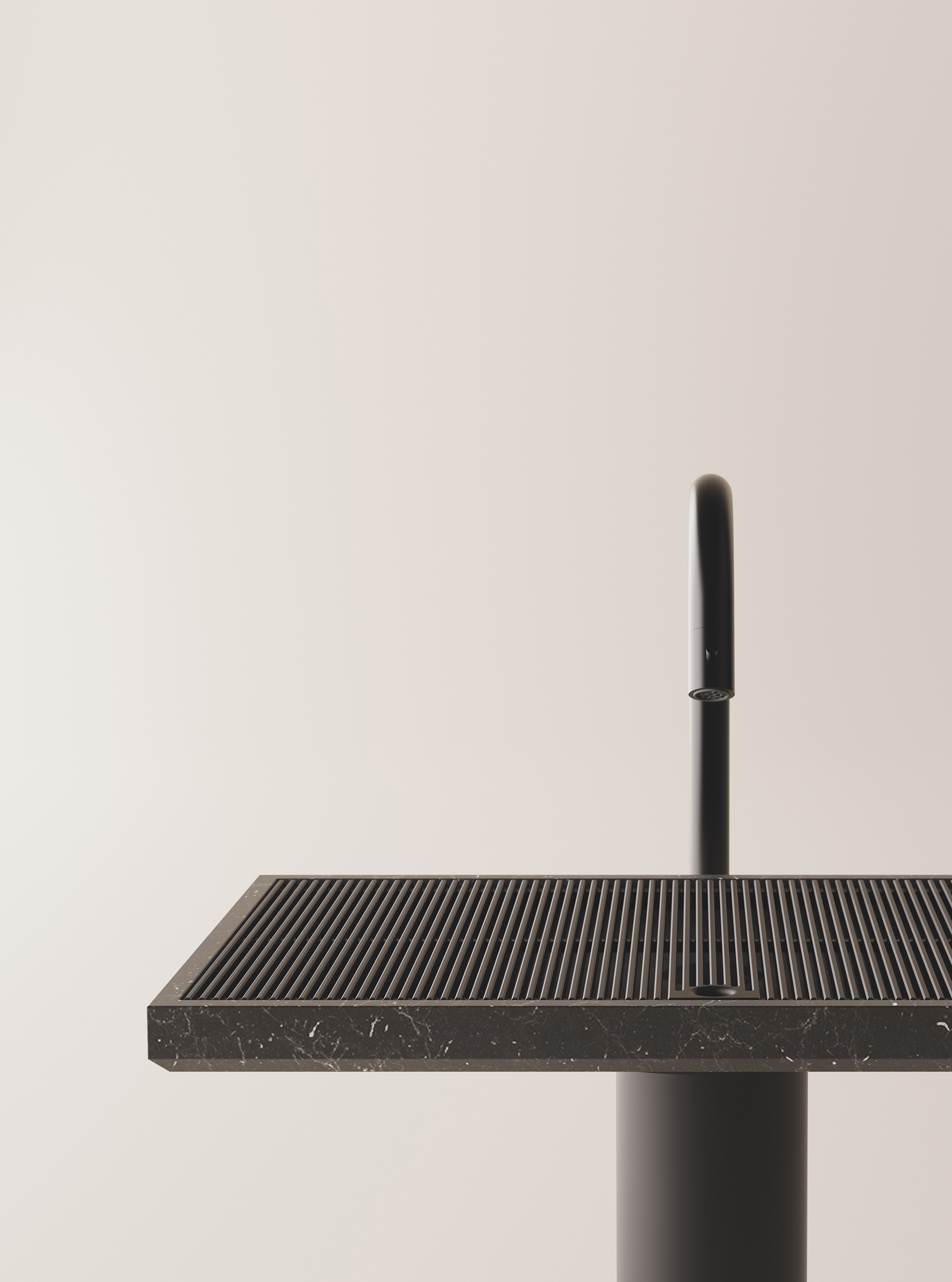 A grille covers the surface of the basin, serving a dual purpose and also giving the design a contemporary look. Apart from hiding the drainage, the grille also doubles as a support surface for bars of soap and smaller objects. Thanks to the refined simplicity of the design, Ell showcases the beauty of the specially chosen materials. Agape offers this freestanding washbasin in different versions; while the column comes in white or dark powder-coated steel, the top and grille come in light or dark Corian®, white Carrara marble, gray Carnico marble, or black Marquina marble. Agape will launch the Ell washbasin during Milan Design Week 2022, at the “Here. There. After.” exhibition, held at the Agape 12 showroom, from June 7th to June 12th, 2022. If you want to see this beautiful design in person, you can book your visit through the brand’s official website. Photographs © Agape.