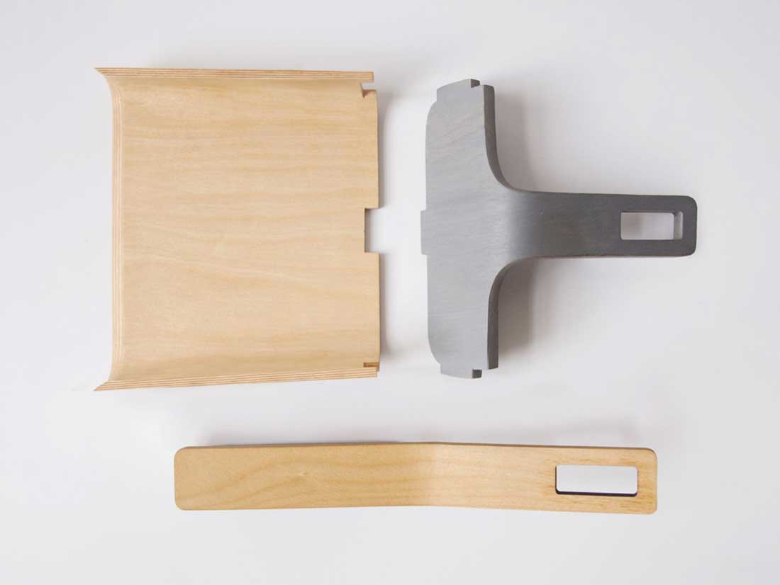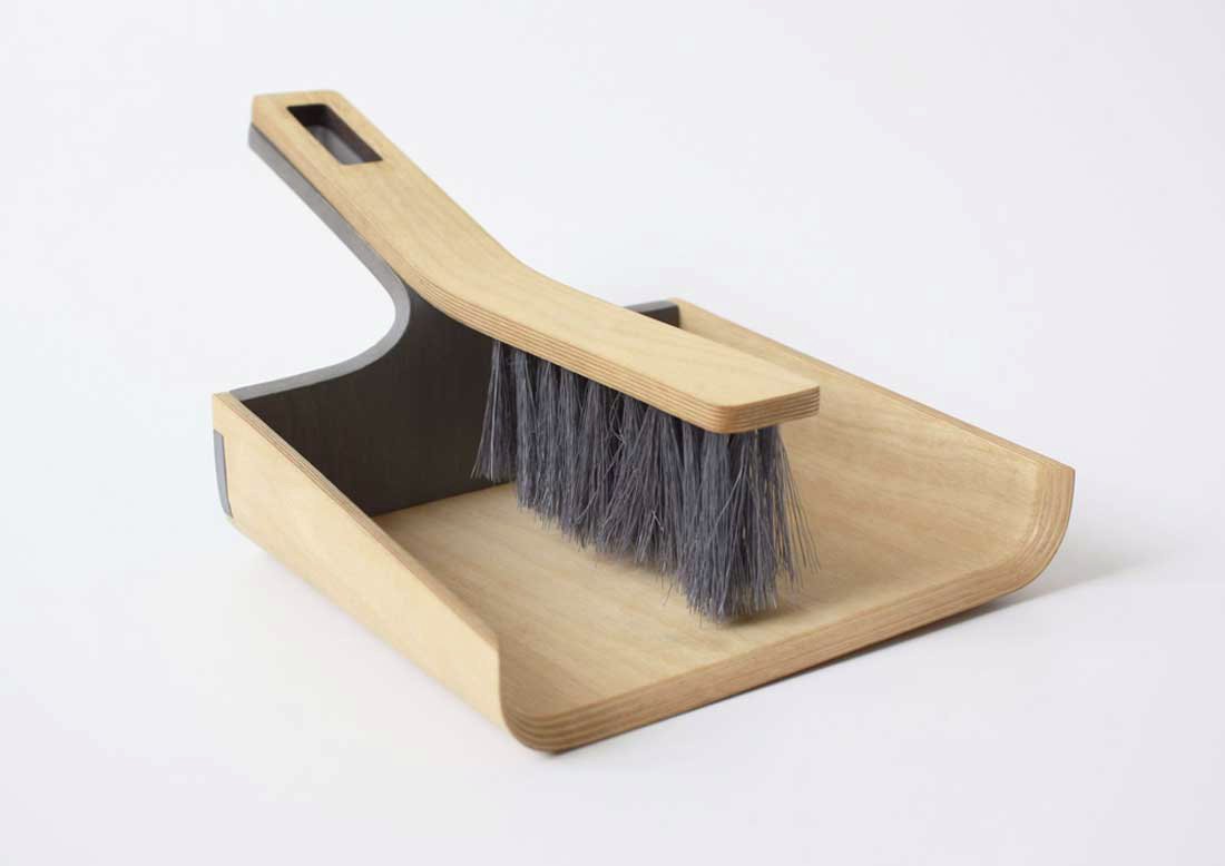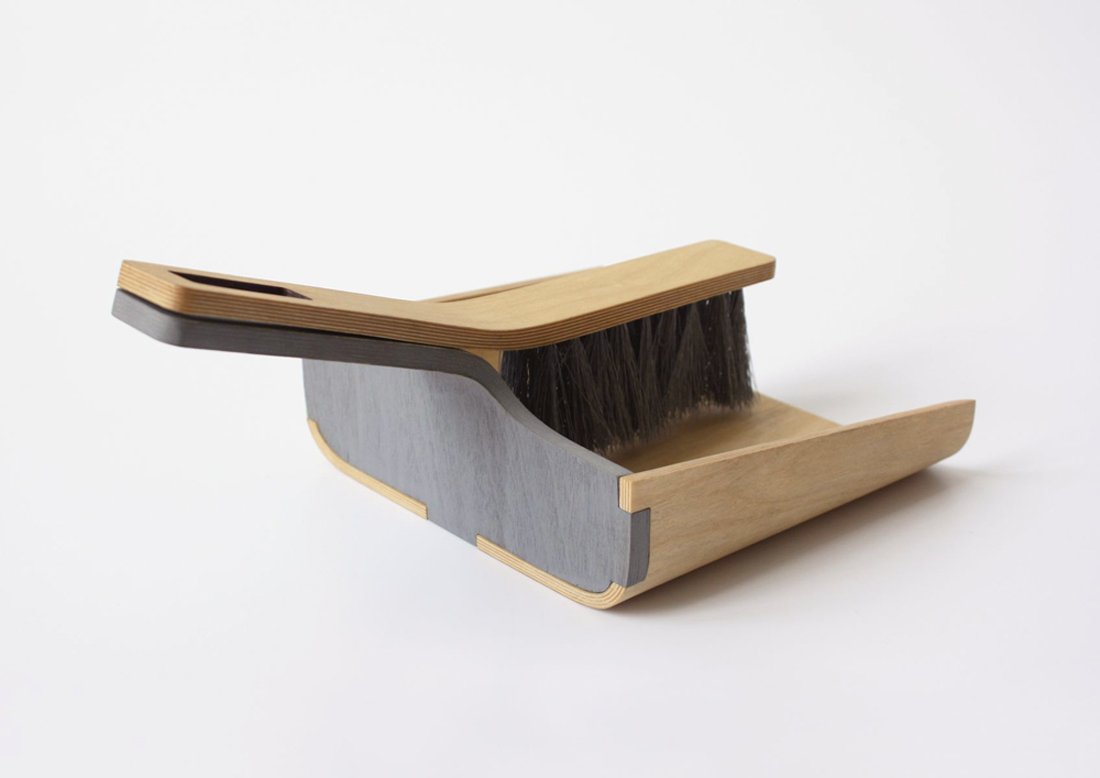 Curved plywood embodies an elegant dust collector. The three piece design clicks the brush to the pan also the handle to the base tightly by magnetic force. The housekeeper is named Alfred: respectable, efficient, a true minimalist, a pleasant looker. Adding to your home some beauty, taking from your floors some dirty. Created by Tom Chludil.