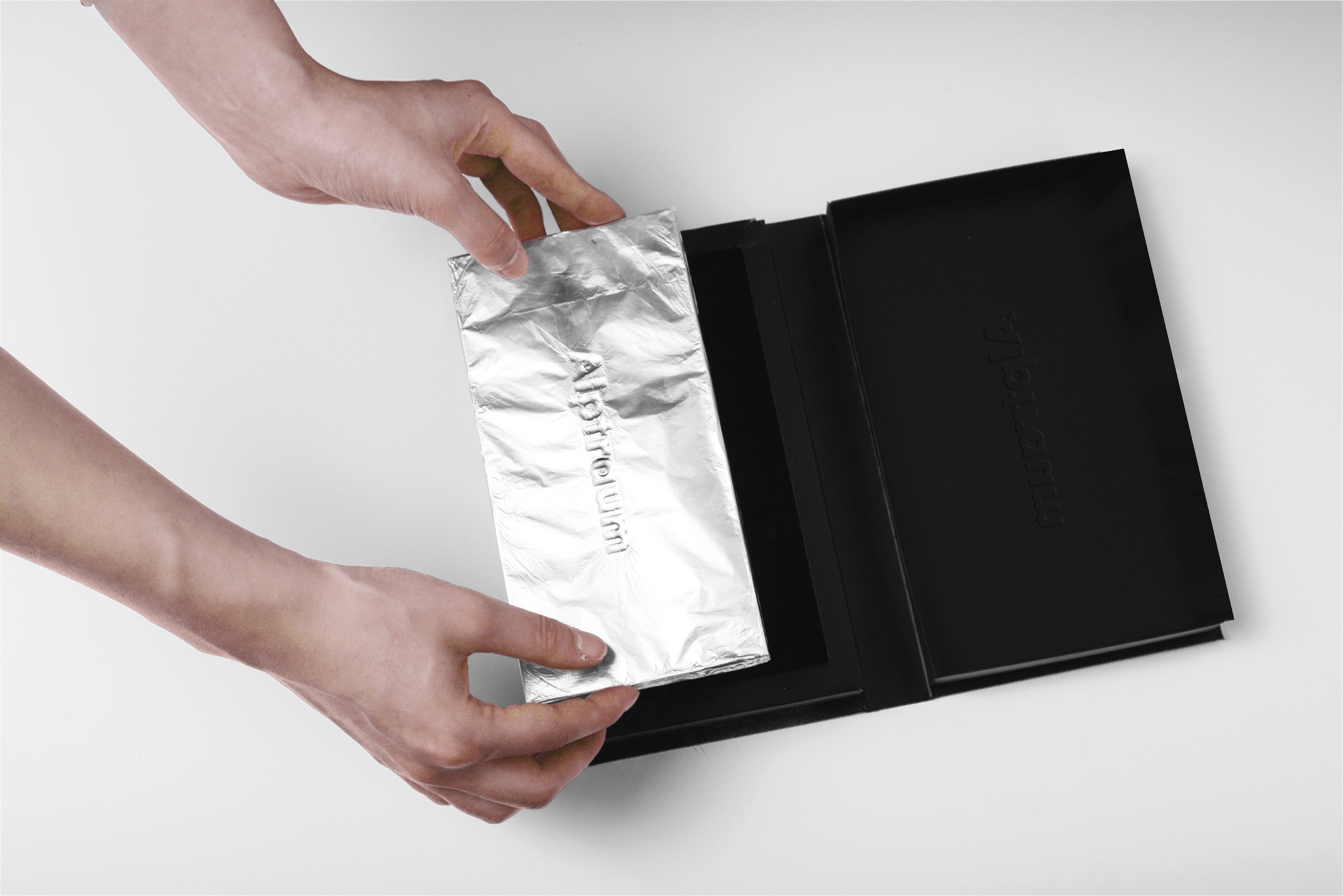 The name means “nightmare” in German, providing the first hint of the concept. Housed in a pitch black box, the chocolate has a gleaming, silver foil cover. Tearing up the wrapping, one discovers the dual nature of the product. Dark and bitter on one side, white with poppy seeds on the other. More than just a day/night or a dark/light analogy, Alptraum is a thought-provoking as well as an excellently executed design. Photographs© Nora Kaszanyi.
