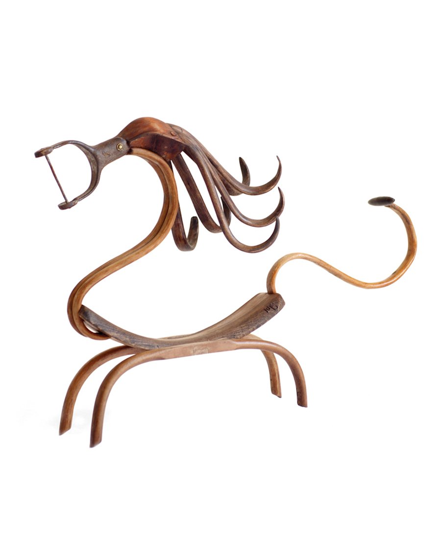 French artist Marc Sparfel has heard the call of the wild and is answering with a creative, regenerative response. His latest endeavors repurpose abandoned furniture into wooden animal sculptures, the collection running the gamut from agile antelopes to proud lions. Each collage is composed of handpicked elements occasionally bearing traces of their former lives, and the elegant, organic curves of every limb, hoof, and snout introduce an extra spark of life. Though the silhouettes are one step removed from the realistic, small details inherent in the wooden pieces outline tufts of fur and little smiles on the faces of the menagerie.