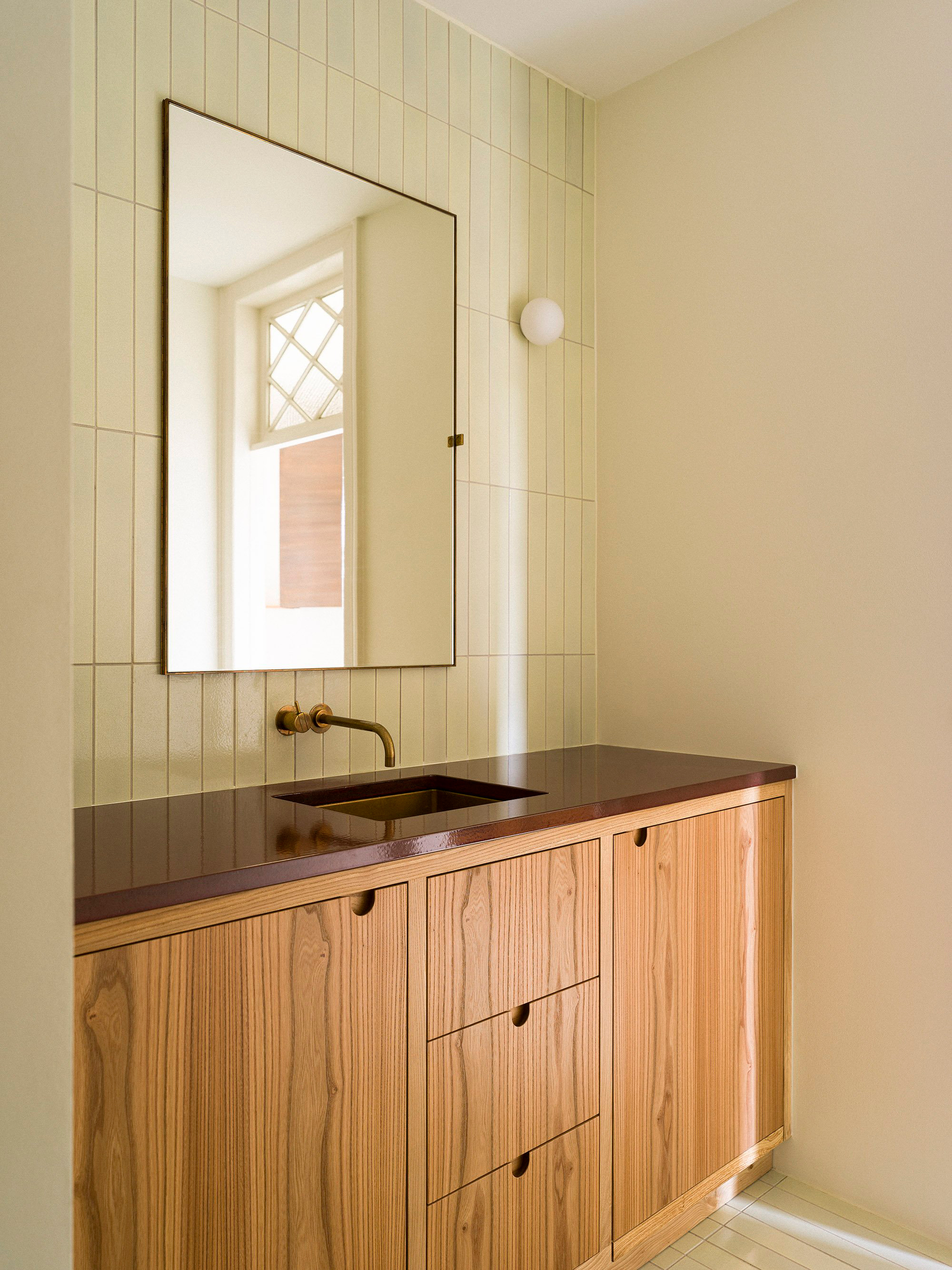 Located in a building that dates back to 1891, this apartment in the Nørrebro district of Copenhagen, Denmark, has a deep connection to the history of the city. Danish architecture practice Lundgaard & Tranberg Arkitekter collaborated closely with the client to complete the custom design of the kitchen and bathroom, along with new color palettes for all rooms. The interiors give a nod to a specific chapter in Copenhagen’s history. In 1998, the local authority felled the trees from the historic Kongens Nytorvsquare, due to Dutch elm disease. Using the wood from those same trees, the team created custom cabinets and furniture for the apartment’s kitchen and bathroom. The new elements reflect the client’s love of craftsmanship.