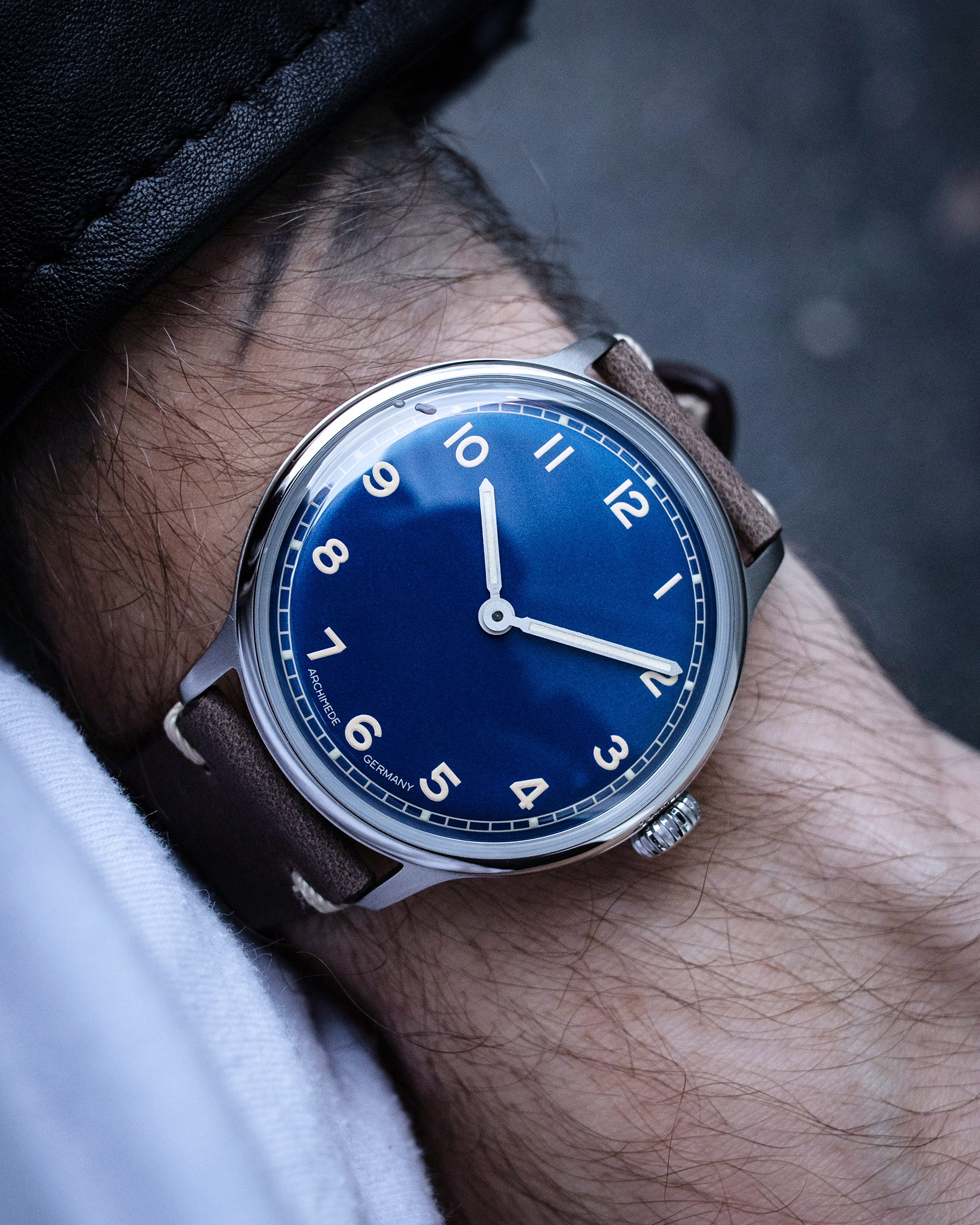 The 1950-3 watches come with Swiss SW 200-1 automatic movements as standard. Hand-wound SW 215 movements are also available, at an extra cost. Other features include a domed sapphire crystal, water resistance up to 3 ATM, and optional deployment clasps. Customers can also choose between the vintage-style black, dark brown, and light brown leather straps. Alternatively, they can opt for the Milanese metal straps that have a polished finish and folding clasps. The Archimede 1950-3 watch is available now at prices that start at €621, or around $750. Photographs© Archimede Watches.