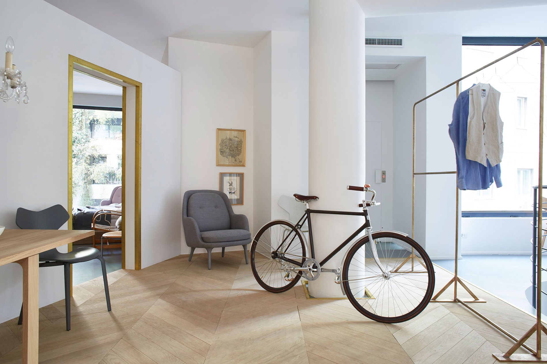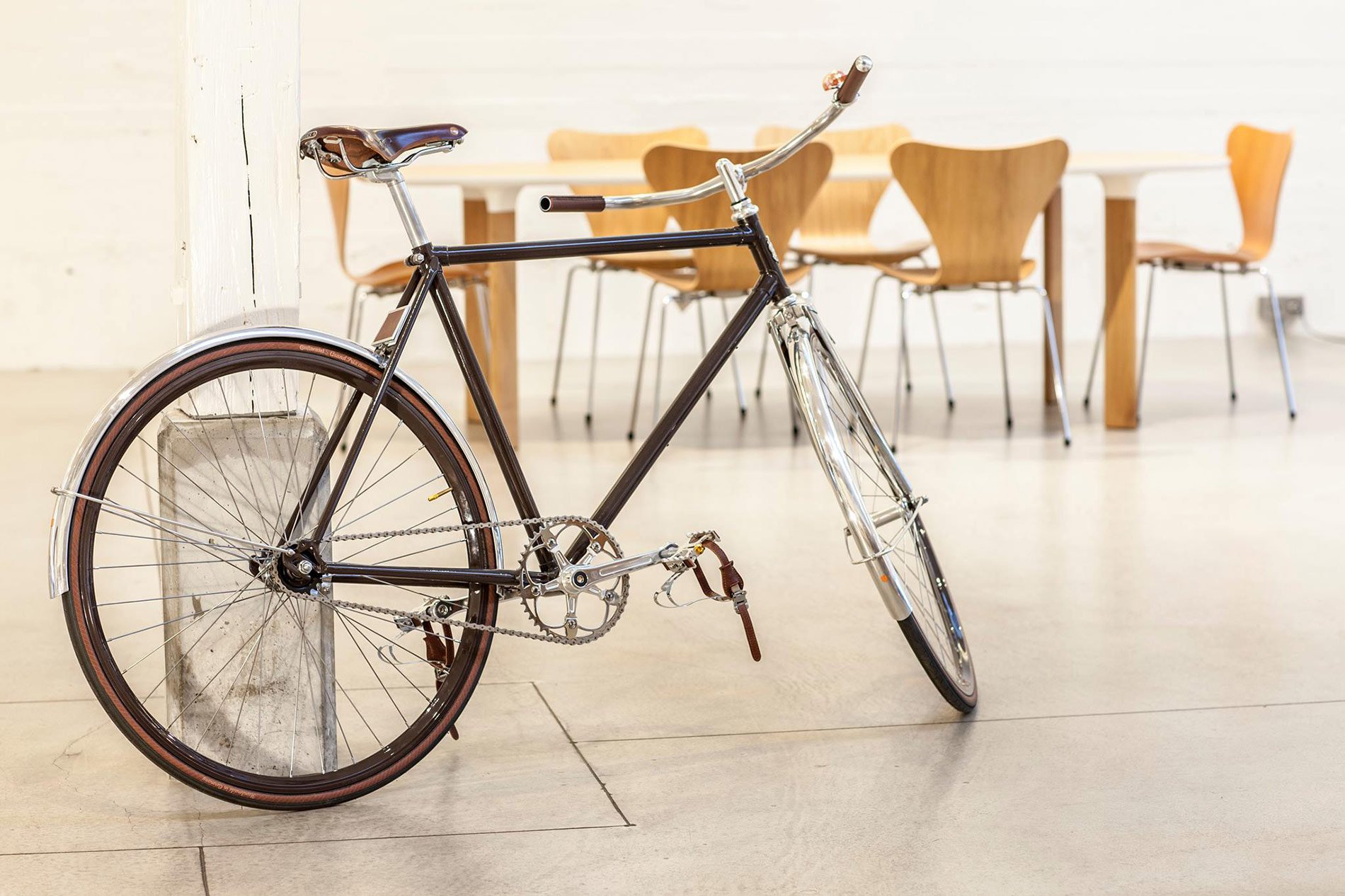 Celebrating the 60th anniversary of the Series 7TM chair, the Arrow Seven 60 city bike is looking good for its age. Designed as a collaboration between Danish bicycle company Velorbis and Danish furniture designer Fritz Hansen, the bike was built with the modern urbanite in mind. While at first it may seem odd for two drastically different fields to work together on a bike, it holds true to the Danish love of cycling culture, and the belief that a bicycle is a piece of contemporary furniture. Featuring a frame hand-built in Germany, both a leather saddle and leather grips, a copper bell, stainless steel mudguards, and even a leather name-plate, this is not the kind of bike one takes off-roading. Its quality radiates a desire to be hung on a wall like a trophy, or kept indoors as a tasteful addition to the furniture. But all these exclusive features (part of the fact that the bike is being manufactured as a limited-edition) make it all the more tempting to strut around town; separating the cycling enthusiasts from the plebian bike commuters. This is a bike for one who holds craft with the utmost regard, and showcases the pinnacle of Danish design.