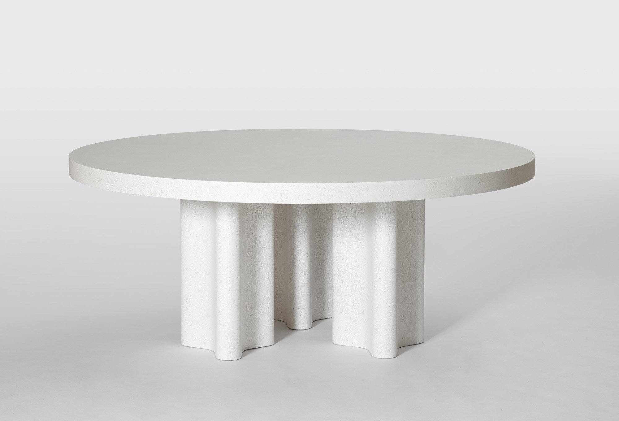 A clover-shaped element connects all of the pieces of furniture, whether as a horizontal or a vertical element which supports a flat surface. Various tops, in different shapes and sizes, complete the designs. The range includes side tables, tables, benches, and consoles. All boast the same distinct aesthetic which brings together organic shapes and simple forms in perfectly balanced compositions. Sculptural and refined, the designs look at home in modern interiors, where they become focal points as well as conversation starters. The Azo collection is on view at Galerie Kreo in Paris from February 16 until May 12, 2018. Photographs© François Bauchet, Galerie Kreo.
