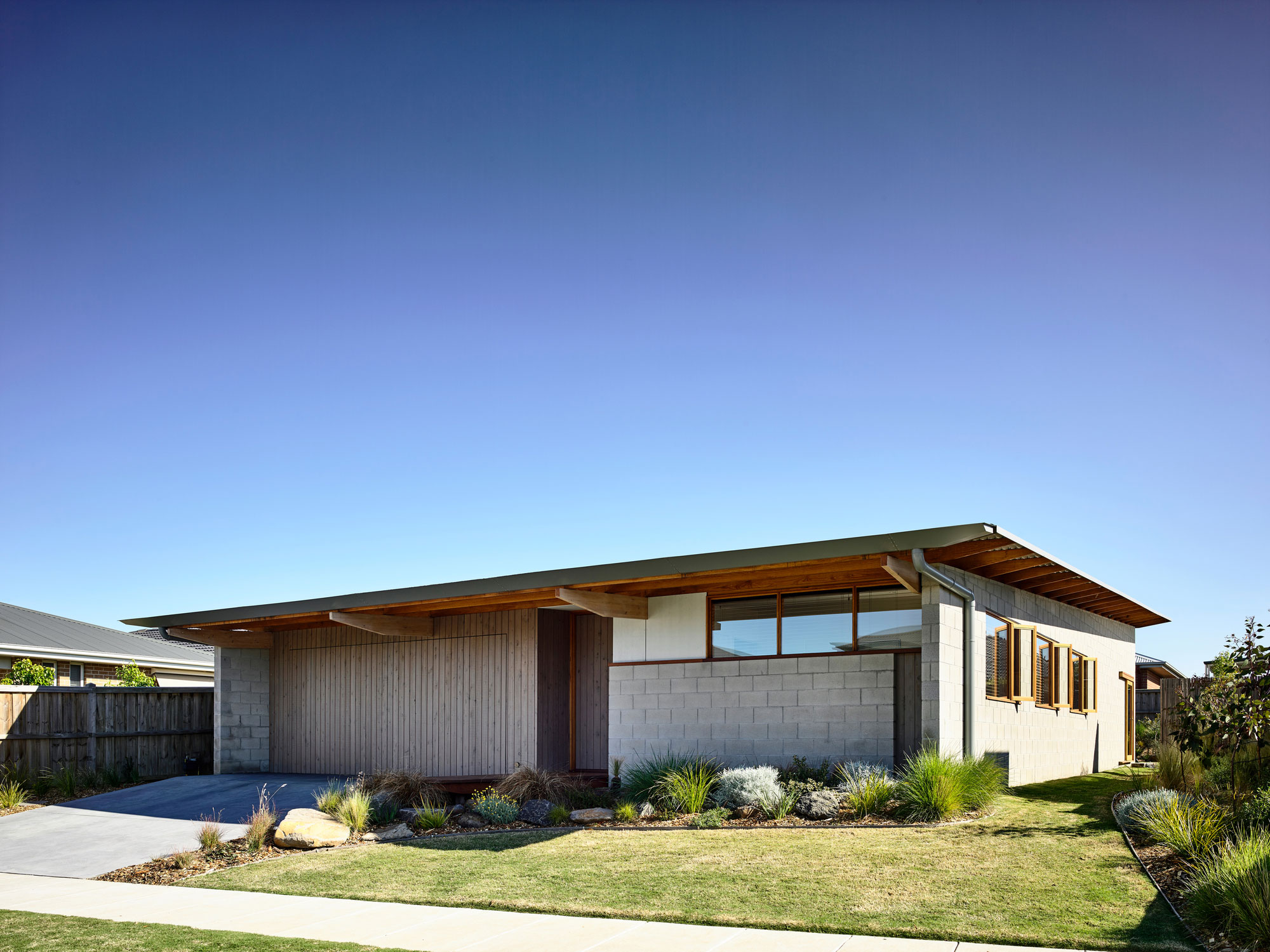 Built within a suburban golfing estate in Ballarat, Australia, this residence stands out among gabled houses thanks to a contemporary design that maximizes access to sunlight throughout the year. When the clients commissioned Eldridge Anderson Architects to design the house, the site was largely empty, without neighboring houses. The brief focused on the clients’ desire for a comfortable home they could use all-year-round; a compact residence where they could still welcome visiting family and friends for short-term stays; and a low maintenance dwelling built on a modest budget. The studio designed the house with a restrained aesthetic but with bold details, like walls made of tactile cinder blocks.