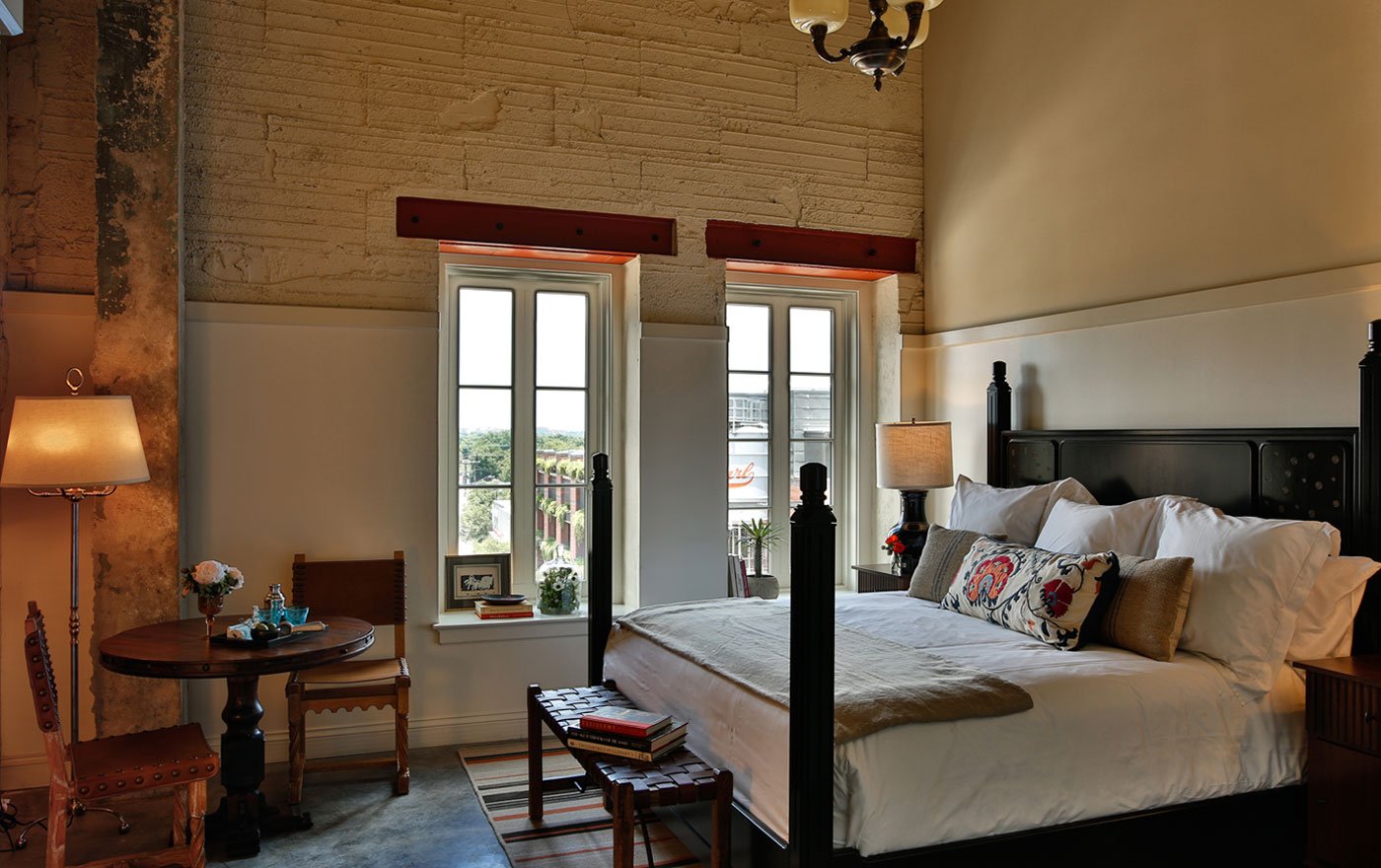 Hotel Emma’s interior feels gritty and lavish all at once; guests catch a glimpse of a 20th century copper engine that dominates the lobby while staff adorned in seersucker guayaberas by Dos Carolinas serve cocktails and hand-shaken margaritas. But the hotel’s most exceptional service may be their “Culinary Concierges”, who “will strive to be an unprecedented resource that brings focus to…guests’ culinary and cultural experiences by providing unique insights into ‘authentic’ San Antonio.” Pearl staff will employ their local expertise to craft a once-in-a-lifetime experience to fit each guest’s unique interests. The hotel’s fascinating combination of antiquity and luxury continues into each bedroom — outfitted with a four poster bed inspired by Herter Brother and White Frette linens — and each beautifully tiled bathroom — complete with a claw foot tub and pedestal sink. 3,700 volumes from Sherry Kafka Wagner fill the shelves of the stunning two-tiered, in-house library while the Sternewirth bar and clubroom – named for the rule that allowed brewery workers to imbibe on the job – gives guests a relaxing yet fascinating way to end their days. There you can sample the bar’s signature drink, the “Three emas” – made from gin, apricot brandy, and absinthe.
