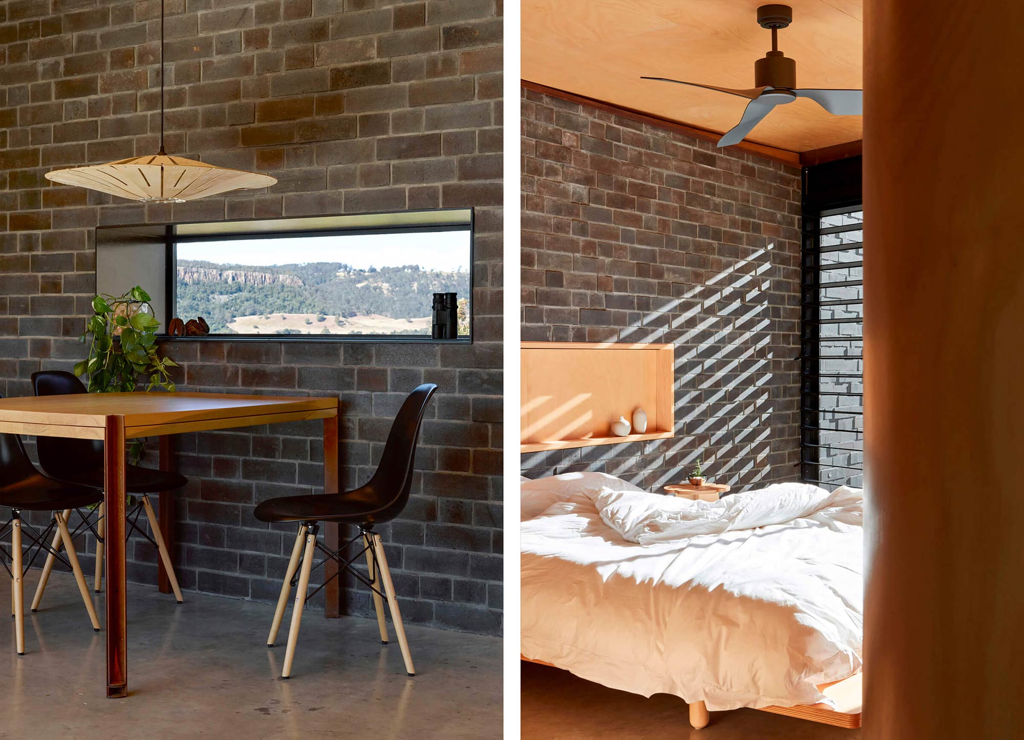 The interiors are simple and functional as well as beautiful. The studio complemented the exposed brick walls with a low-maintenance cement floor and minimal wooden furniture. Bellbird Retreat has received many awards, including the international Architecture Masterprize at the Good Design Awards and an Australian Institute of Architects State Award for international small spaces. Photography© Steendijk.