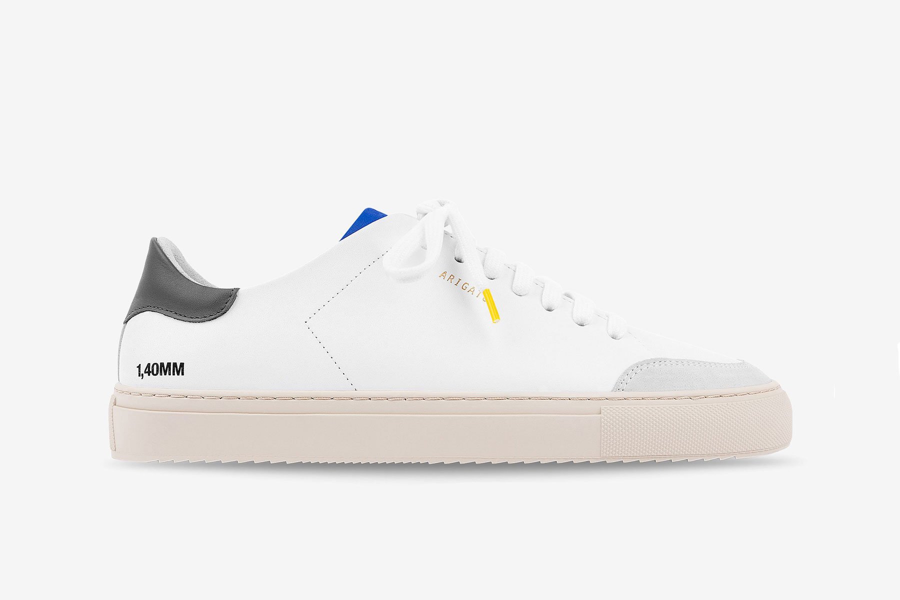 Meet the creative white sneaker you didn’t know you’ve been looking for. Made by Axel Arigato, the aptly named Clean 90 Sneaker is as fun as it is original. It’s crafted with a white leather upper with a dark gray contrast heel and a light gray suede toe. The rubber cup sole in a beige color features quality stitching for more durability, while the cushioned footbed provides a more comfortable feel for everyday wear. A blue tongue and bright yellow lace details add a playful accent to this cool sneaker design.