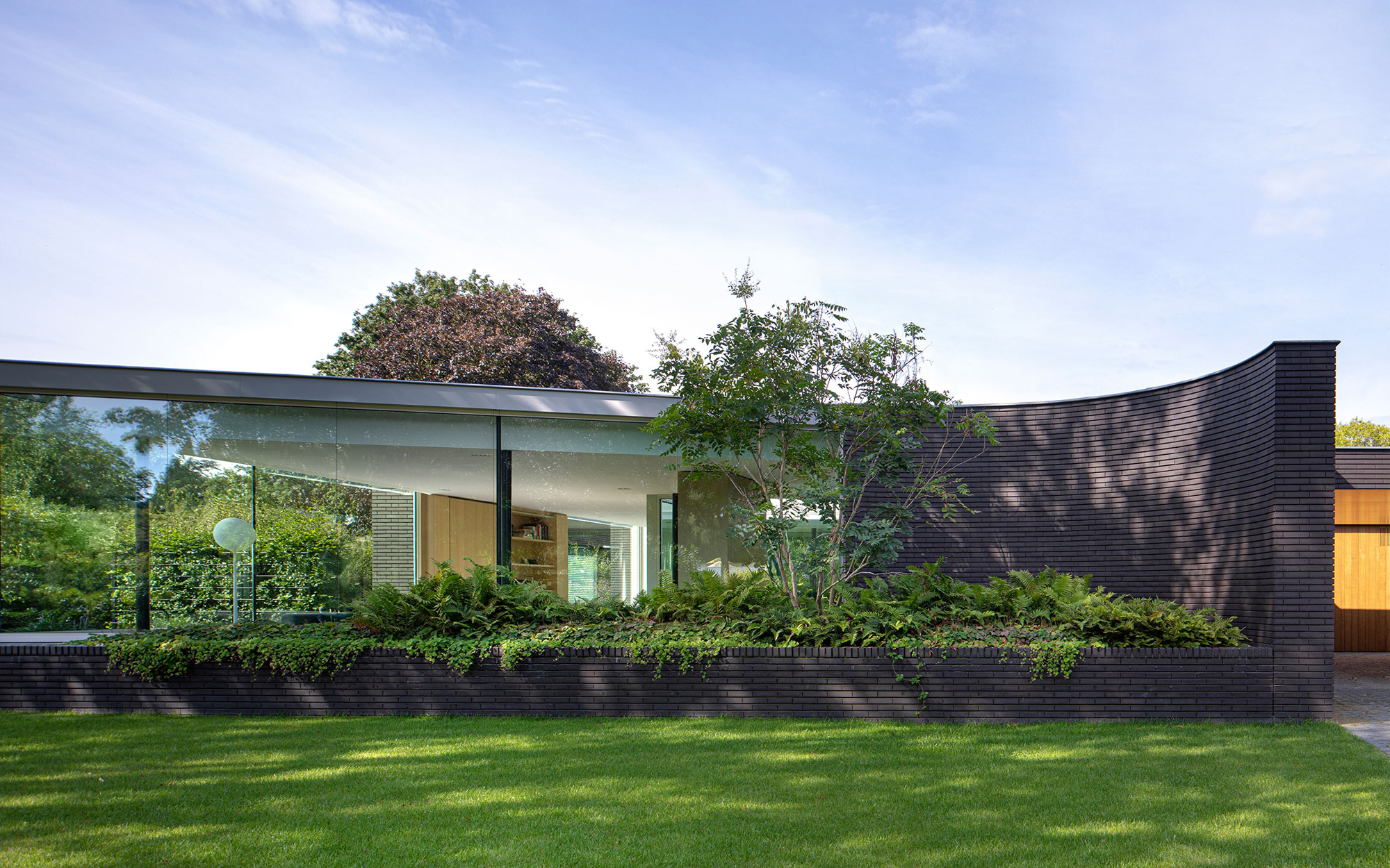 A stunning retreat designed with a curved brick wall.