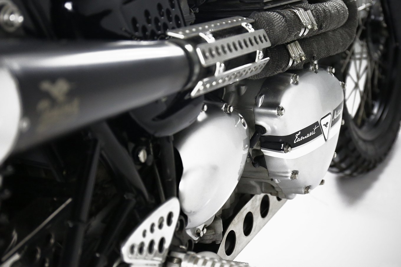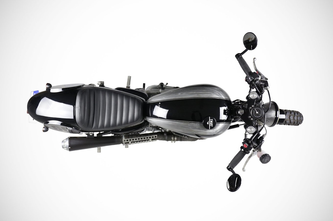 A black and silver beauty with a fiery heart, this motorcycle not only makes heads turn wherever it goes, but it also reminds that life looks and feels better on two wheels. Named “The Black Mustache”, the bike manages to look both stylish and ferocious at the same time. It ultimately displays the talent and design conscious approach of the team behind Tamarit Spanish Motorcycles. They succeed in transforming this 2004 Triumph Thruxton into something special and one-of-a-kind.