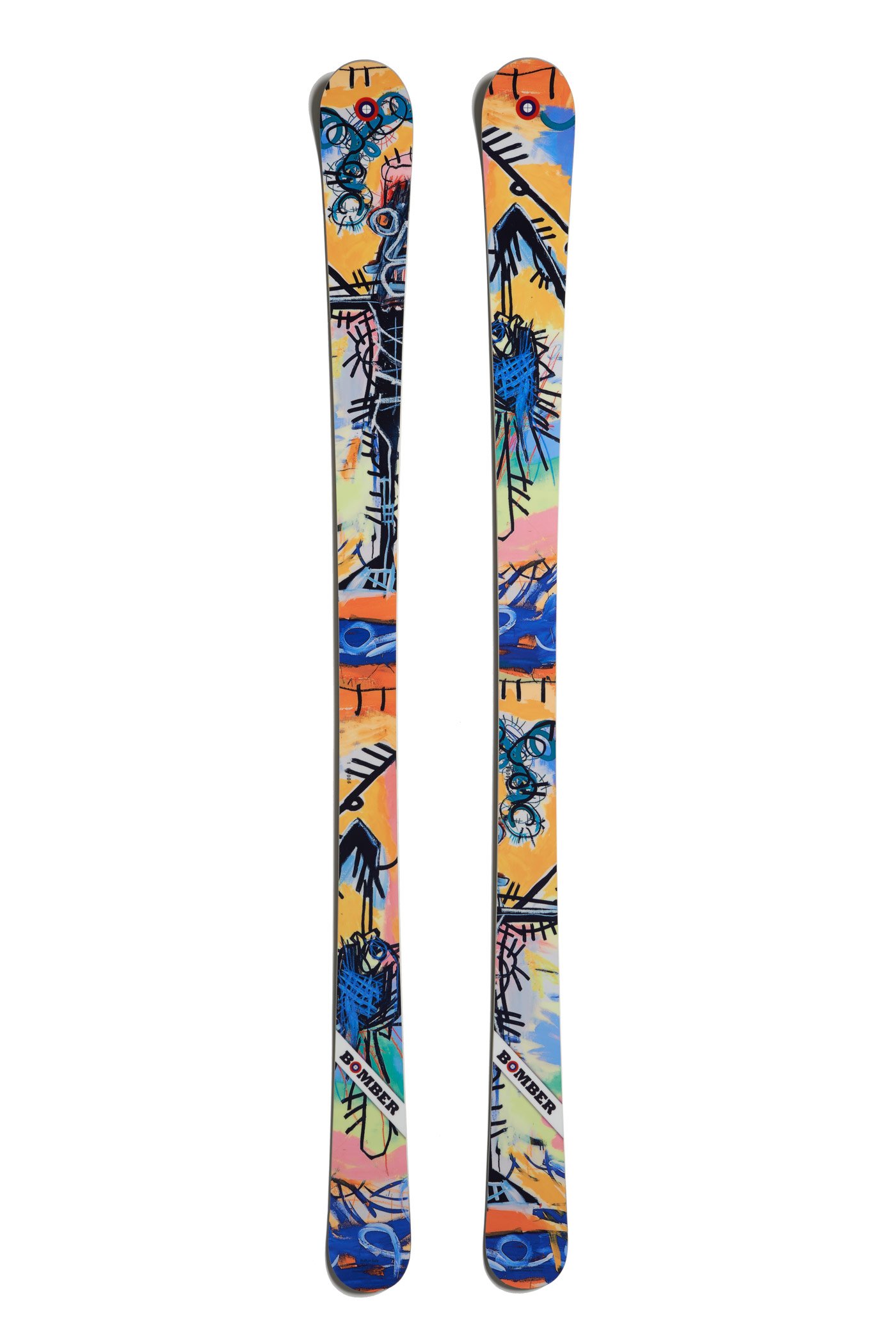 While Bomber’s main objective is producing quality skis, they do not cut corners on aesthetics. Each of their products is an object of beauty, whether featuring minimalist graphics designed in-house or bold prints such as limited production runs of selected artwork imagery from Jean-Michel Basquiat and Keith Haring. For their Artist Series, Bomberski releases three Basquiat and Haring designs every year. Previous seasons included Dino, Luna Luna, Black Crown, and Red Snake designs, and the 2014 crop just launched. Available in adult and also, for the first time, in junior sizes, the luxury skis are now sold alongside Bomber bindings and carbon fiber poles, gear that is just as finely crafted and designed as the skis themselves.