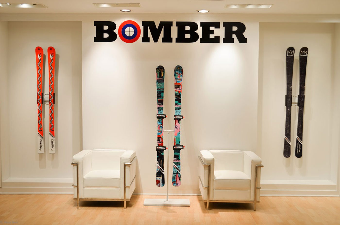 Siegel says that one of Bomber’s goals is to go beyond the sports brand mentality of treating skis “like a commodity.” Customers won’t find Bomber Skis stacked in a bin. Rather, the designs are displayed. Taking a cue from the MOMA, Bomber invests in the presentation of individual skis, which seem to float in a minimalist frame and are lit like pieces of art in Bomber’s Madison Avenue Ski gallery.