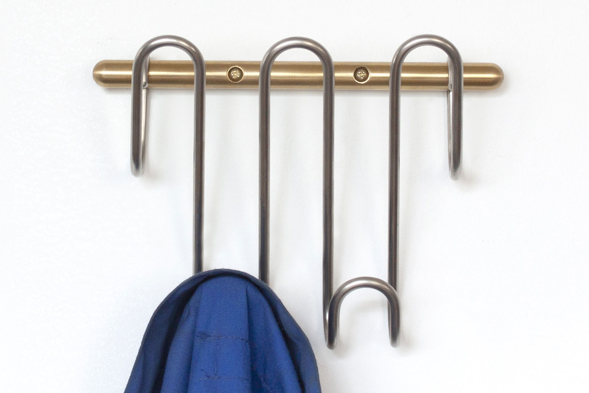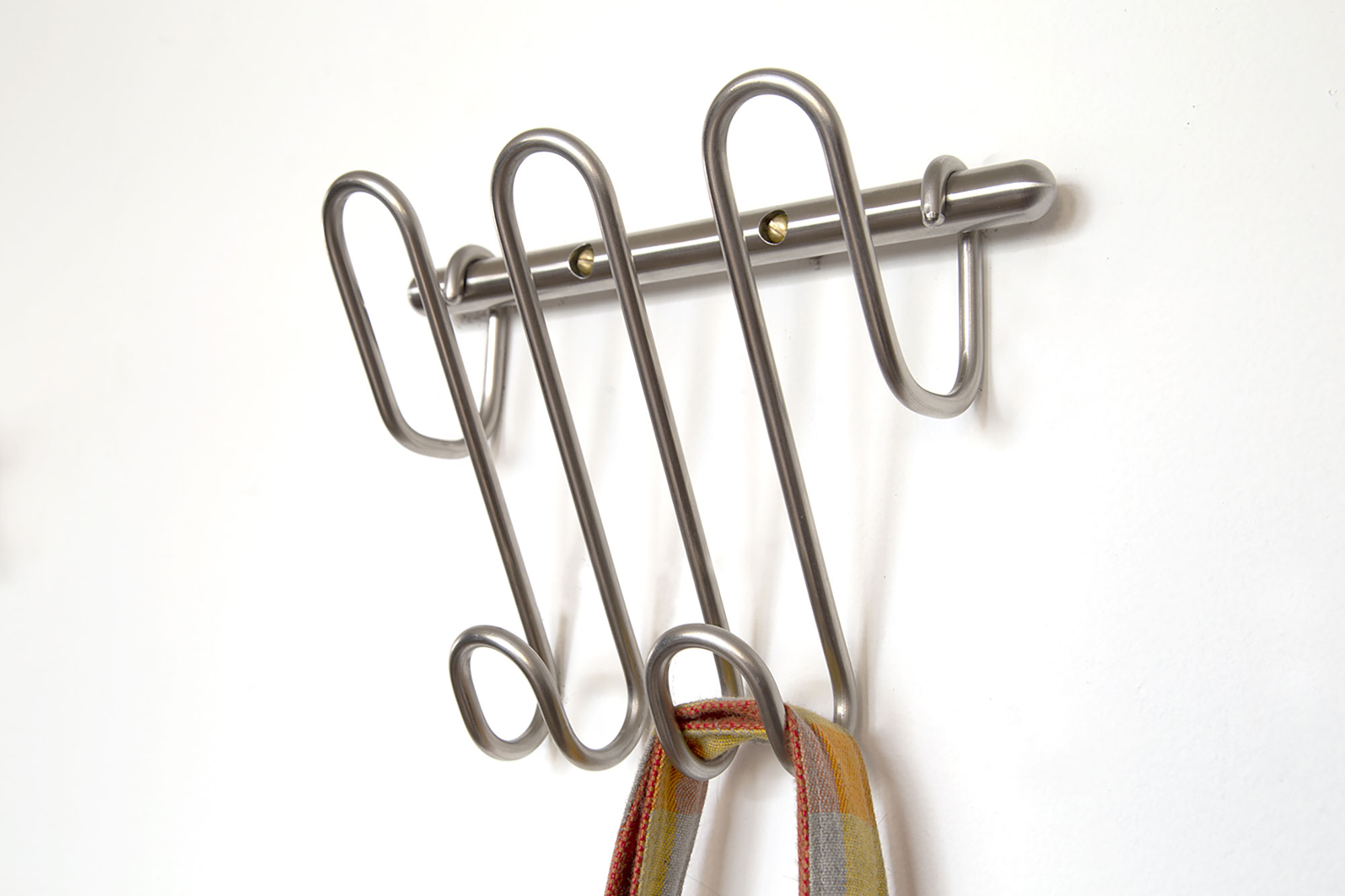 While the design is visually pleasing, the shape of the snaking form also puts a focus on function, leaving enough space in between the hooks to store multiple items. The ¼” steel wire features ½” radial bends and fits into the grooves of the mounting bar perfectly. As the wire locks into the two grooves, the coat rack remains in place without sliding or rotating. Ideal for entrance hallways, the Bozeman Coat Rack also suits kitchens and bathrooms. For larger rooms, the user can easily install multiple units on one wall. Plus, Craighill offers steel and brass combinations to choose from, to complement any décor. Photographs© Craighill.