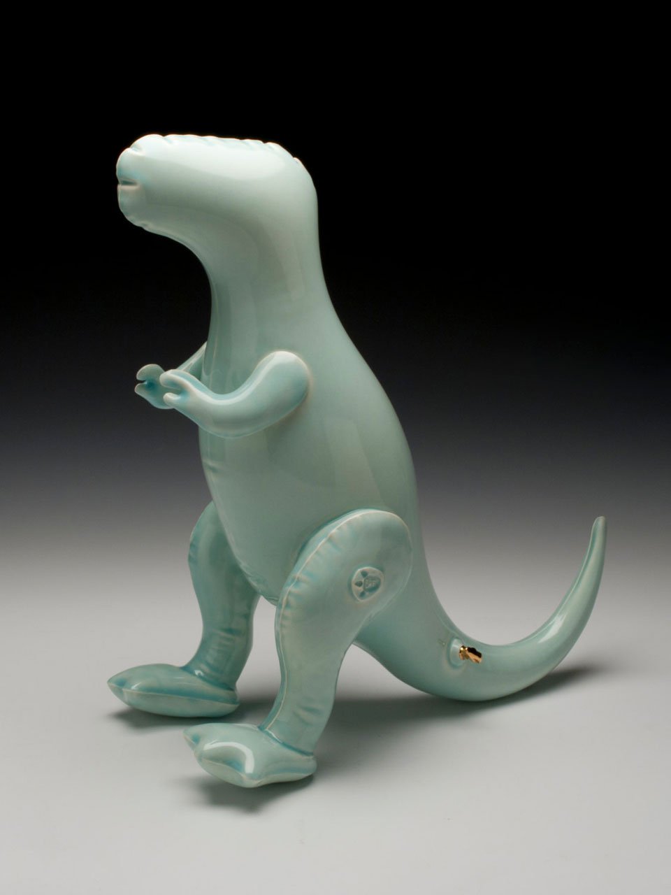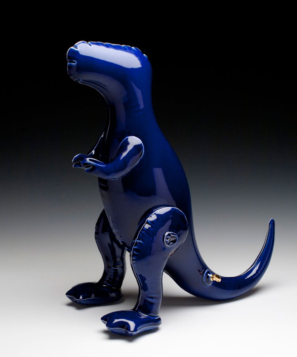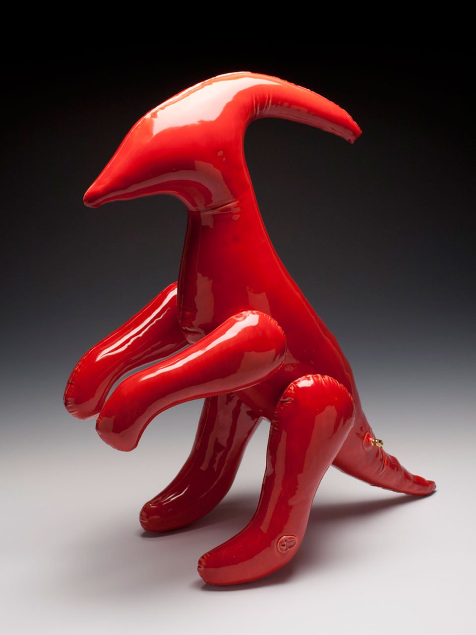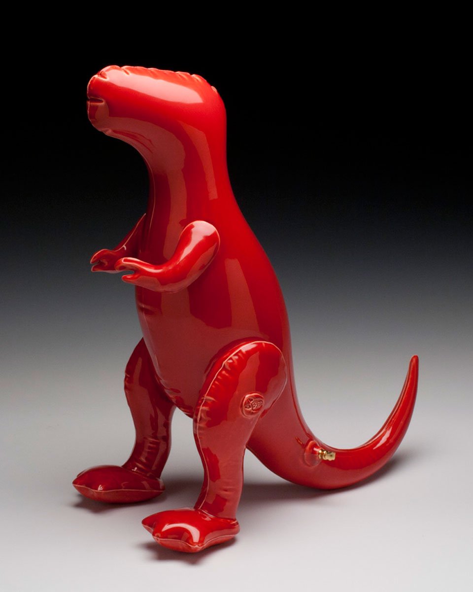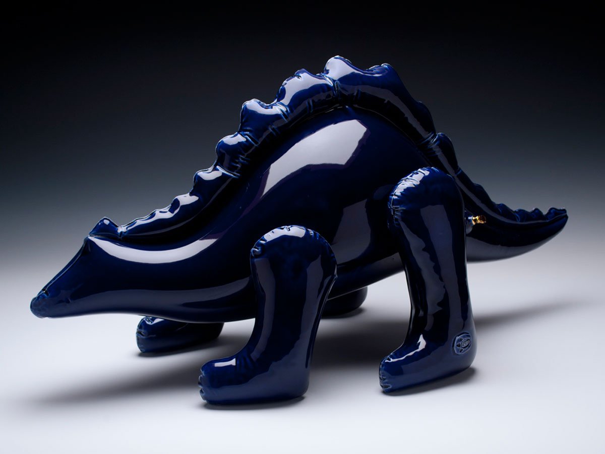 Hang onto your hat…a stampede of prehistoric and extra terrestrial beings are coming right this way! These colorful models of dinosaurs, astronauts and balloons appear to be inflated with air, however they are in fact made of ceramic. Their shiny exteriors are what make them seem most believable. Prepared for tightening the pressure with a faux golden valve stem just to tease our brains. Designer Brett Kern is pumping out all sorts of playful and cheery works from groundhog friends to primary hued cords of wood.