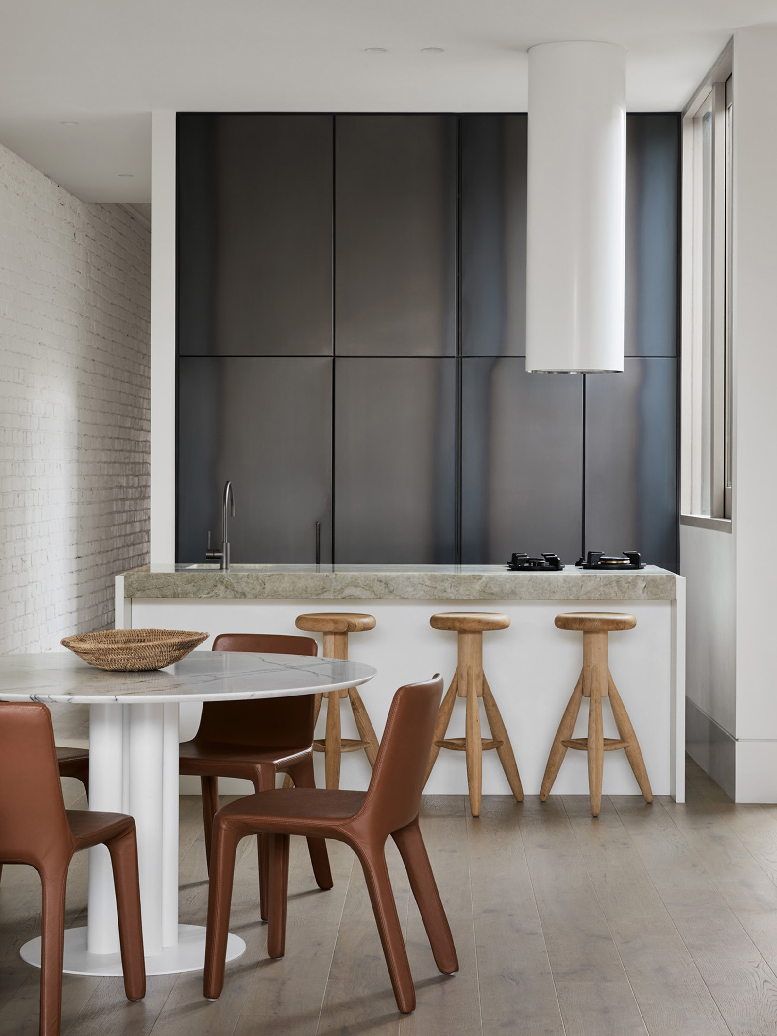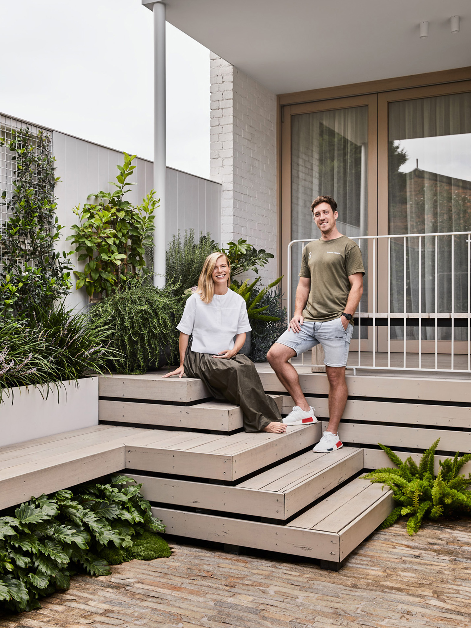 Located in a quiet inner-city suburb of Melbourne, Australia, Brunswick East Residence is a traditional, brick worker’s cottage with a pitched roof. The clients tasked Studio Amble with designing a contemporary extension that expands the available space but creates a dialogue with the original heritage building. Drawing inspiration from the old house, the studio designed a volume that follows the pitched roof of the brick cottage, albeit in a fresh way. The team also worked closely with landscape architects to design lush outdoor areas and a garden.