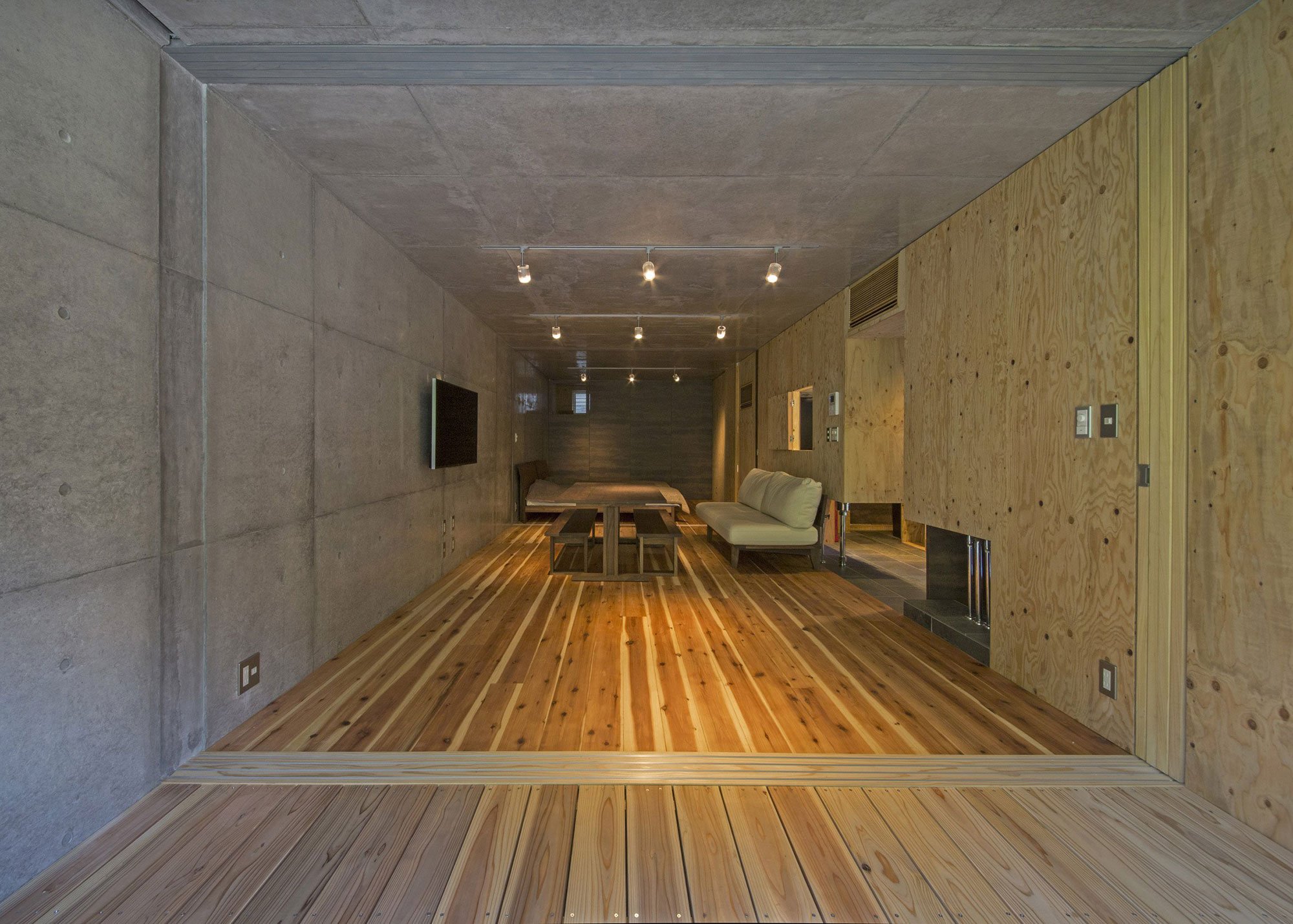 The interior contains a kitchen, bedroom, and bathroom on one side, and the master bedroom, lounge space and deck area on the other. The deck offers stunning views over the river, cedar forests, and the mountains, bringing plenty of natural light inside the house at the same time. Sliding doors open up the rooms to nature, but create private spaces when needed. Raw wood and smooth concrete give the décor a refined look, with minimal furniture also enhancing the house’s elegant design. The roof doubles as a lawn while hiding the minimalist cabin from the road. Steps lead towards the water, inviting the owners to enjoy a bit of ayu fly fishing. Photographs© Masato Sekiya.