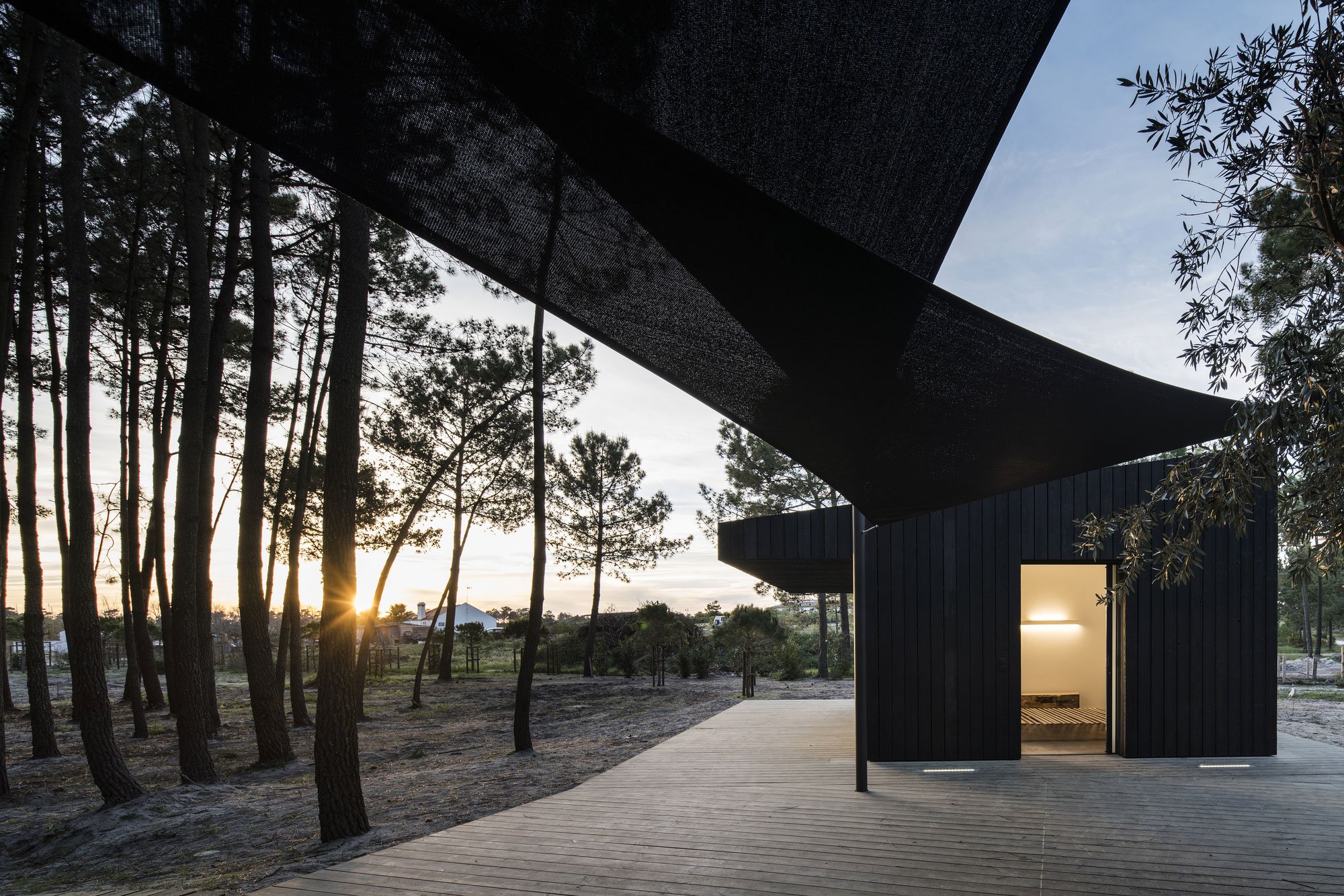 A seaside holiday retreat designed with four black wood cabins linked by pathways. Built in a quiet area among wild pine trees, this residential retreat in Comporta, Portugal, allows... Read full article »