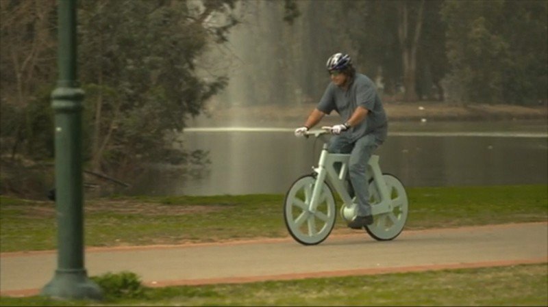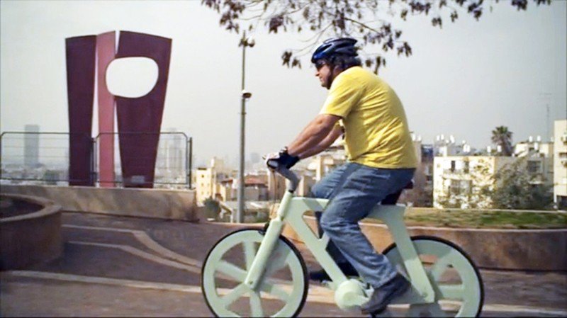 If you thought bike riding alone was green enough, think again. This bike is made of 95% recycled materials. Not only is it an eco friendly choice to bike to work, this ride has green bones as well. Izhar Gafni is an Israeli mechanical engineer who created the Cardboard Bike. Inspired by a canoe he saw made of cardboard “I went home and it sort of disturbed me. This canoe made out of cardboard was sitting in the back of my head… and it suddenly struck my mind; ‘Why not make a bicycle out of cardboard?'” Gafni said in a short documentary made by filmmaker Giora Kariv. He spoke to three different Israeli engineers and they all reached the same conclusion: “It is impossible.”