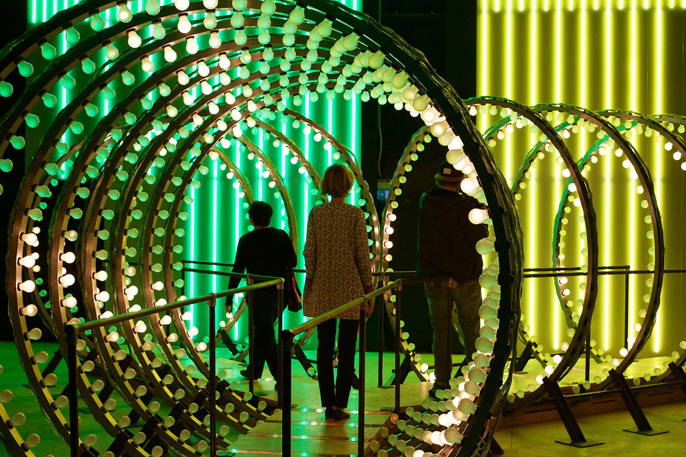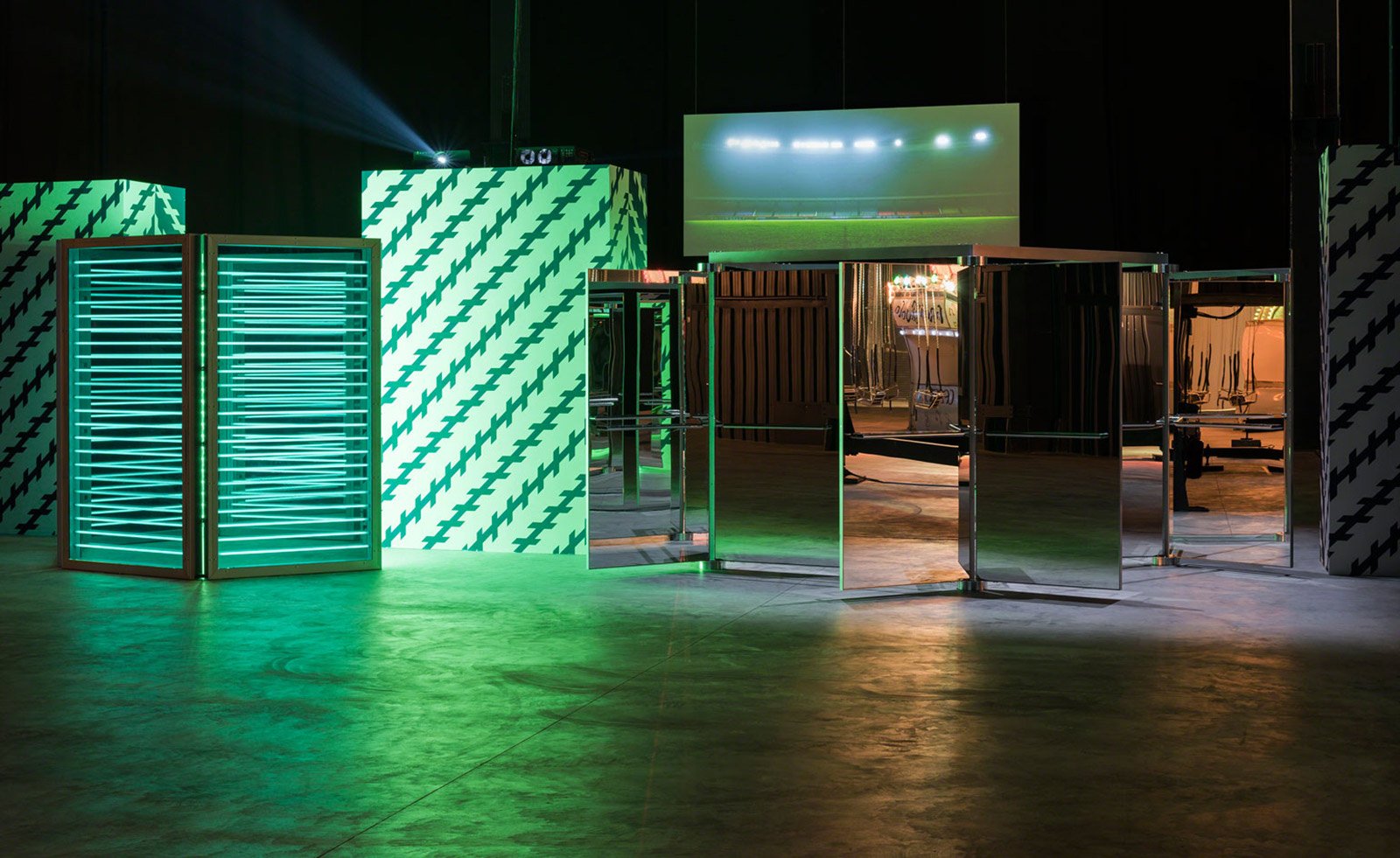 “You might have the feeling that you are missing out on something because there is always another possibility, or there is always another way to do it,” Höller says. This initial interaction with the viewer continues throughout the exhibition, in various forms. A central wall divides the space where more than twenty works are perfectly aligned on two parallel paths. Visitors experience half of the works, depending on their initial choice, and have to remember the installations as they reach the other side and see their missing sections. Sensory participation, duality, the nature of human experience, optical illusions, and altered perception intertwine in this creative labyrinth. Upside-Down Goggles (1994 – ongoing) literally reverses the visitors’ view of the world, Double Carousel (2011) reignites the memories of childhood, while on Two Flying Machines (2015) those who dare can experience the sensation of flight. By contrast, Aquarium (1996) allows the viewer to experience a calm and meditative state. Duplication and duality are interwoven in the fabric of the assembled works. Decisions Corridor (2015) immerses visitors in a dark space where other senses have to take over from the lost sense of sight, while the Light Corridor (2016) stuns with its blinding brightness. At the end of this captivating journey, two beds await for anyone who would like to take a rest (even all through the night). Moving slowly at an almost imperceptible speed, the beds drift the occupiers around the large open space, ensuring that they will wake up in a different place. The Doubt exhibition is curated by Vicente Todolí and it runs from the 7 April to 31 July 2016 at the Pirelli HangarBicocca in Milan. Photography by Attilio Maranzano. Images courtesy of Pirelli HangarBicocca.