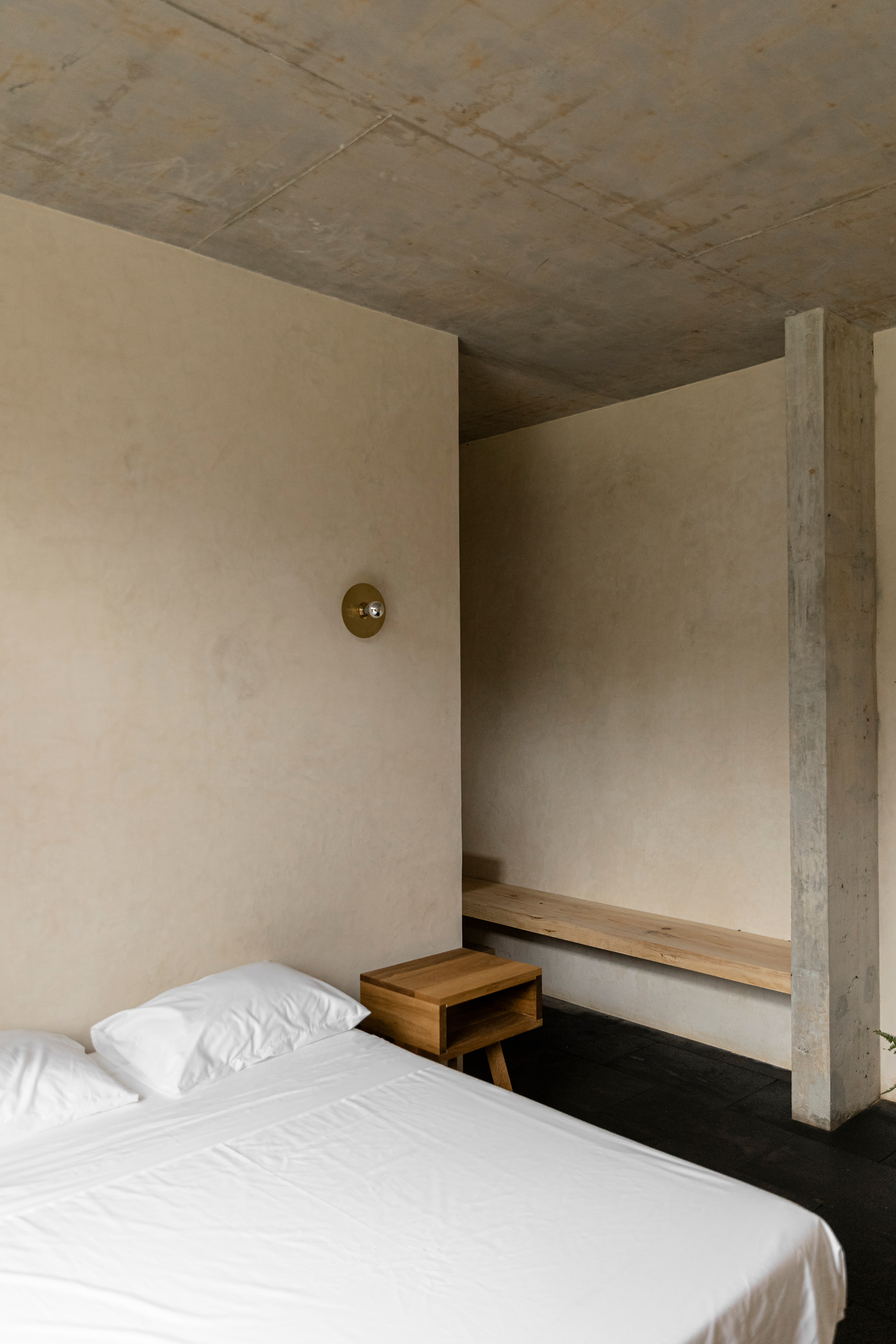 Throughout the house, the architect used a simple material palette. Apart from bare concrete walls which don’t need any maintenance, the house also features walls covered in Chukum, a traditional stucco from Yucatan, and partitions made from recycled pine wood. The team also used wood left over from the construction process to build a cabin nearby. This structure serves as a storage space and lookout point over the surrounding landscape. Designed with deep respect for nature, Casa Aguacates stands at the meeting point between domestic spaces, contemporary architecture, and wilderness. Photography© Sandra Pereznieto, Diego Padilla.