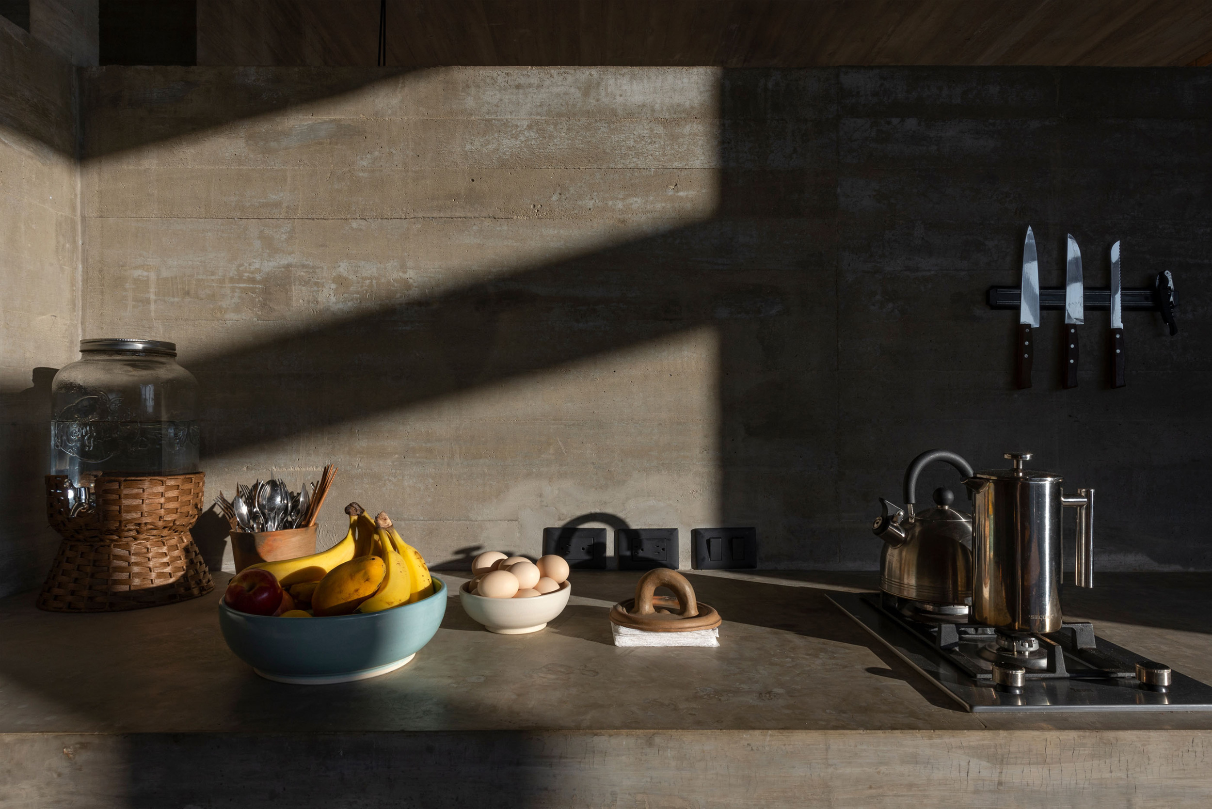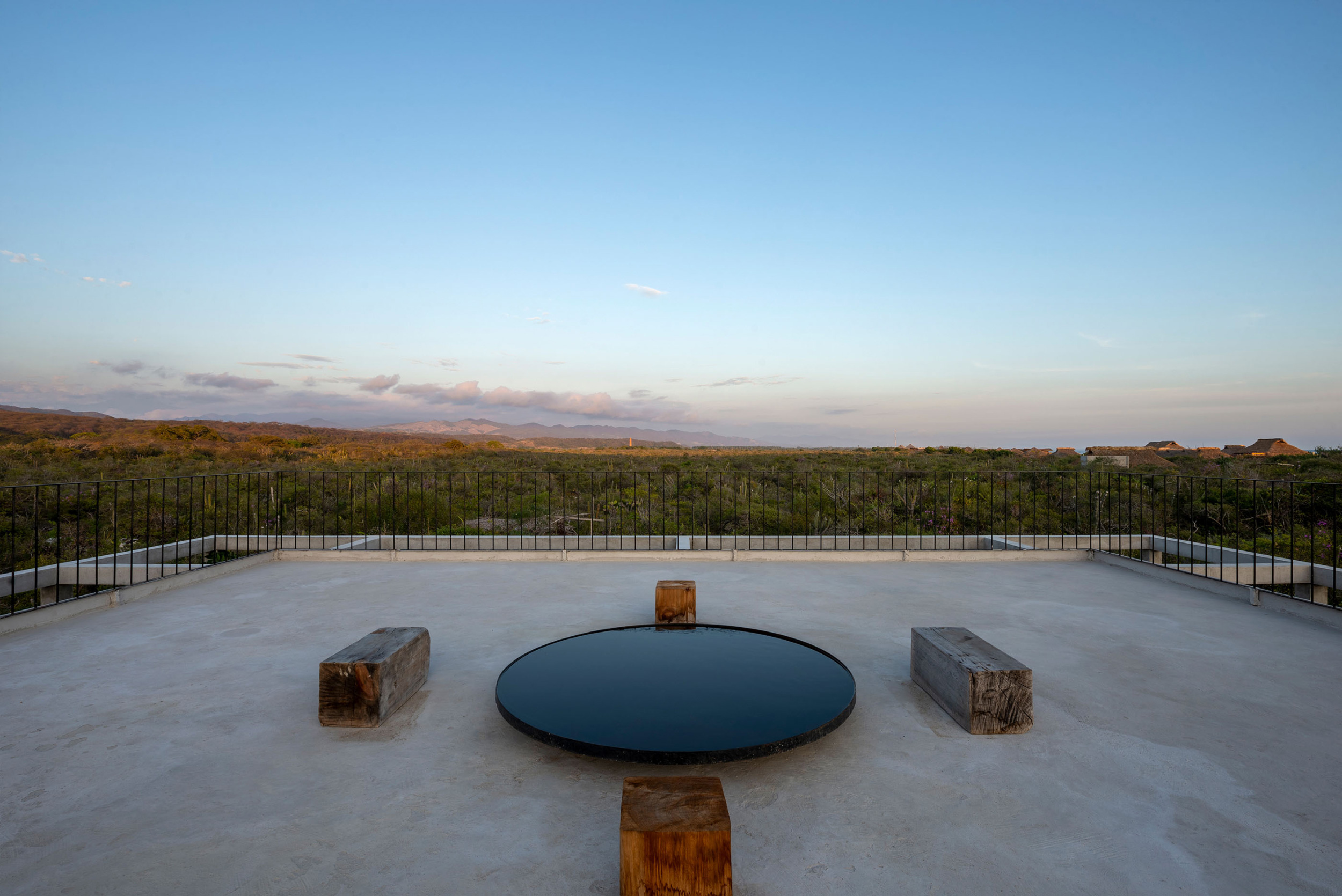 On the roof, the architecture firm designed a tranquil lounge space that also connects the inhabitants to the setting in a poetic way. A round water mirror reflects the sky. Placed among four wooden benches, it provides a glimpse into the celestial landscape at night. Apart from designing the house with a form that responds to tectonic movements in this seismic area, the studio also chose materials that are long-lasting and require no maintenance. Finally, the firm employed only local workers and commissioned local artisans to complete the woodwork. Photography© Camila Cossío, Claudio Sodi.