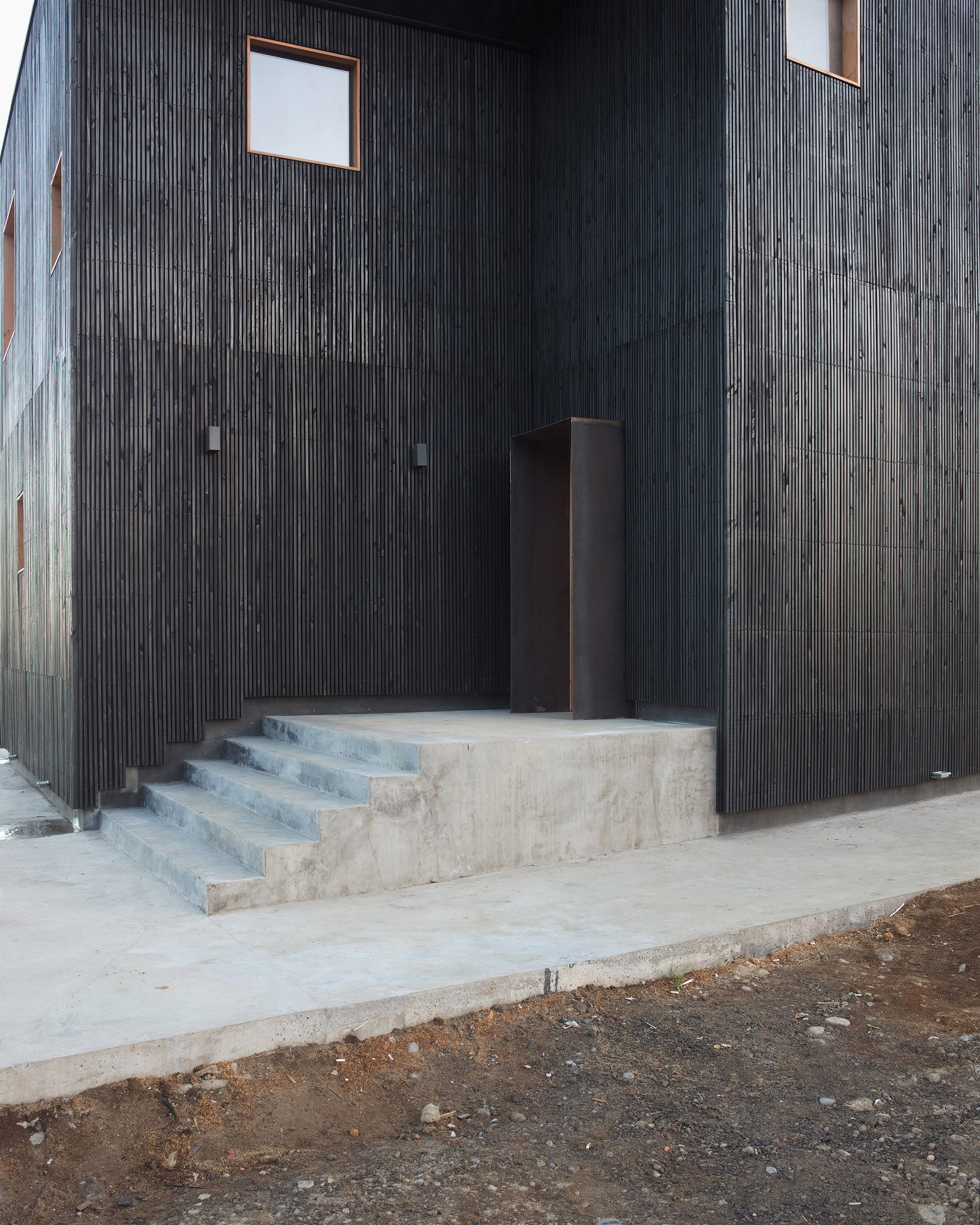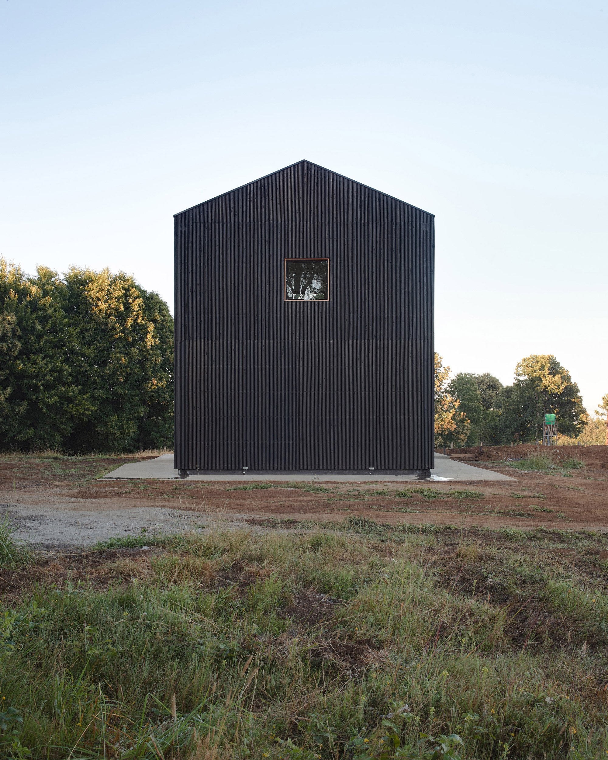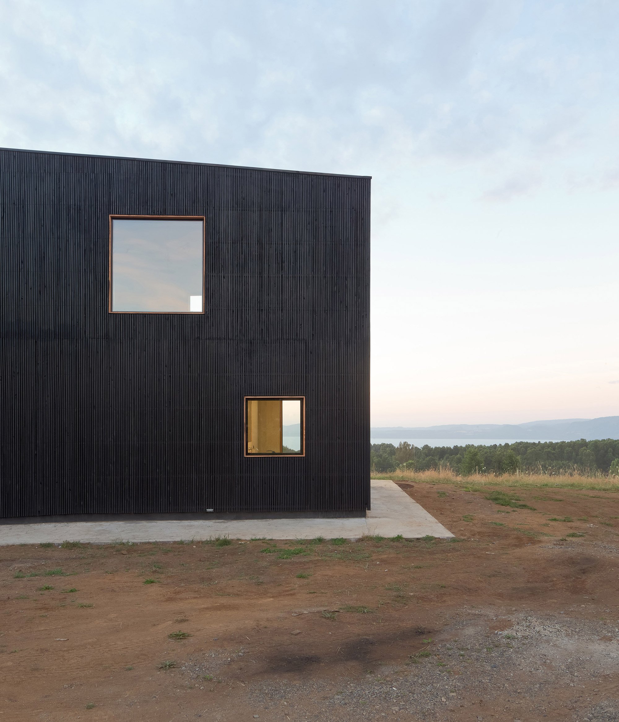 A dark, modern house built in the Chilean countryside.