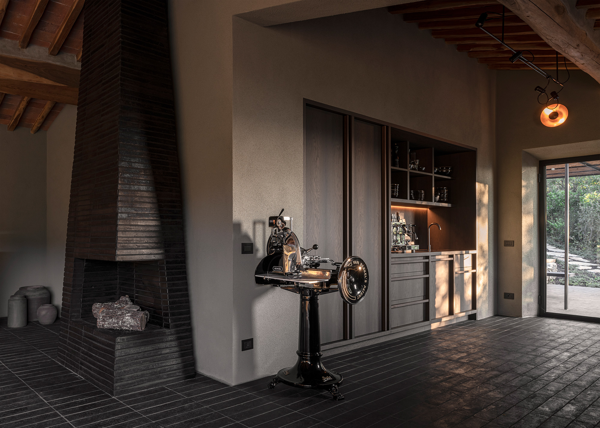Guests can also enjoy a hi-fi Burmester audio system and use the high-end Berkel cutting machine in the kitchen. Custom cabinets and shelving completes the interior design along with bespoke lighting made in a small factory. Casa Morelli offers everything travelers may need during their stay, but they can also explore the charming area. For delicious food and wine, they can walk to the Brancaia Winery & Osteria or take the Chianti Wine Route that passes just five minutes away from the house, while for shops they can drive 10 minutes to Castellina. Art lovers can also easily drive to Florence, one hour away from the villa. Photographs© Casa Morelli.