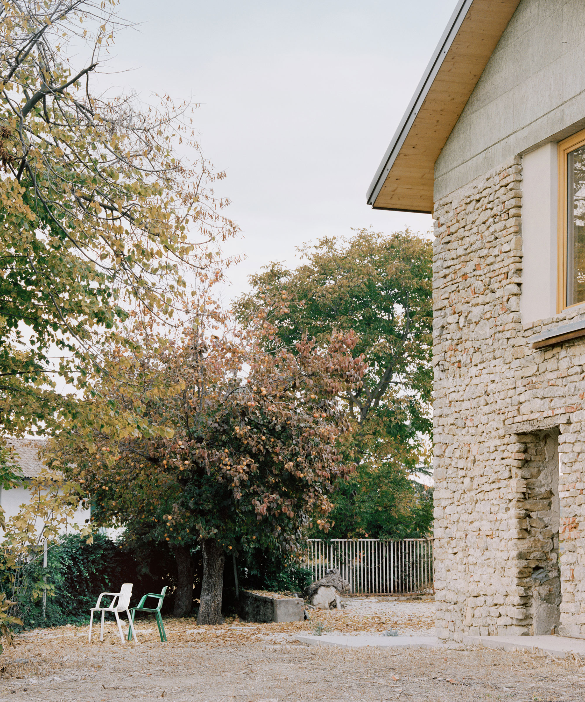 Milan-based Studio Wok uses an artisanal, sustainability-focused approach to complete work centered on features which define each project’s context: local landscape, materials, atmosphere, and quality of light. Cascina Otto (Farmhouse Eight) embodies these principles perfectly. Located in Cossano Belbo, Piedmont, Italy, this property is positioned at a high point on the hill of S. Bovo, with vineyards and rolling hills surrounding the area. The clients, a young couple from Berlin, tasked Studio Wok with the conversion and redesign of the old farmhouse. Previously anonymous, the existing building has gained a more pronounced rustic character. That’s because the team removed the plaster finish to reveal the “Langa stone” masonry with brick inserts. A living space to host family and friends, the building also allows the clients to transform it into a space for artist residencies or vacation rentals.