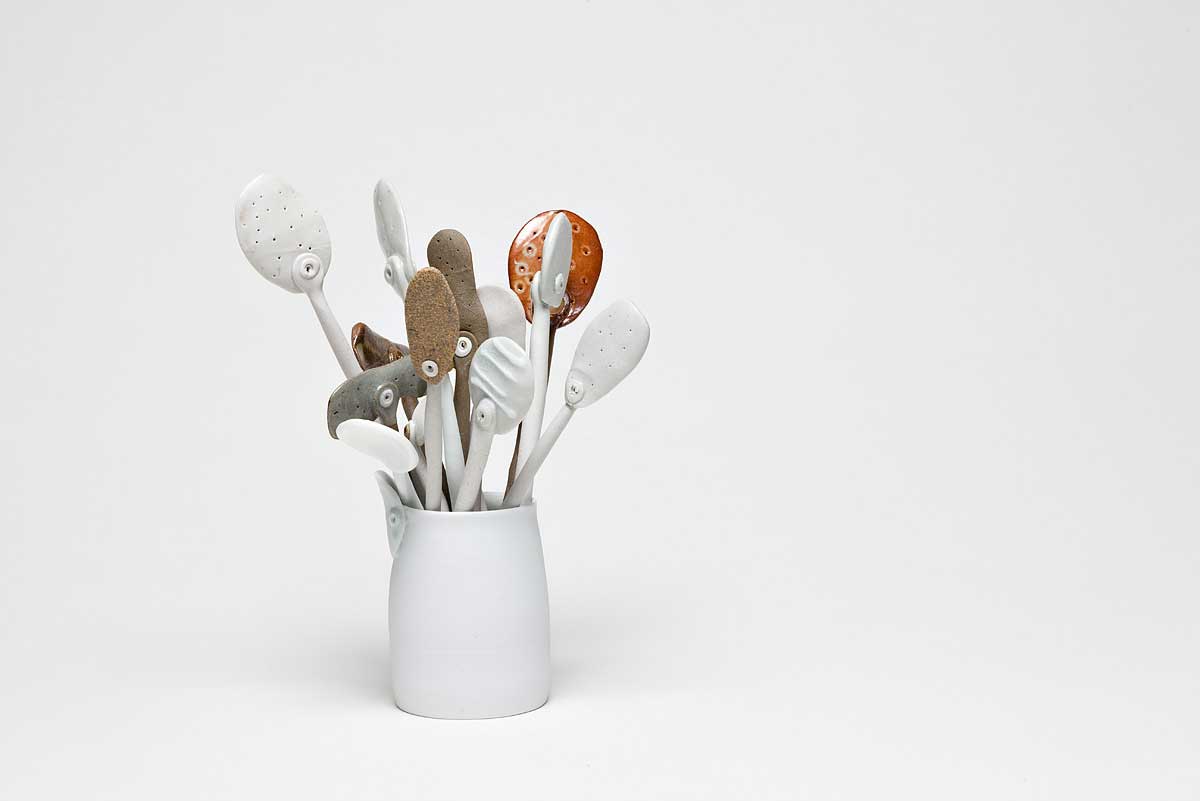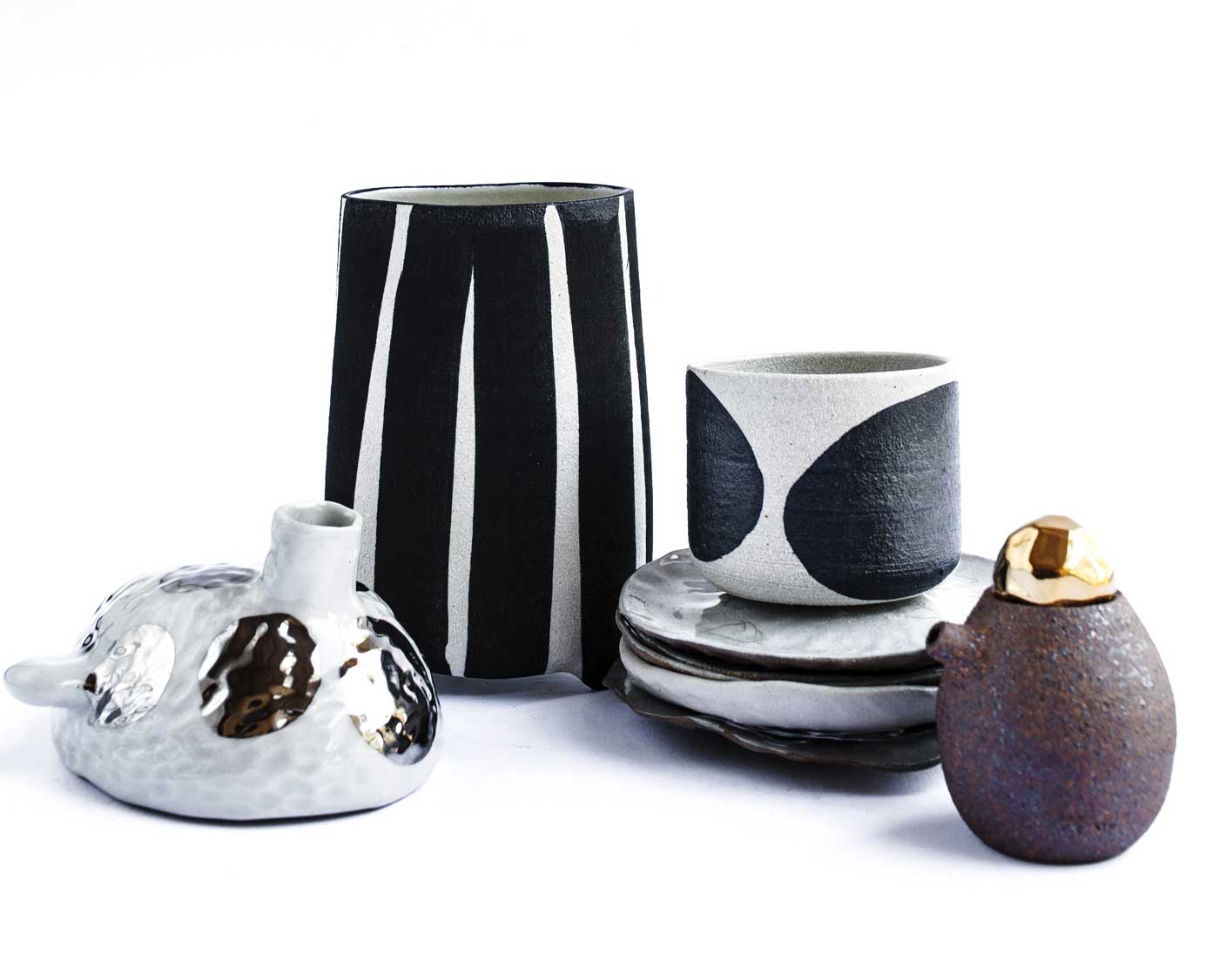 Artist Bridget Bodenham draws inspiration from her surroundings in and around Hepburn Springs, Australia. Her functional and beautiful ceramics often incorporate textures, colors, and finishes that reflect local geography and architecture. Her latest series, for instance, decorates matte pottery with geometric sketches and gold foil, elements akin to the town’s earthiness and metallics.