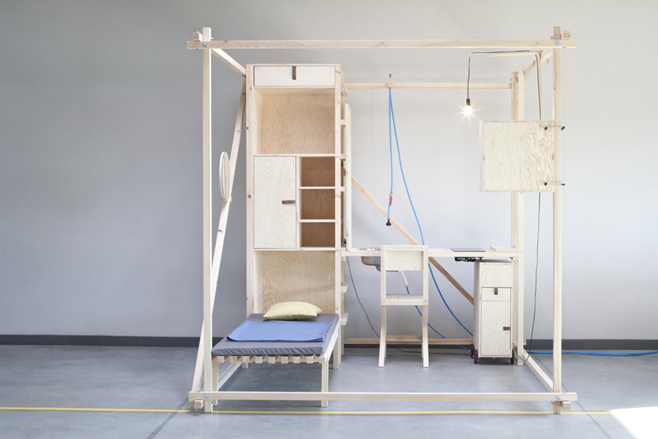 In the shadow of our recent post about Papanek and Hennessey’s ‘living cube’ concept designers Maciej Chmara and Ania Rosinke were inspired to create the 2,5³.  The space may be slightly snug, although all your necessities are right at hand. Conveniently all major living needs of sleeping, eating, relaxing and working are perfectly accommodated. Pockets and secret storage reveal many smart details like the hot plate for tea or the mirror and manicure station fastened to the inside cabinet door. Made to keep life minimal of stuff and fluff.  Pretty, simple, period.
