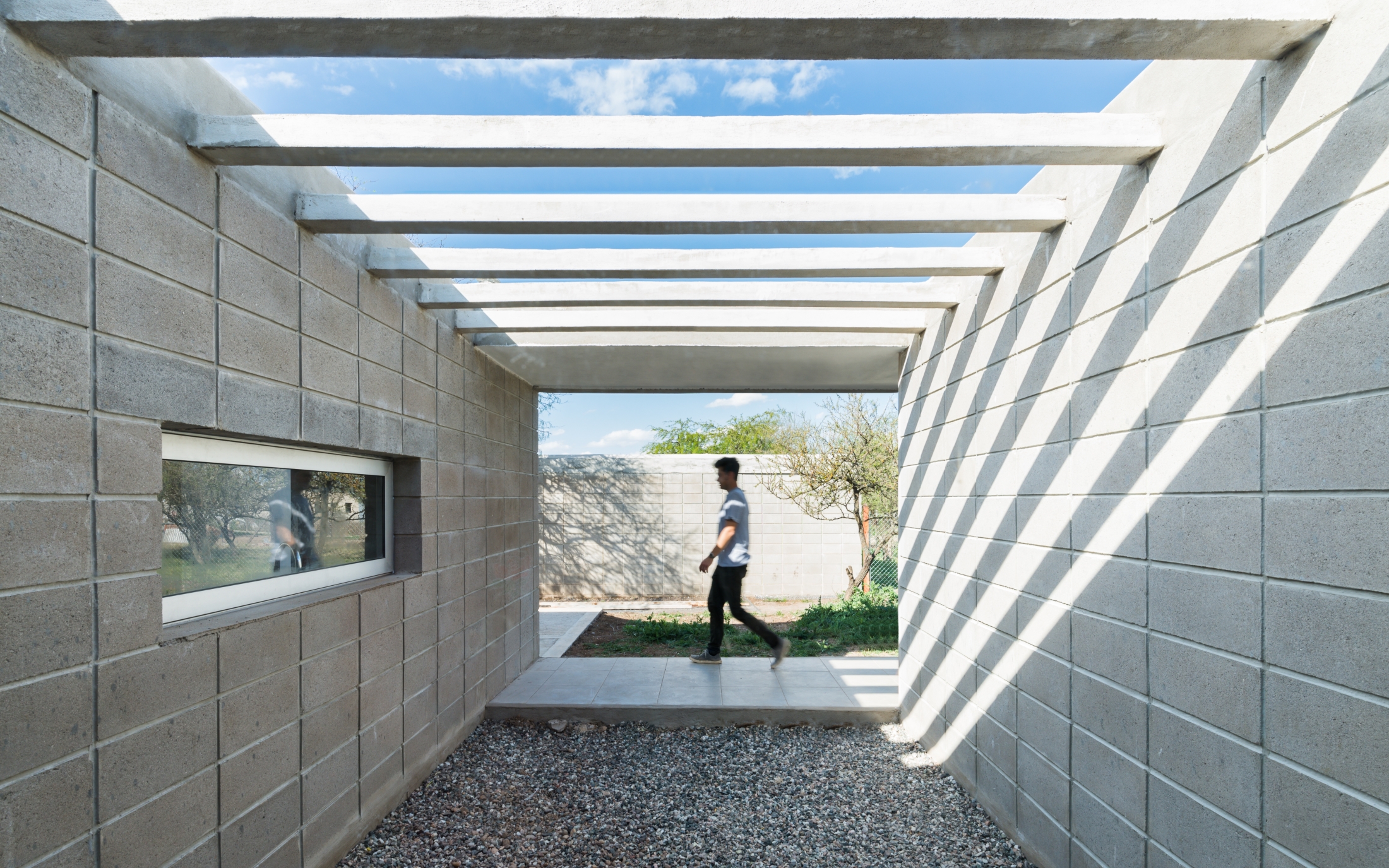 Named Casas Catalinas, this complex of houses is part of a project that provides living spaces to young families through a state-funded program. Located in Rio Ceballos, Argentina, the houses are away from the city, in a quiet area with views of the Córdoba mountain range. Designed by architectural firm Agustín Lozada and built on a limited budget, these cinderblock houses have minimal detailing. Throughout the living spaces, the studio used glass and hollow cement bricks to create a sense of permeability and transparency. All houses feature cinderblock walls, left exposed, without a stucco finish.