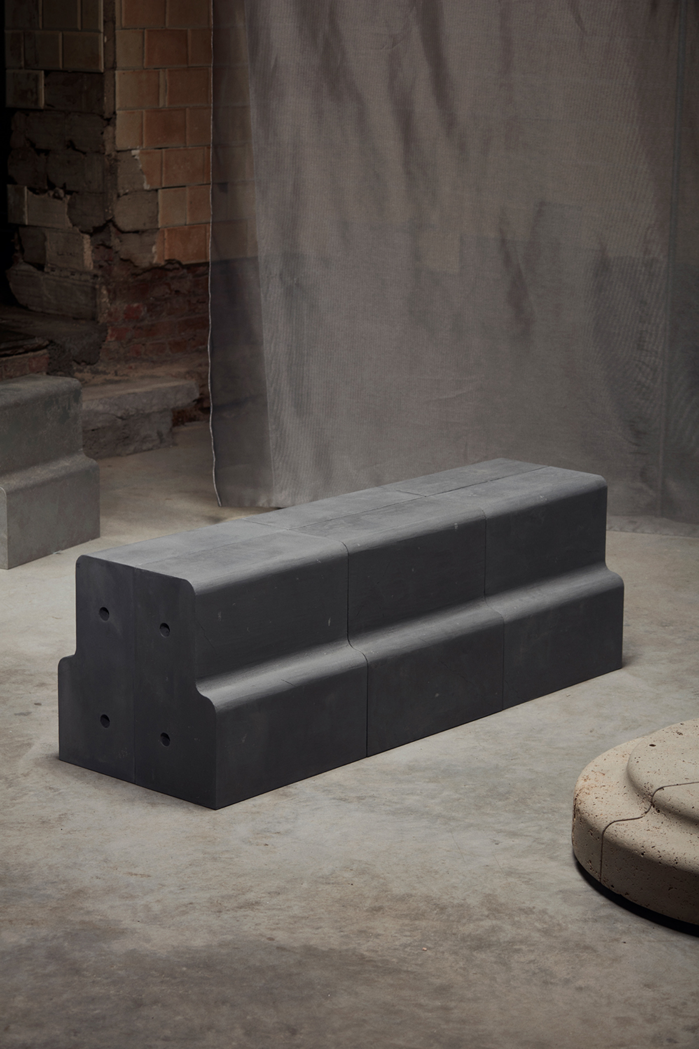 Founded by five designers – Ben Storms, Linde Freya Tangelder, Bram Vanderbeke, Cédric Etienne, Charlotte Jonckheer, and Nel Verbeke – BRUT Collective represents the collaborative spirit of a young generation of Belgian designers. While they approach different themes in their work, the five designers share an affinity for architectural forms and experimental designs. Ancient archetypes and organic shapes also define the group’s work. The City Remnants exhibition brings together different objects and sculptures that perfectly represent the common thread that connects BRUT Collective’s different creatives. The show explores the forms and functions of urban living with bold but minimal designs that create an architectural landscape in the Carwan Annex art gallery space.
