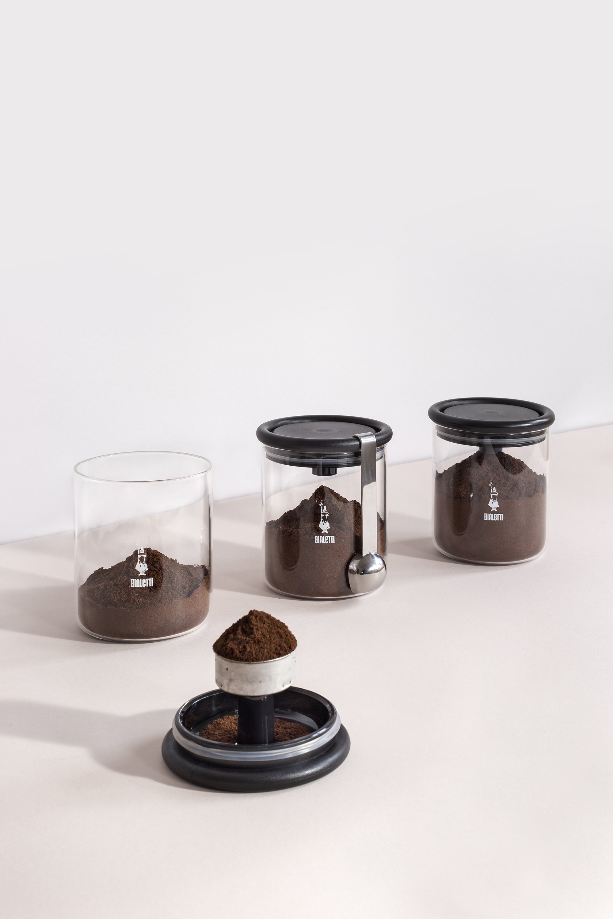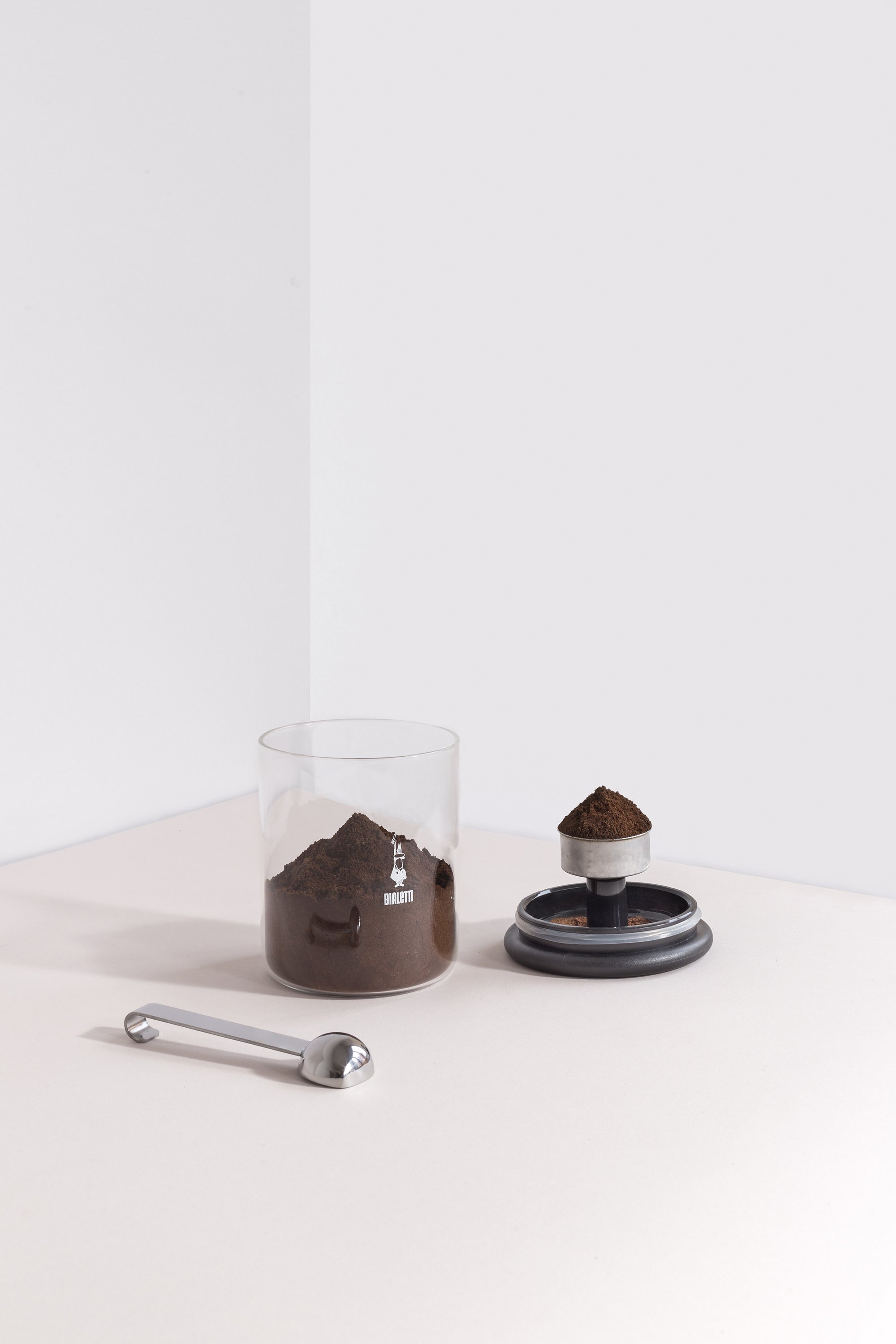 On the side of the jar, a spoon measures coffee powder with accuracy and hooks onto the lid. The specially designed shape ensures that the spoon rests perfectly against the jar when not in use. It not only occupies minimal space, but also bring peace of mind that it’s always at hand when needed. The jar also features an airtight seal on the lid, to guarantee that your ground coffee or beans stay fresh and full of flavor for longer. Photographs© Francesca Iovene. Styling by Sarah Richiuso.