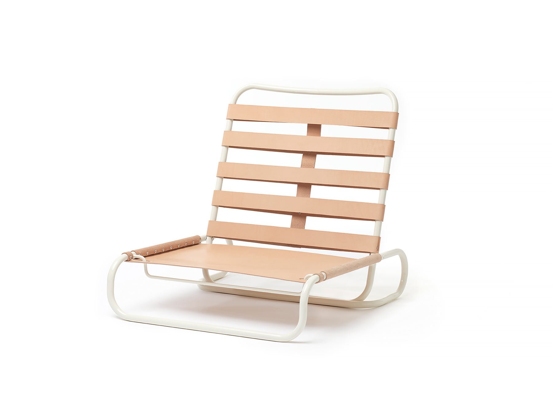 This compact folding chair was envisioned by the Australian designer Glen Baghurst. Meant to be taken outside, the design is lightweight so that it can be carried and low to the ground so that it is inoffensive at sporting events, outdoor movies, and more. Made of steel and leather, the portable chair is more sturdy than the average lawn chair. Plus, the white powdercoated metal and the tan leather looks far better than plastic.