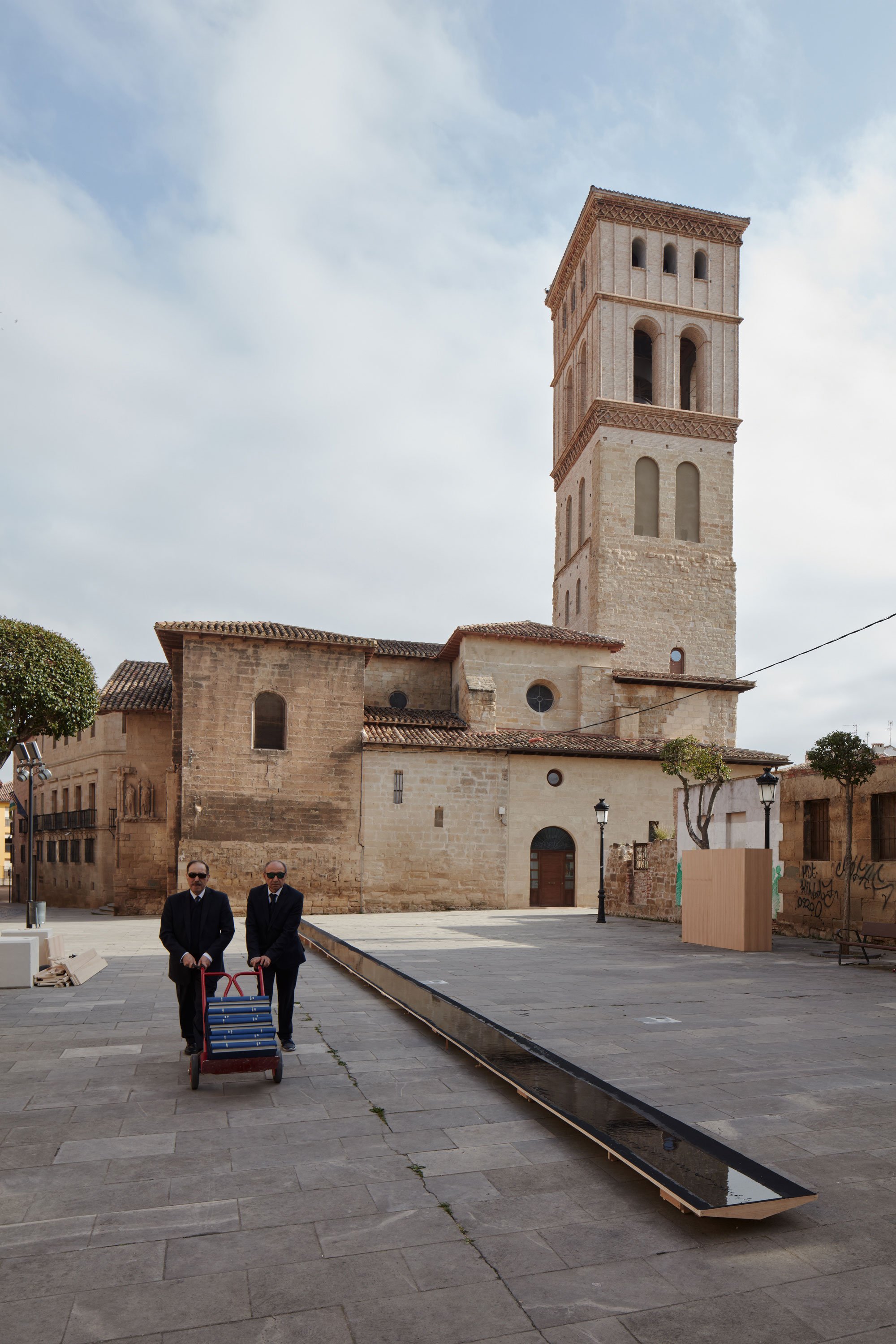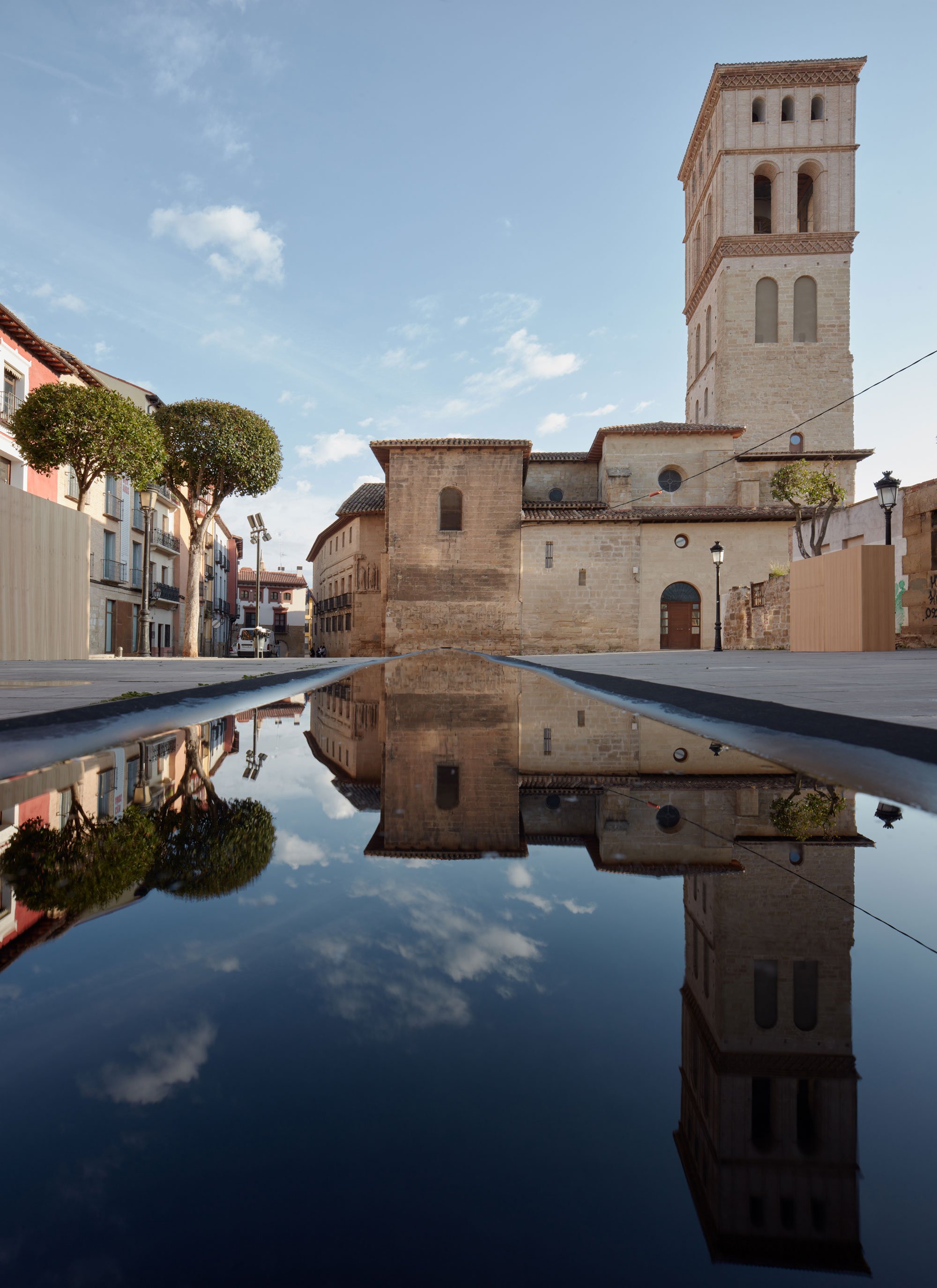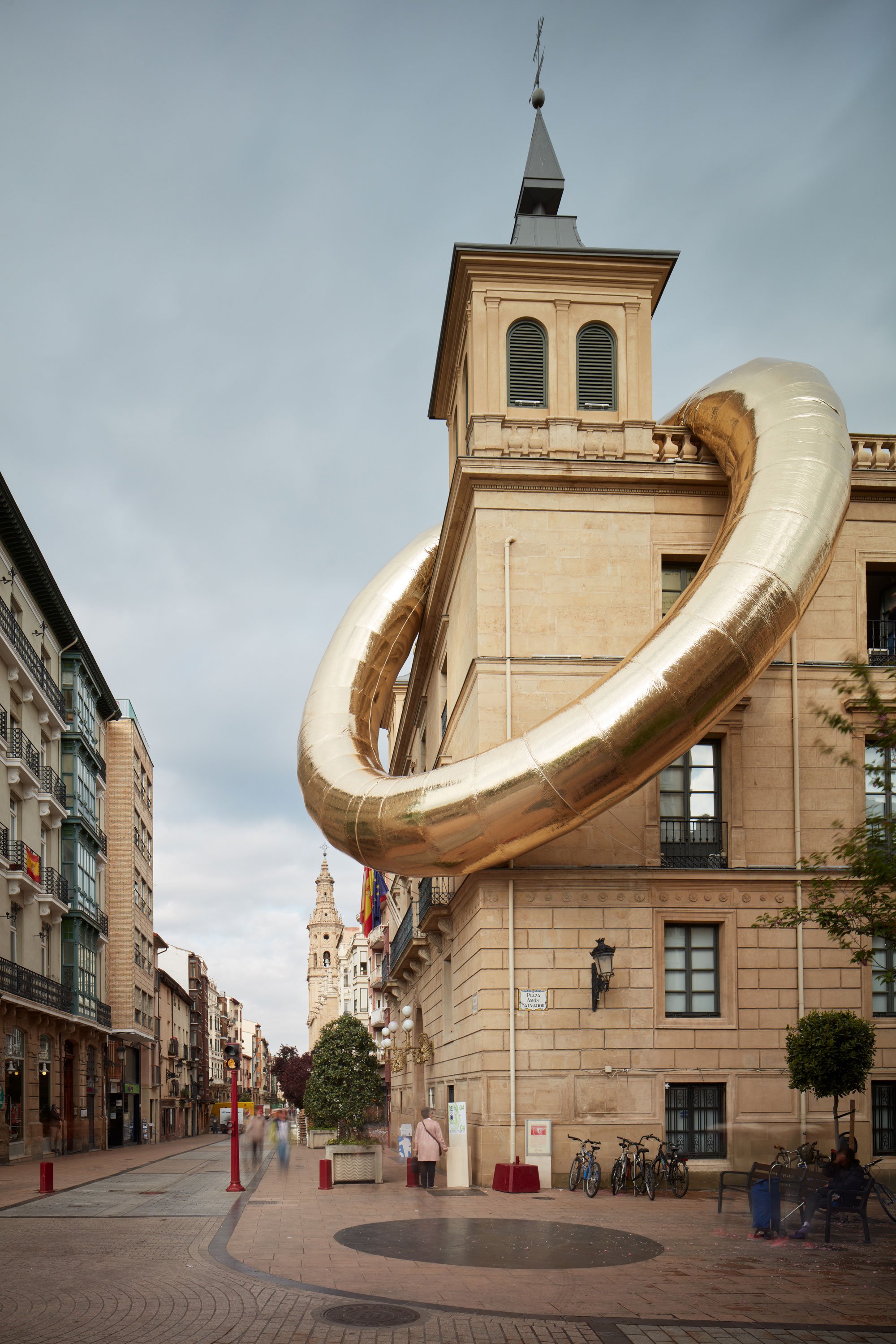 All of the chosen locations, whether squares, courtyards, or terraces, have one thing in common. An important part in the city’s history, they have become largely dormant and often hidden. Thus, the aim of the festival is to rekindle their spirit while celebrating their distinctive character through contemporary architecture. Among the 14 projects, the concepts vary greatly. For example, visitors and locals had the opportunity to admire La Plaza, an installation that encouraged reflection and contemplation through a pool of water set between two concrete posts. Elsewhere, the RINGdeLUXE pneumatic golden ring adorned Instituto Estudios Riojanos and transformed the traditional building into a contemporary art piece.