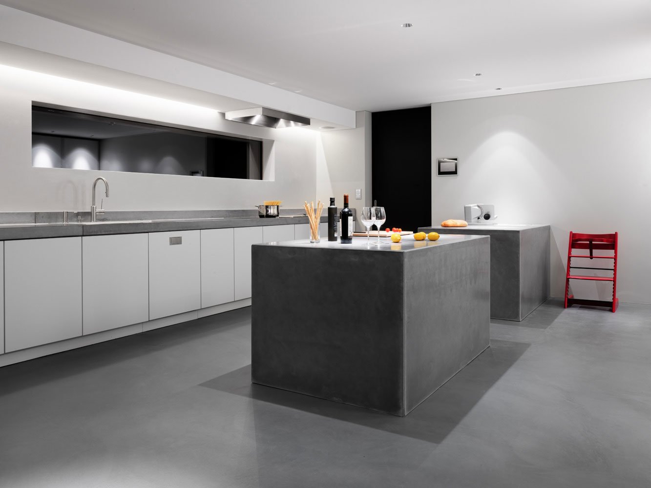 Designed by Ralph Germann Architects, the Contemporary Alpine House is influenced by the local farm buildings and the clients’ love for a good party. To prepare for the project, Germann visited the surrounding area and studied the vernacular architecture found there. The simple forms and volumes he observed reflect in the new construction. The rustic exterior, for example, shares its rectangular shapes and sharp lines with nearby farmhouses and barns. Cladded with larch, the facade balances hard and soft textures, serving as a distinguished and inviting first view of the house. On the inside, the house uses concrete and lime for the cool interior walls and larch for the furnishings, many of which were custom-made for the space. Decidedly more contemporary than the outside, the interior centers around entertaining. The home was built to accommodate parties of twenty people, and the open rooms with high ceilings welcome guests to fill the halls. Additional personal details lend the house warmth, sophistication, and recreation. In the den, for instance, a black steel fireplace radiates heat throughout the room. Meanwhile, a steel wall sculpture by Swiss artist Thierry Kupferschmid brings visual warmth to the hallway. In other areas of the house, light seems to spill from behind wood planks, illuminating the ceiling and the stairs with a barn-inspired glow. Upstairs, windows divide the library shelves and create a naturally-lit area for reading and writing, while, downstairs, in the basement, a spa and swimming pool offer the homeowners and their guests yet another way to relax. Photographs © Lionel Henriod