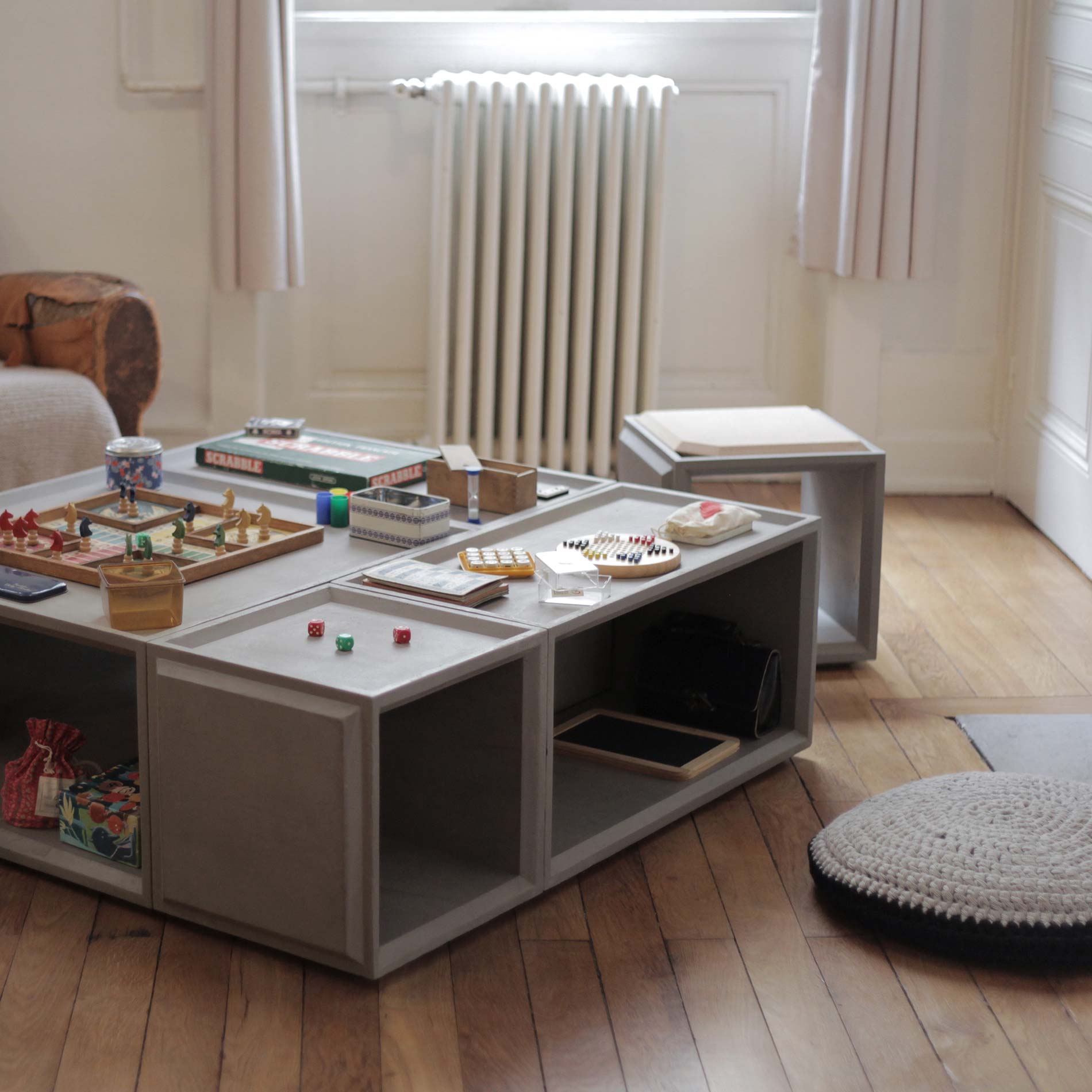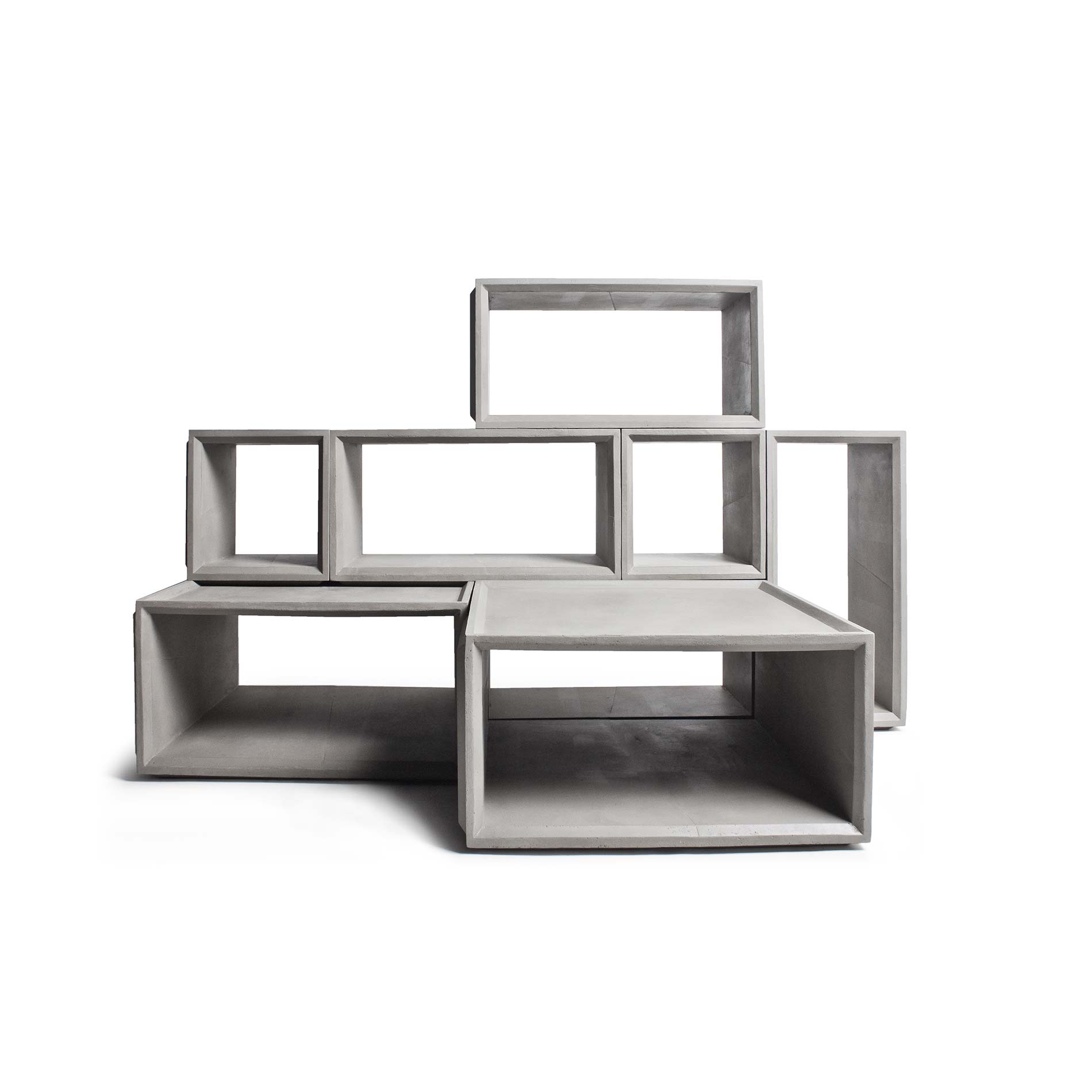 The rugged, brutalist shapes are undeniably reminiscent of the all-too-familiar cinderblock, which communicates both their their utility and maintains a subtle sculptural theme as the material’s rough surface meets the geometry of right angles and beveled edges with a certain refined opposition. Humble and candid construction elevates the centuries-old craft of concrete and its indispensable role in architecture and daily life, while rectilinear contours help to revive the material for modern day. Each versatile piece can complement any space and solve practically any spatial deficiency; between its perfectly minimal aesthetic to endless functionality, the brilliantly simple units combine structure and style. Lyon Beton “[aims] to offer an alternative to all those who are looking for unusual objects. Combining creativity, aesthetics and practicality, our collections offer a discreet and strong presence.” These sound design ideals can be easily identified in Jayr’s elegant, practical product that demonstrates his enormous sensitivity to the latent features of form. The addition of cork seat cushions and porcelain serving dishes allow for further exploration of “space typologies,” while the cubes themselves can be stacked and rearranged to create a sturdy framework. Buy here